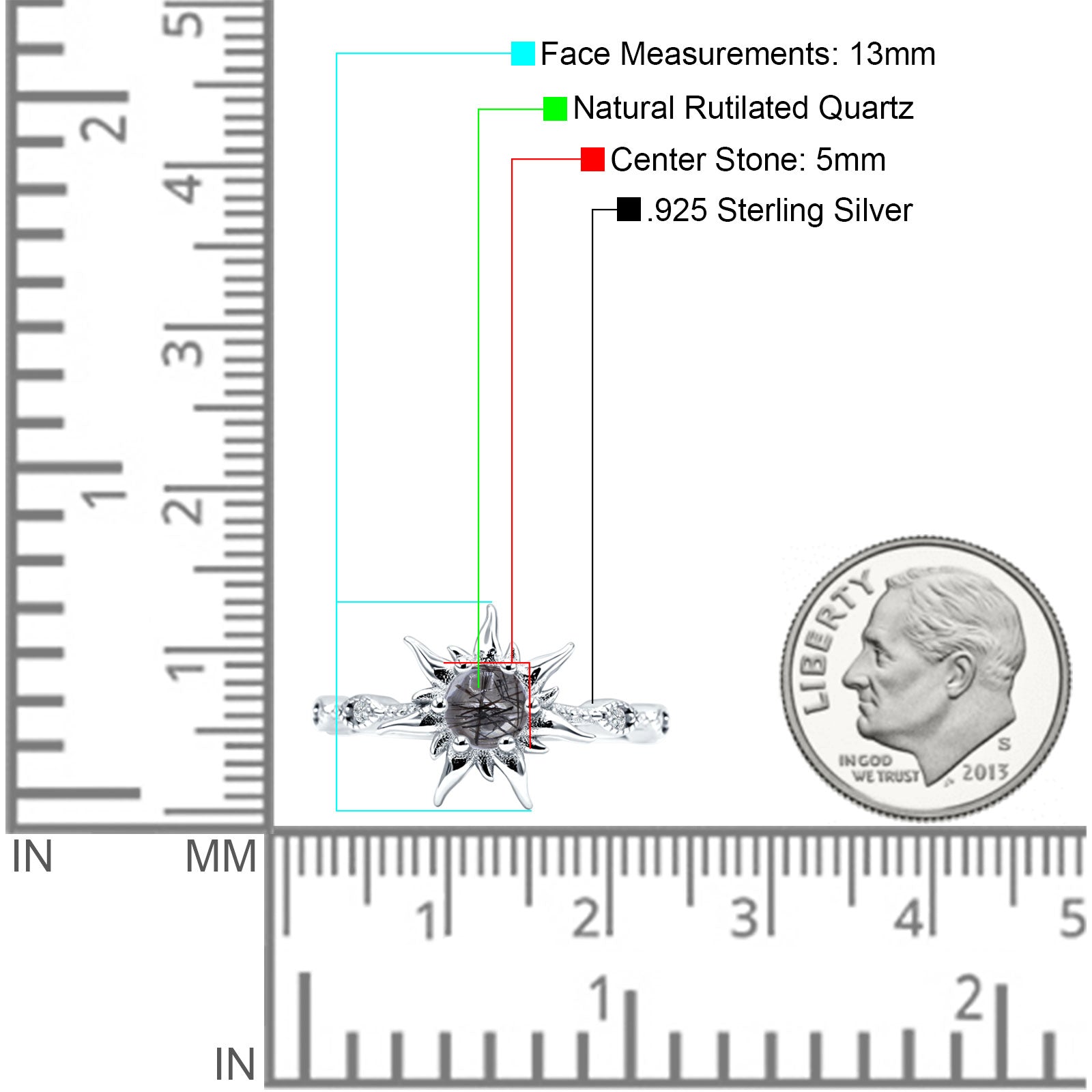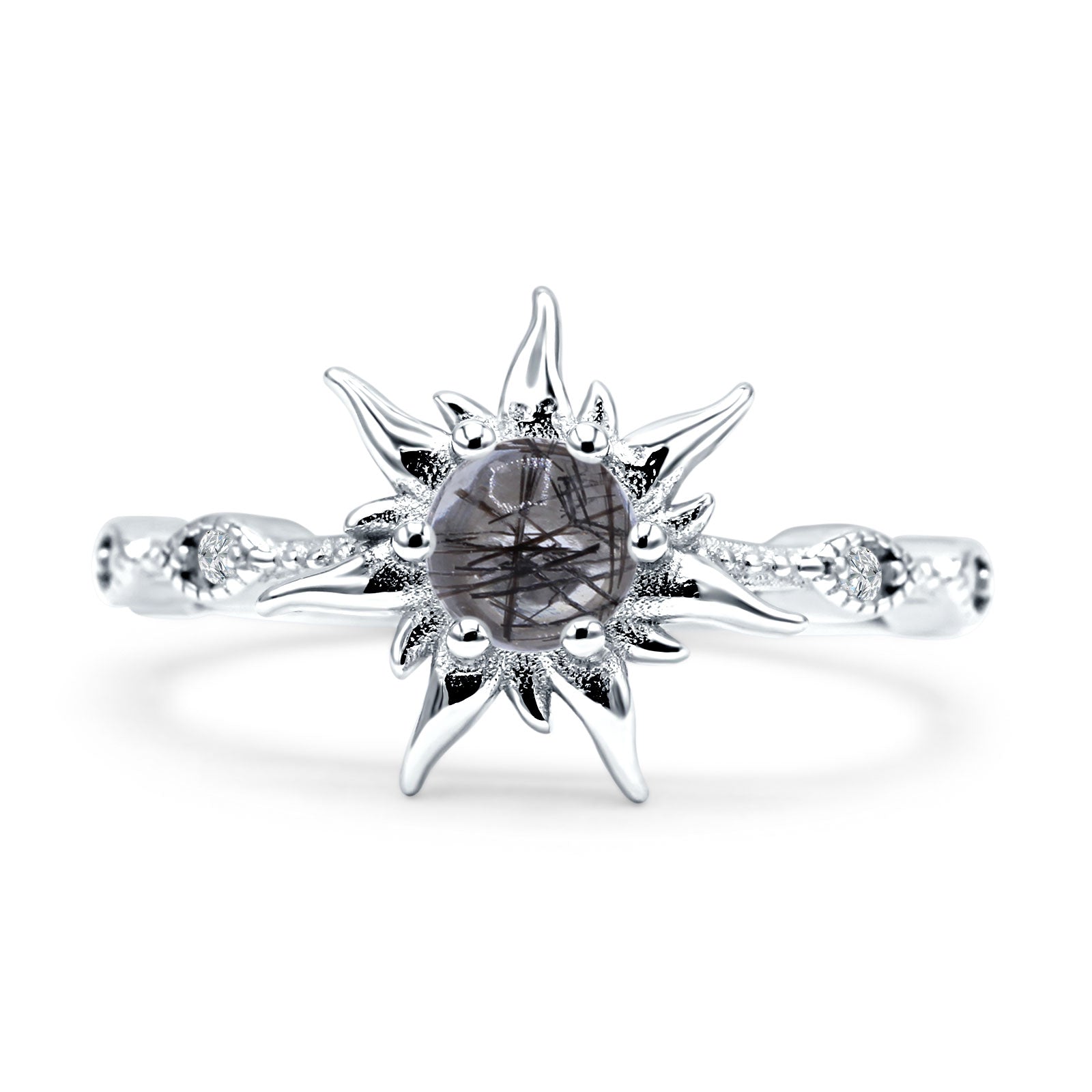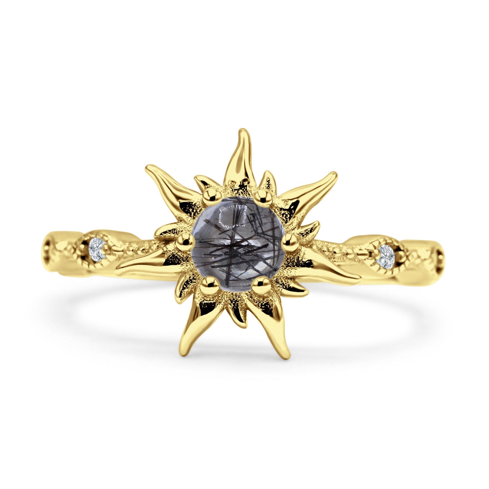 Product Description:Illuminate your style with our sun ring featuring a round natural Rutilated Quartz set in 925 sterling silver. This captivating piece exudes elegance with its radiant gemstone and timeless design. Perfect for adding a touch of sophistication to any outfit, this ring is a stunning choice for everyday wear or special occasions.