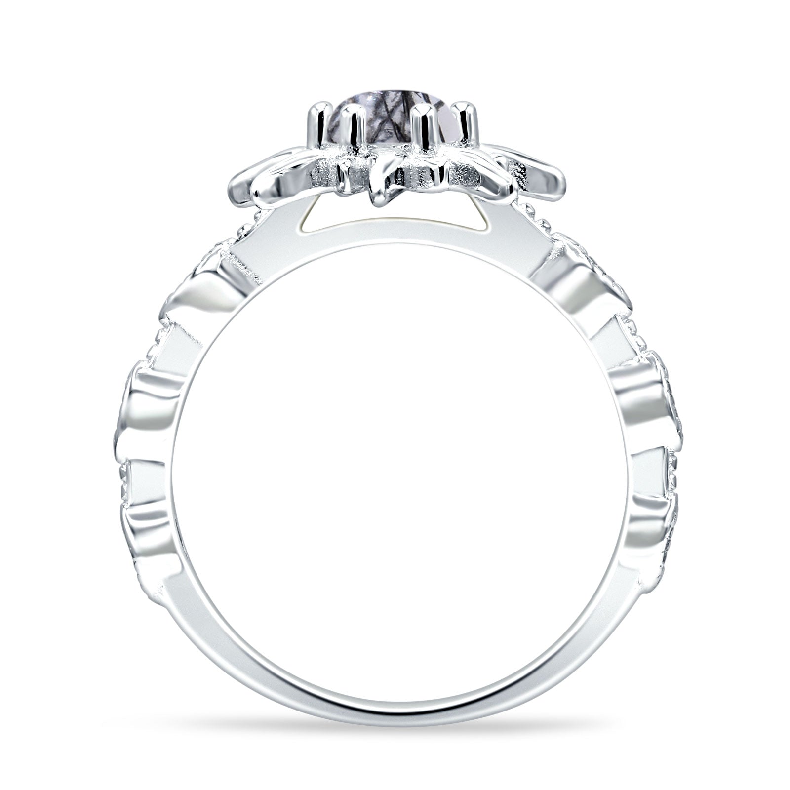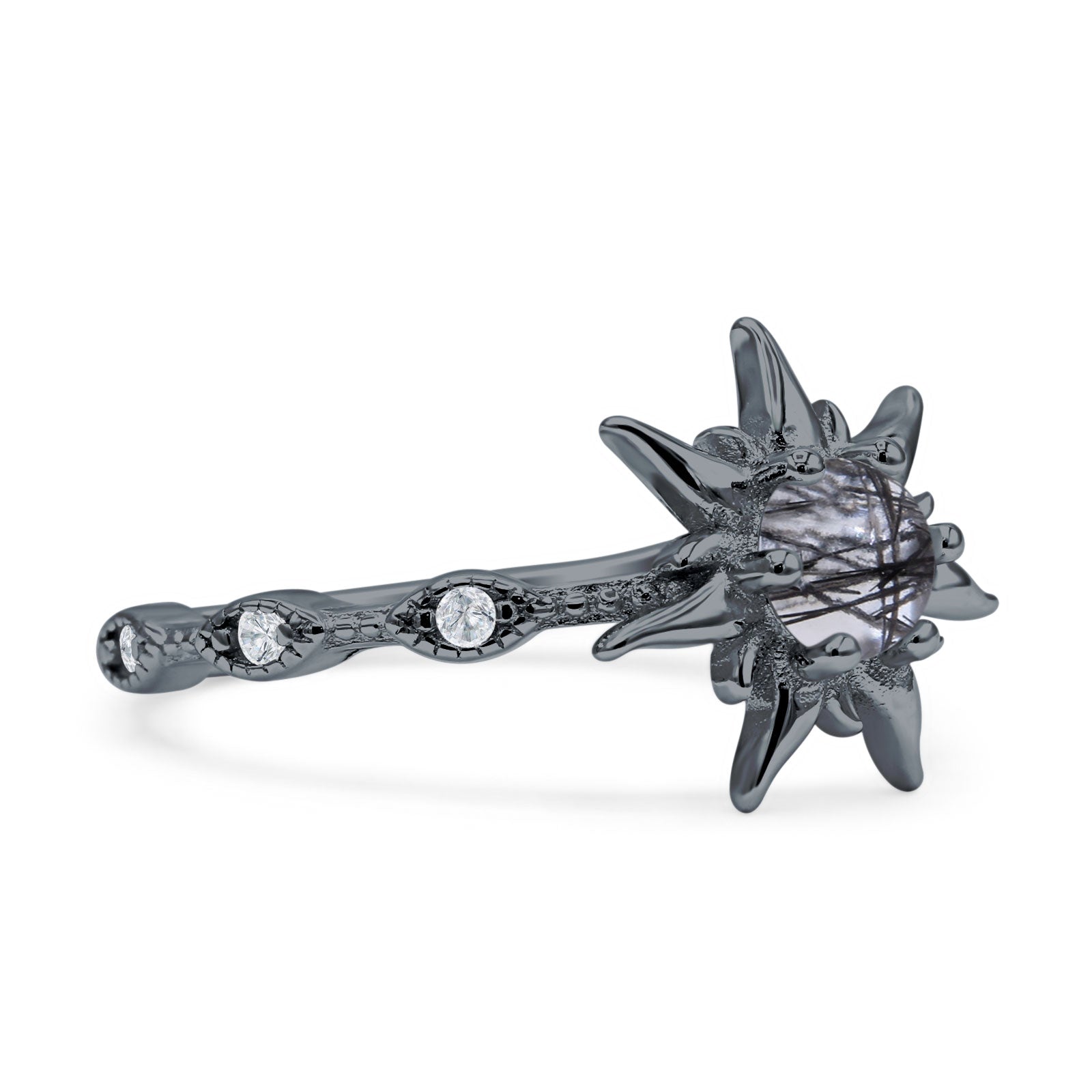 Natural Rutilated Quartz Black Tone Silver