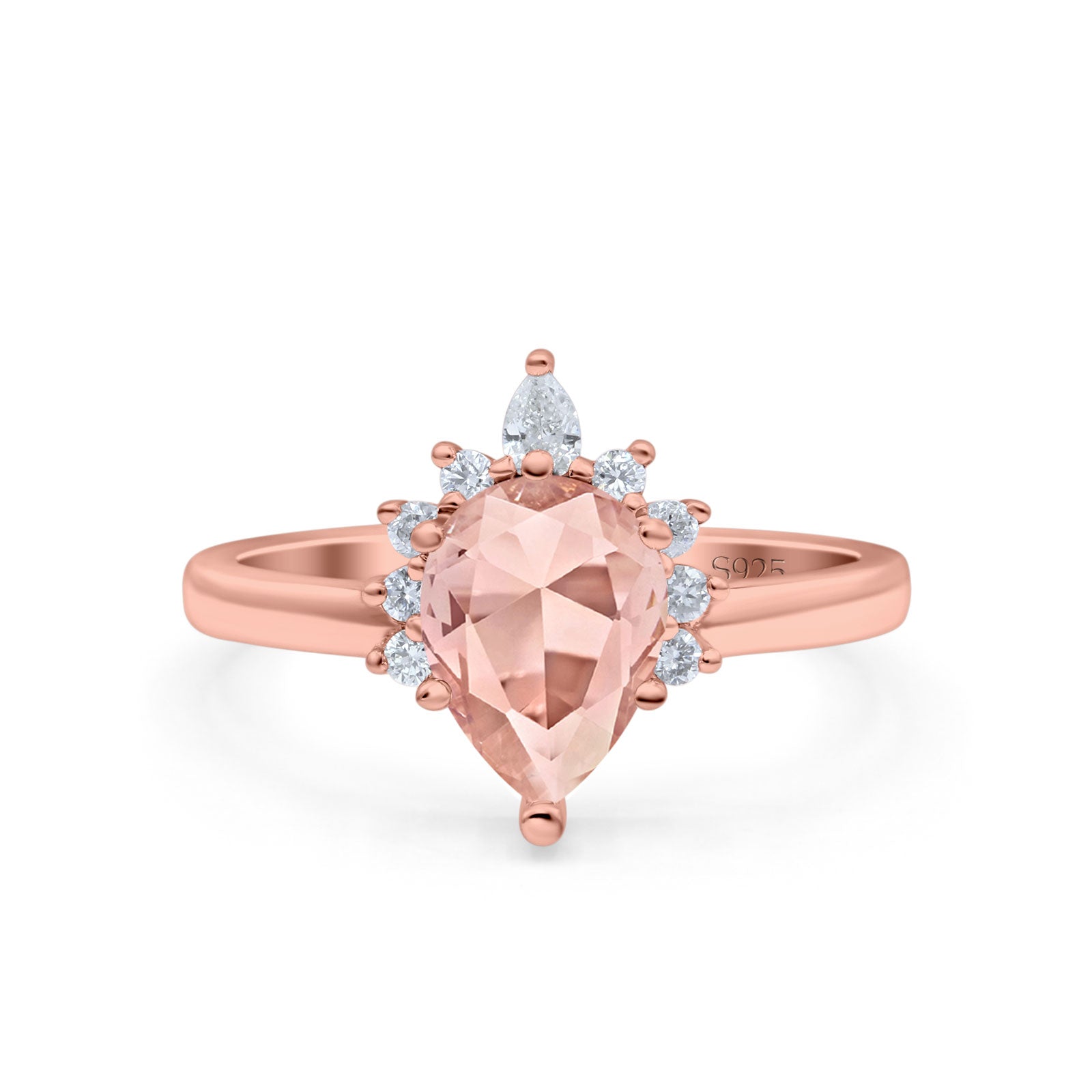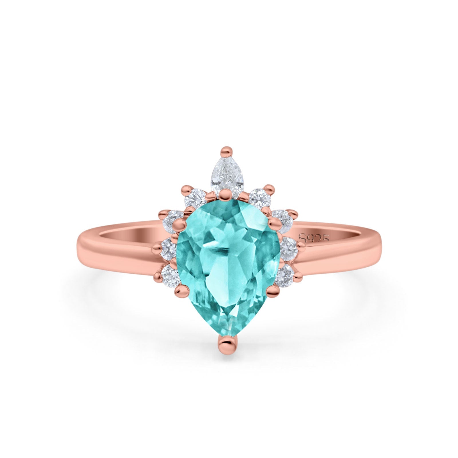 CZ & Blue Sapphire CZ Rose Tone Silver