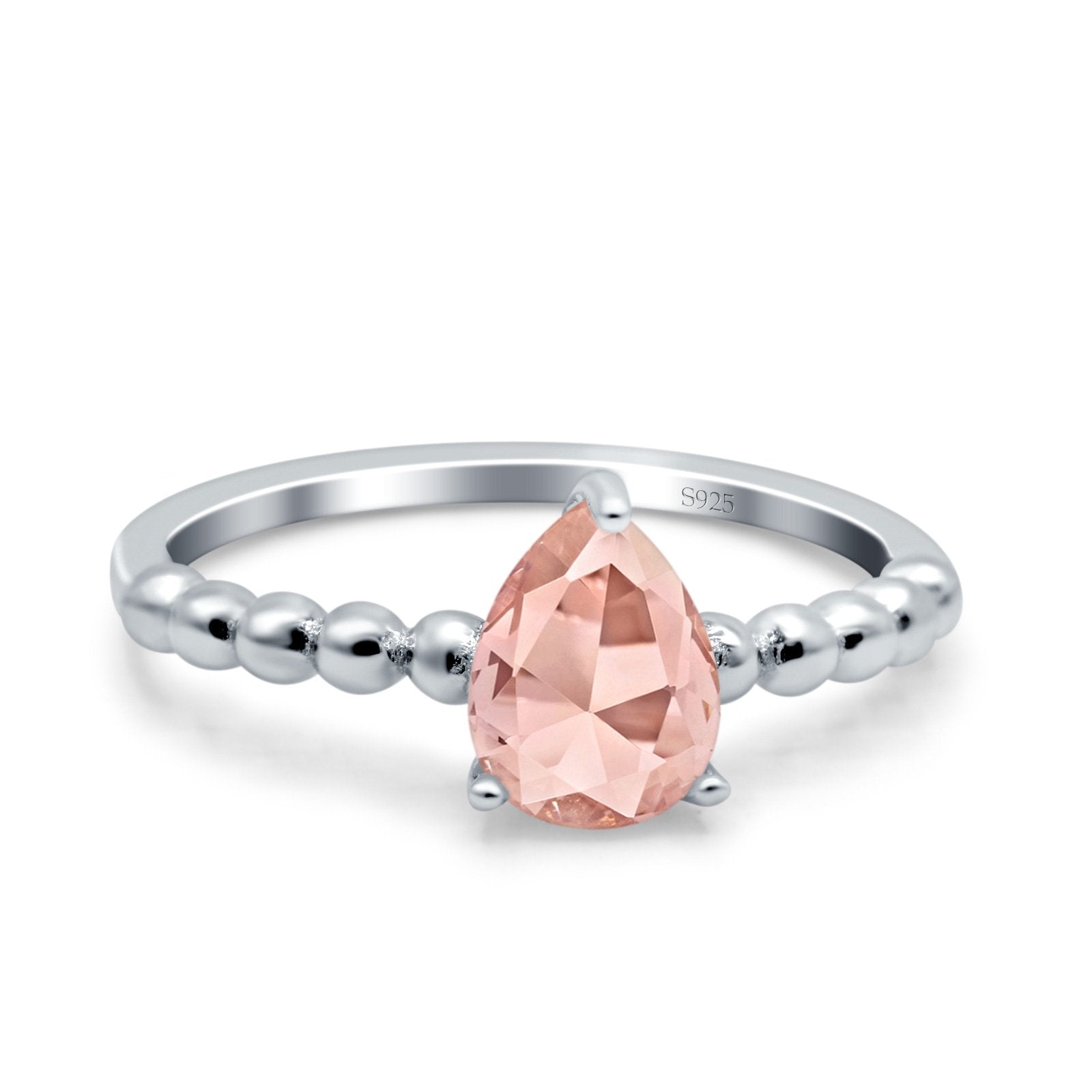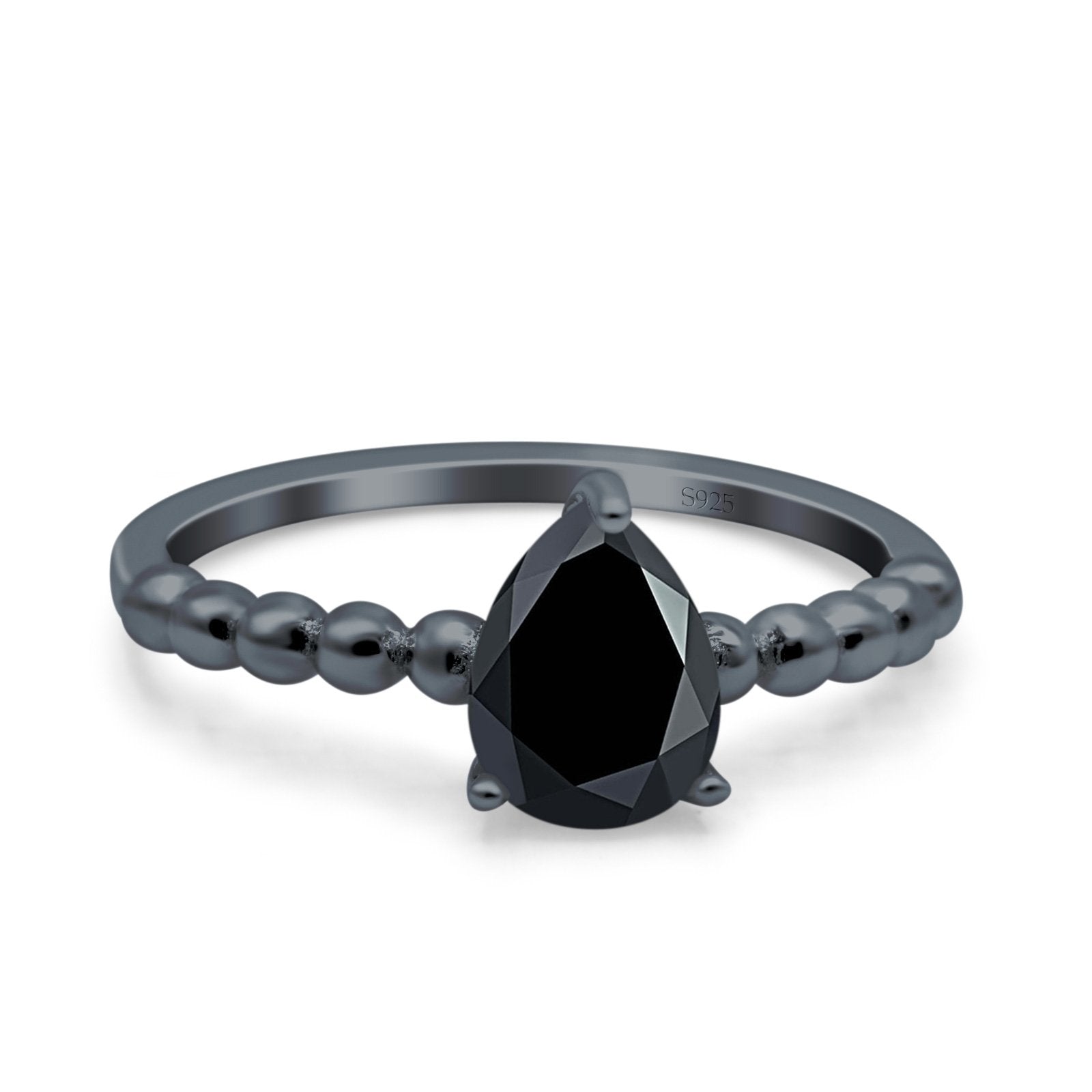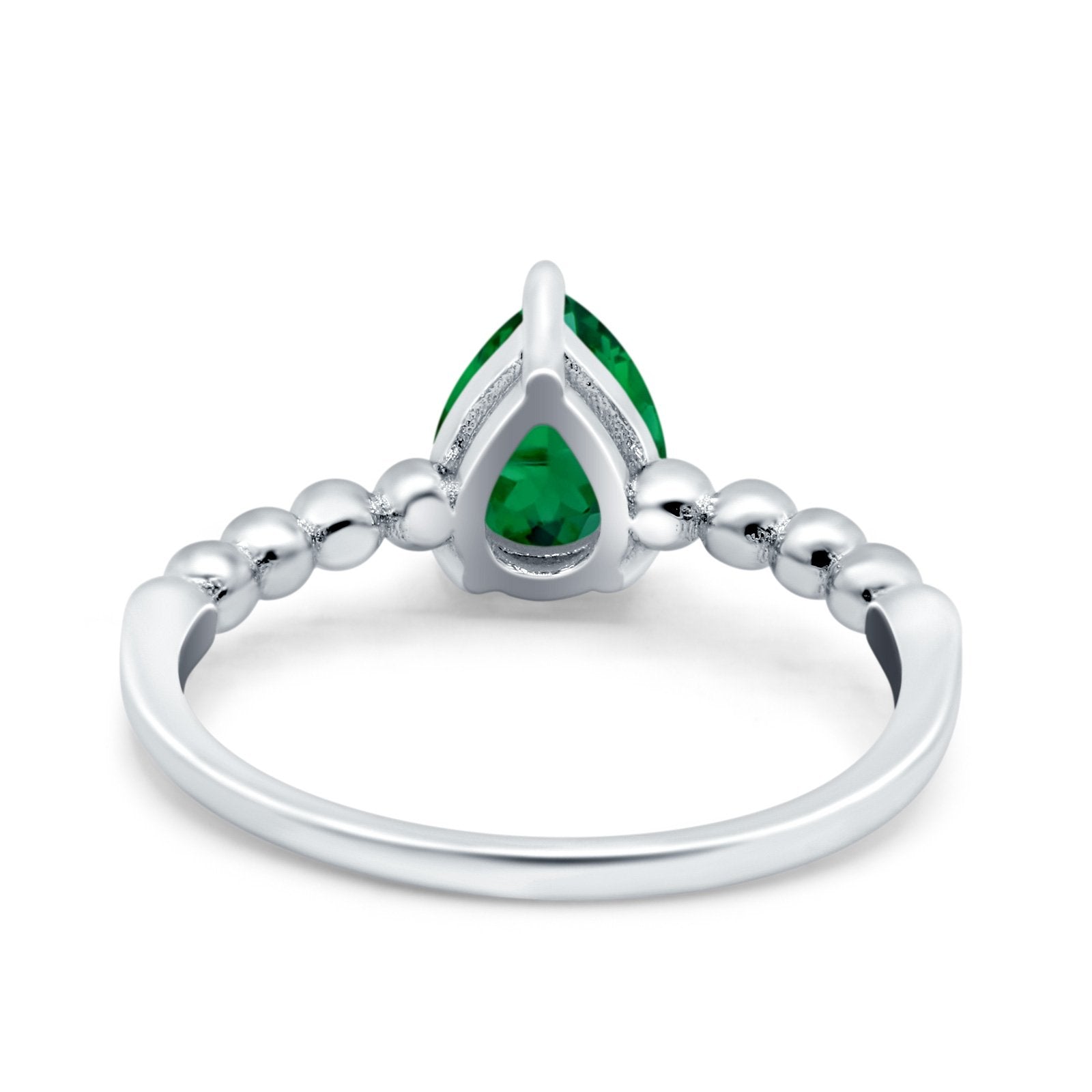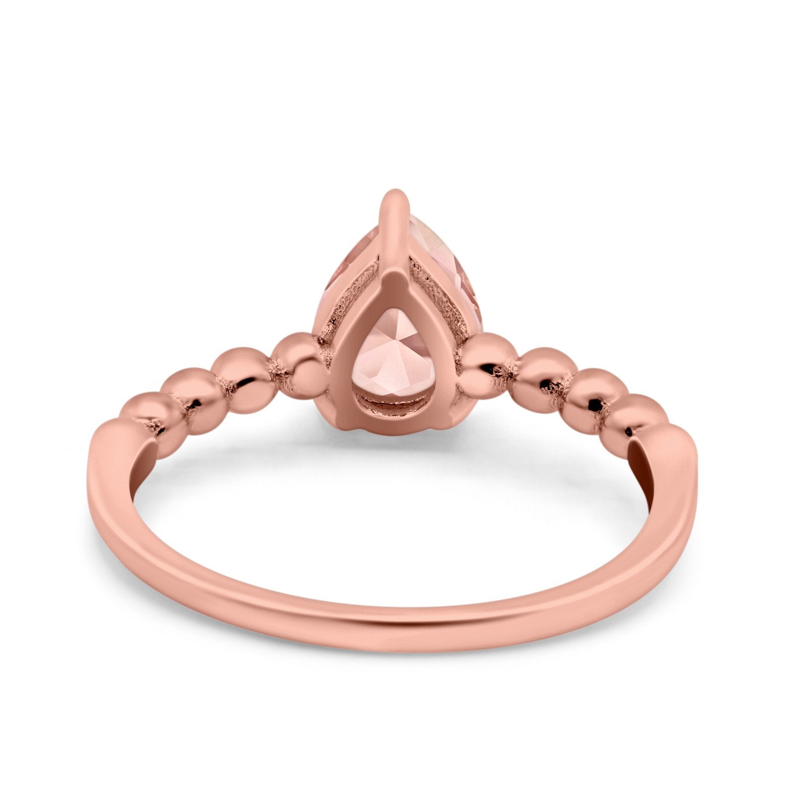 Teardrop Art Deco Pear Wedding Engagement Ring Round Simulated Cubic Zirconia 925 Sterling Silver