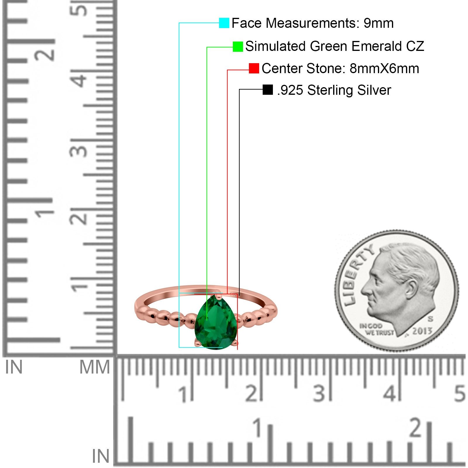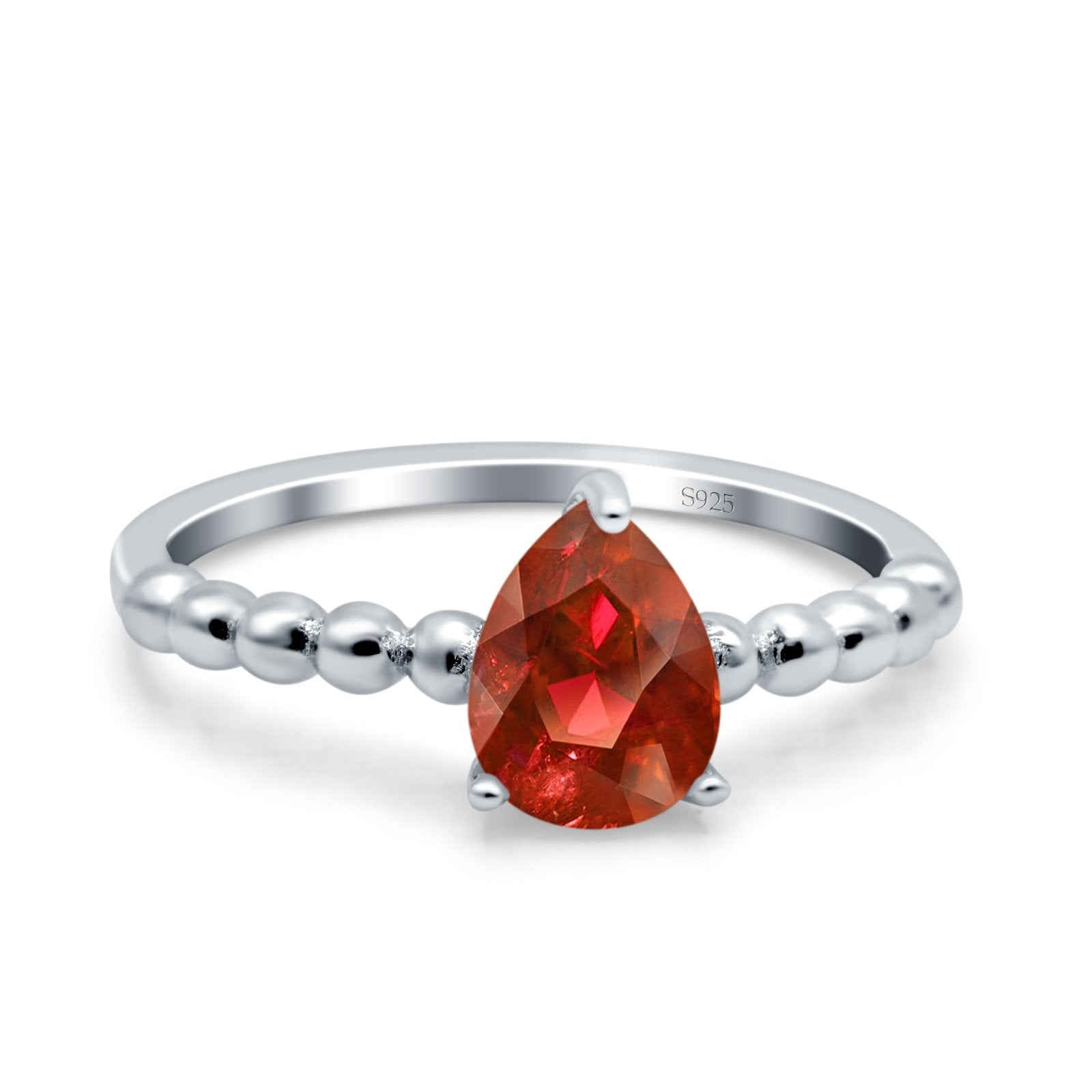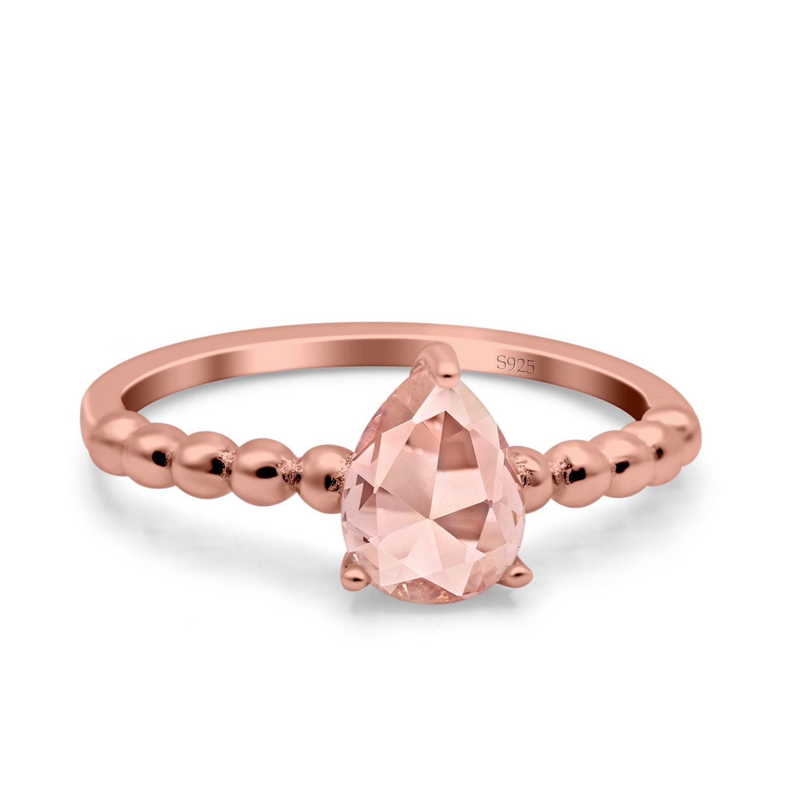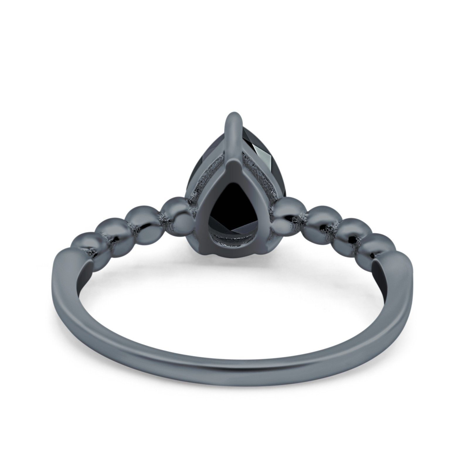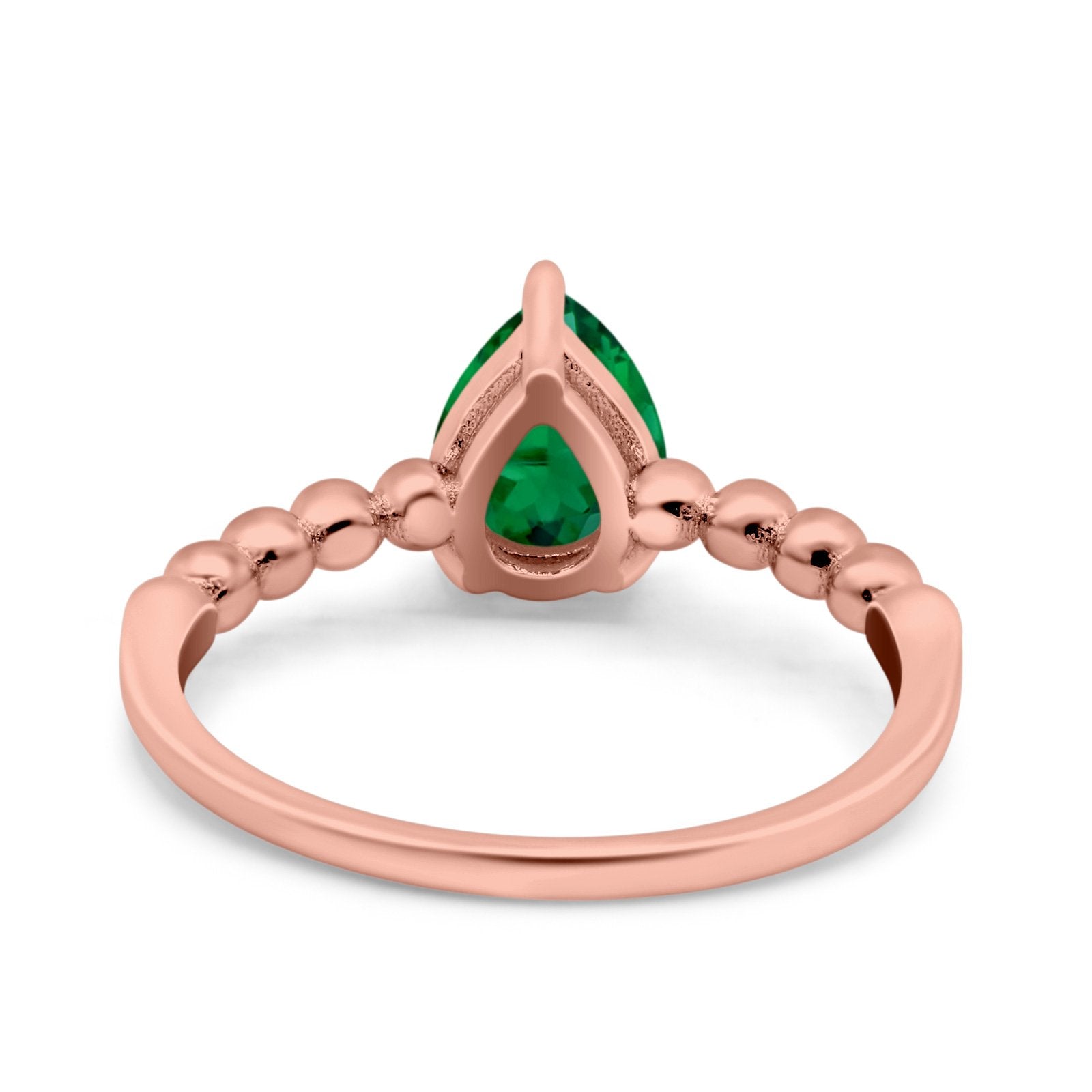 Teardrop Art Deco Pear Wedding Engagement Ring Round Simulated Cubic Zirconia 925 Sterling Silver