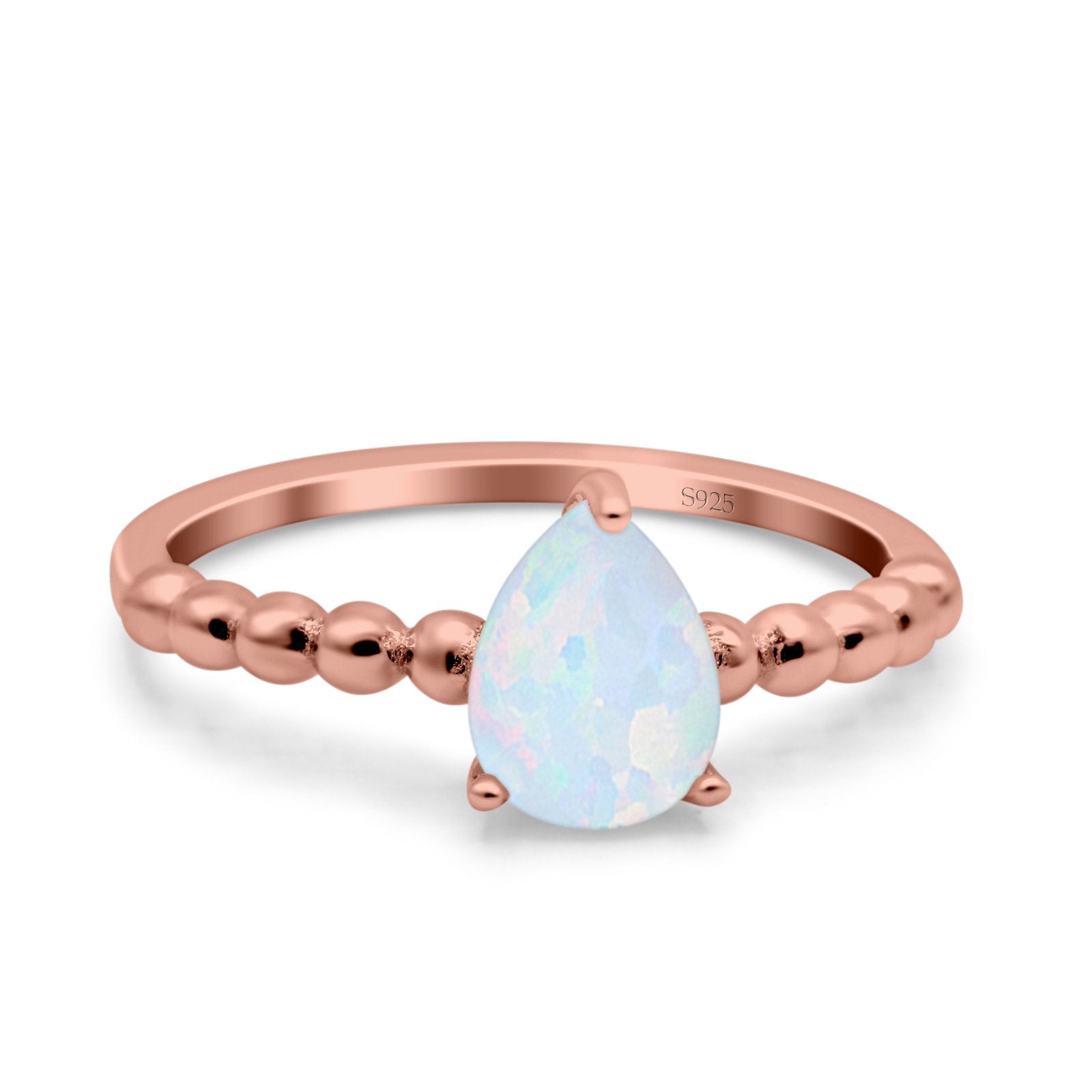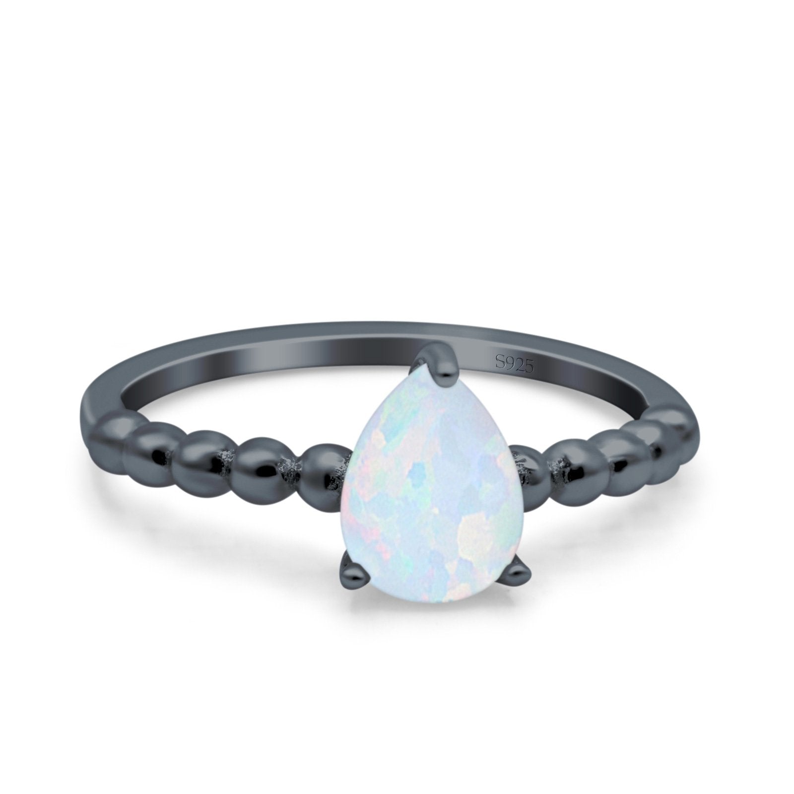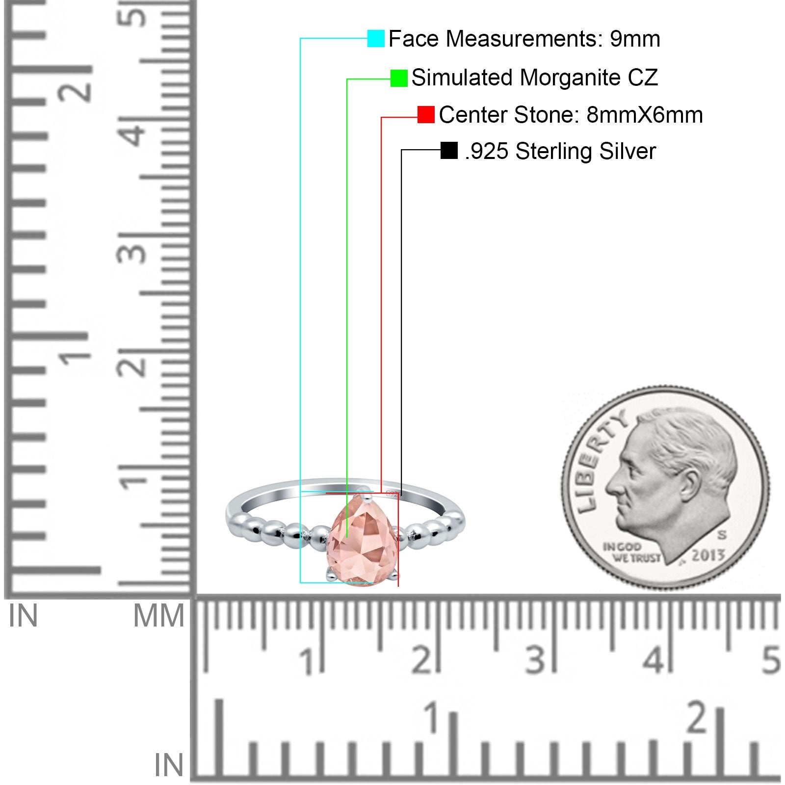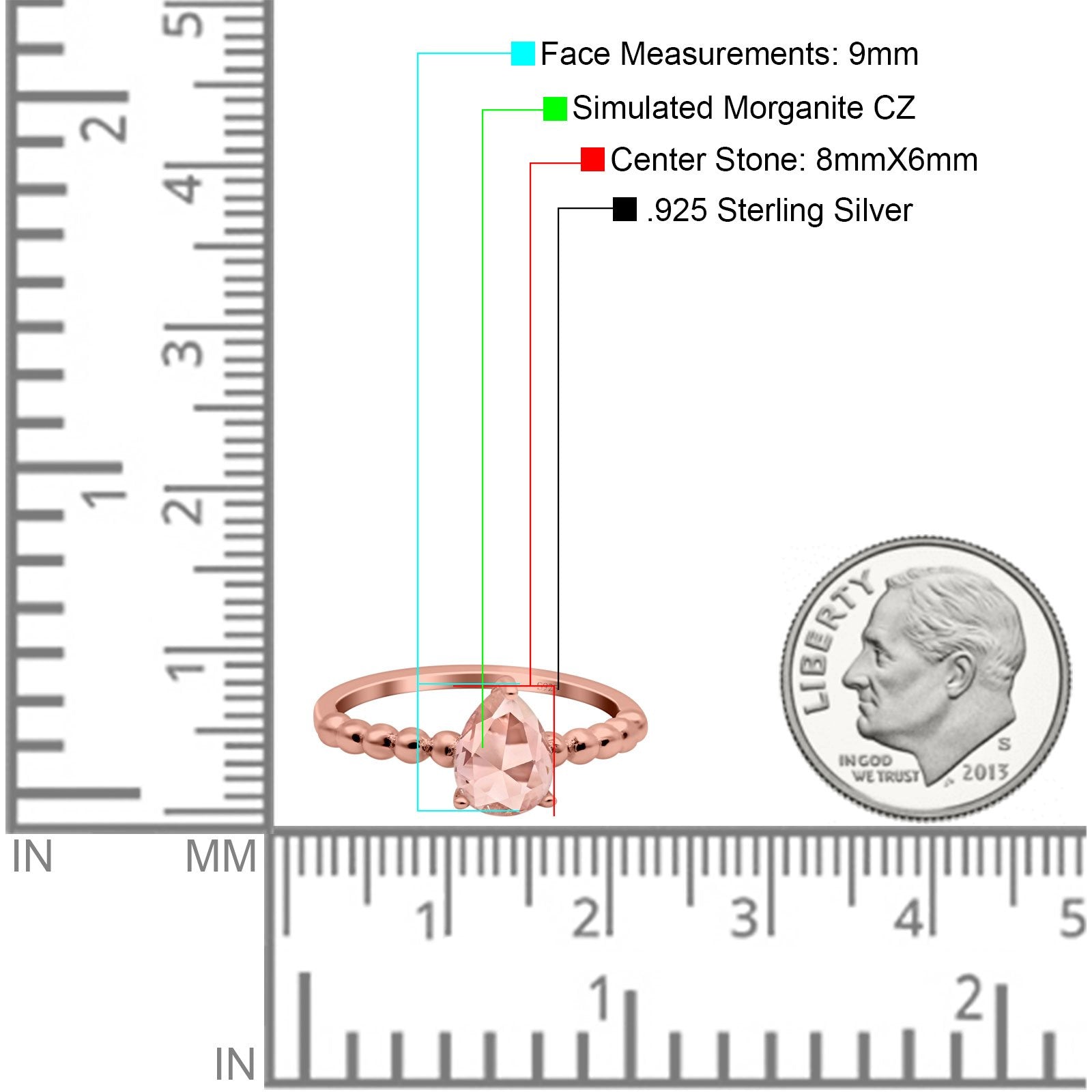 Teardrop Art Deco Pear Wedding Engagement Ring Round Simulated Cubic Zirconia 925 Sterling Silver