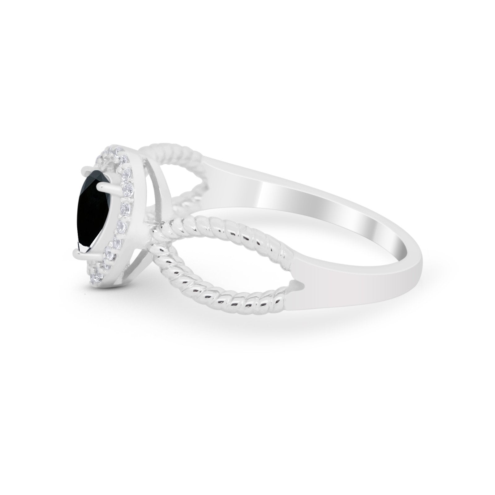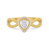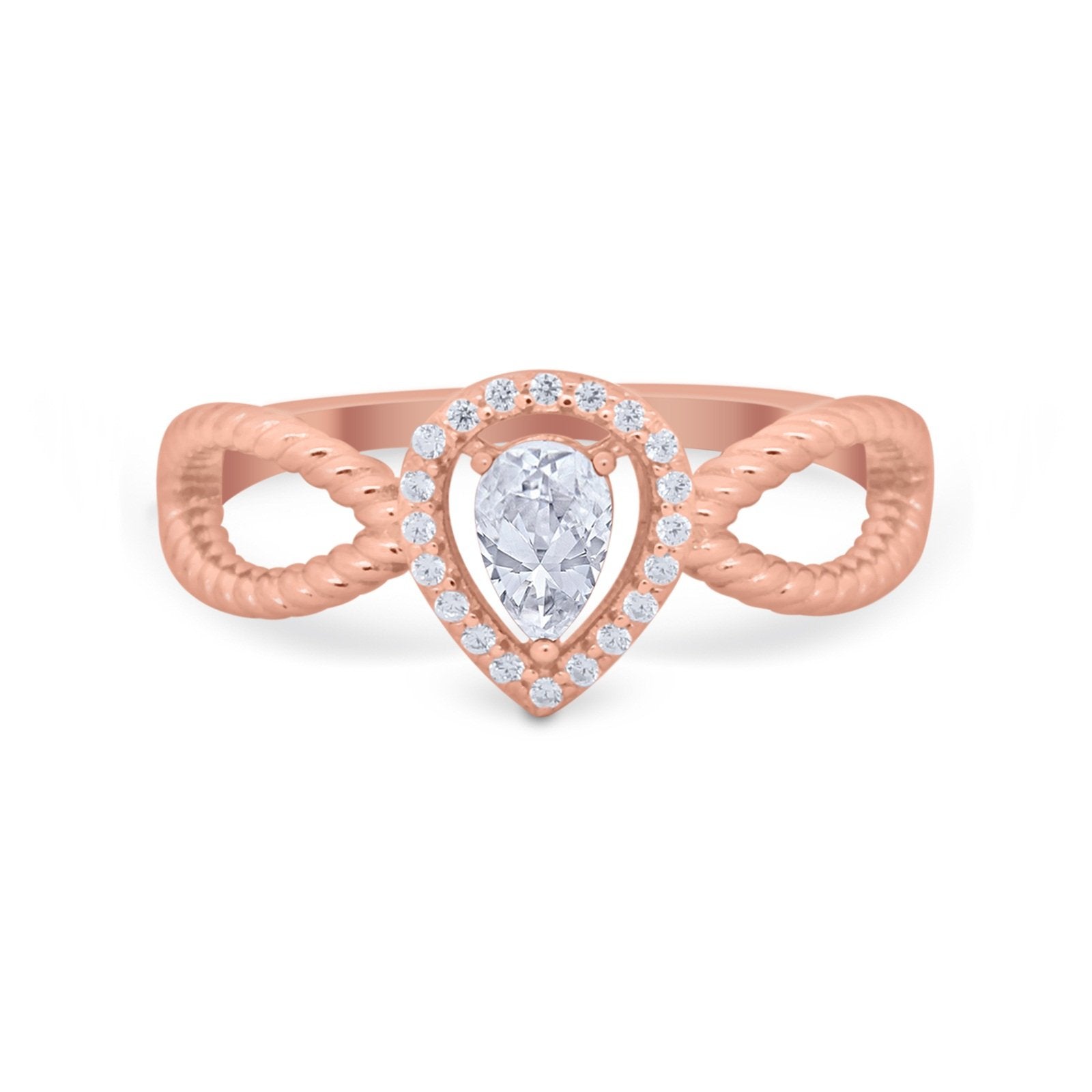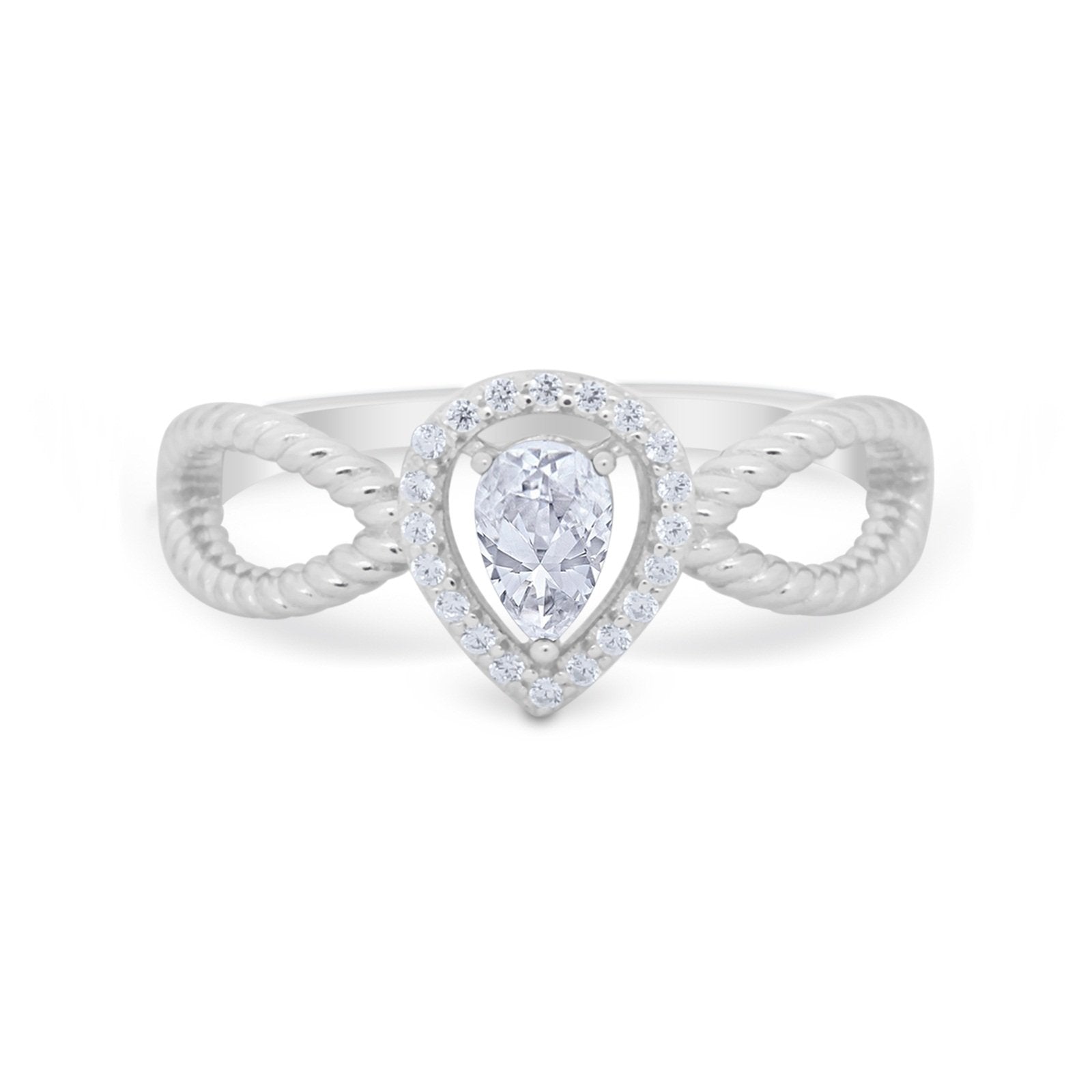Teardrop Wedding Ring Pear Round Simulated Cubic Zirconia 925 Sterling Silver