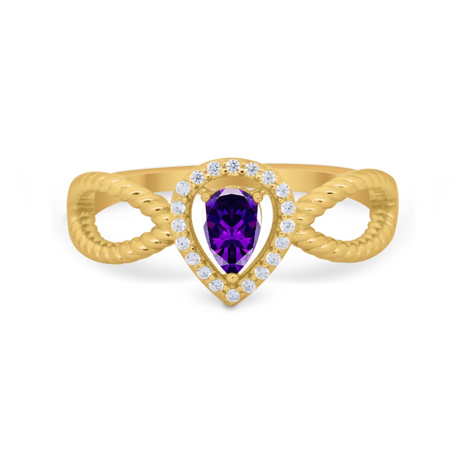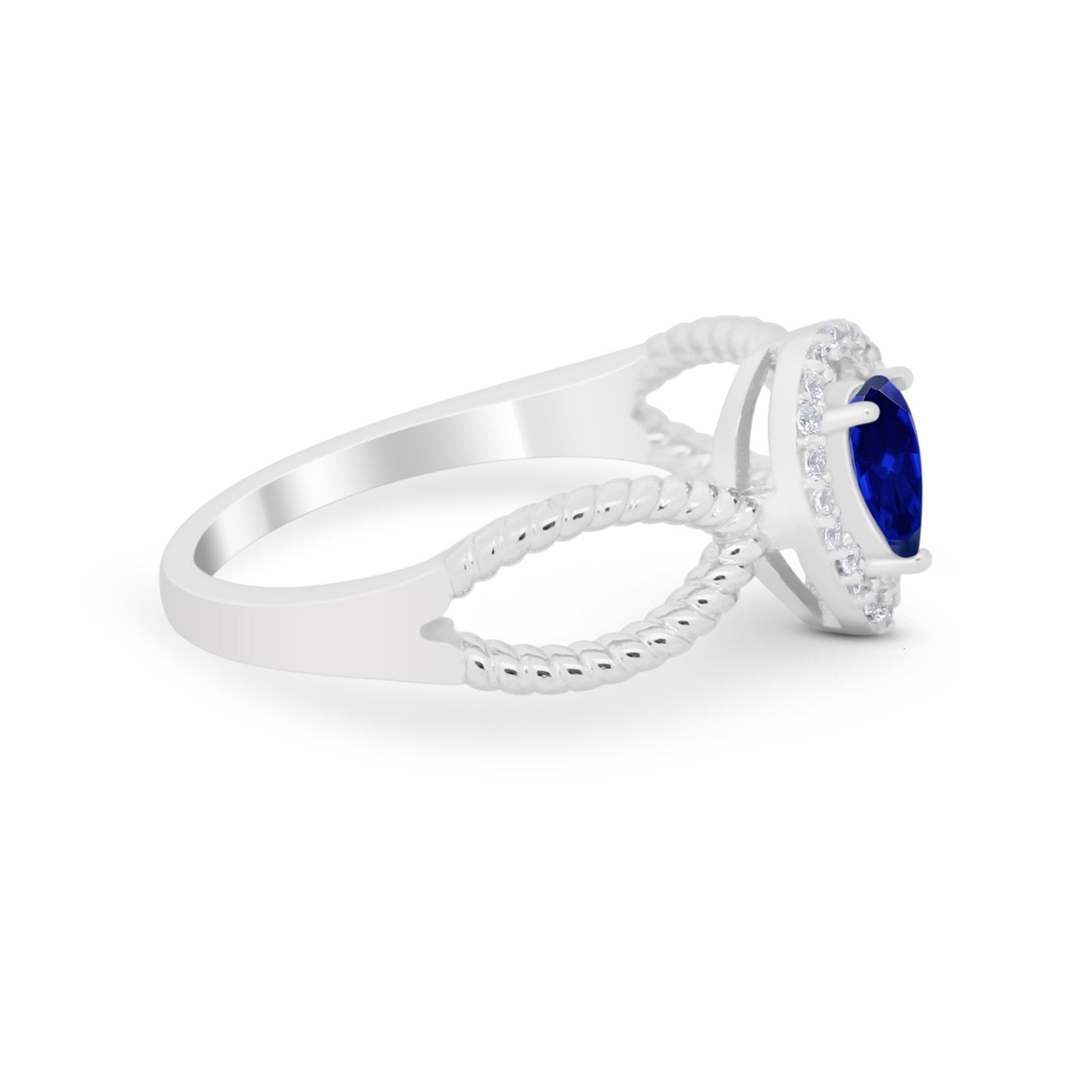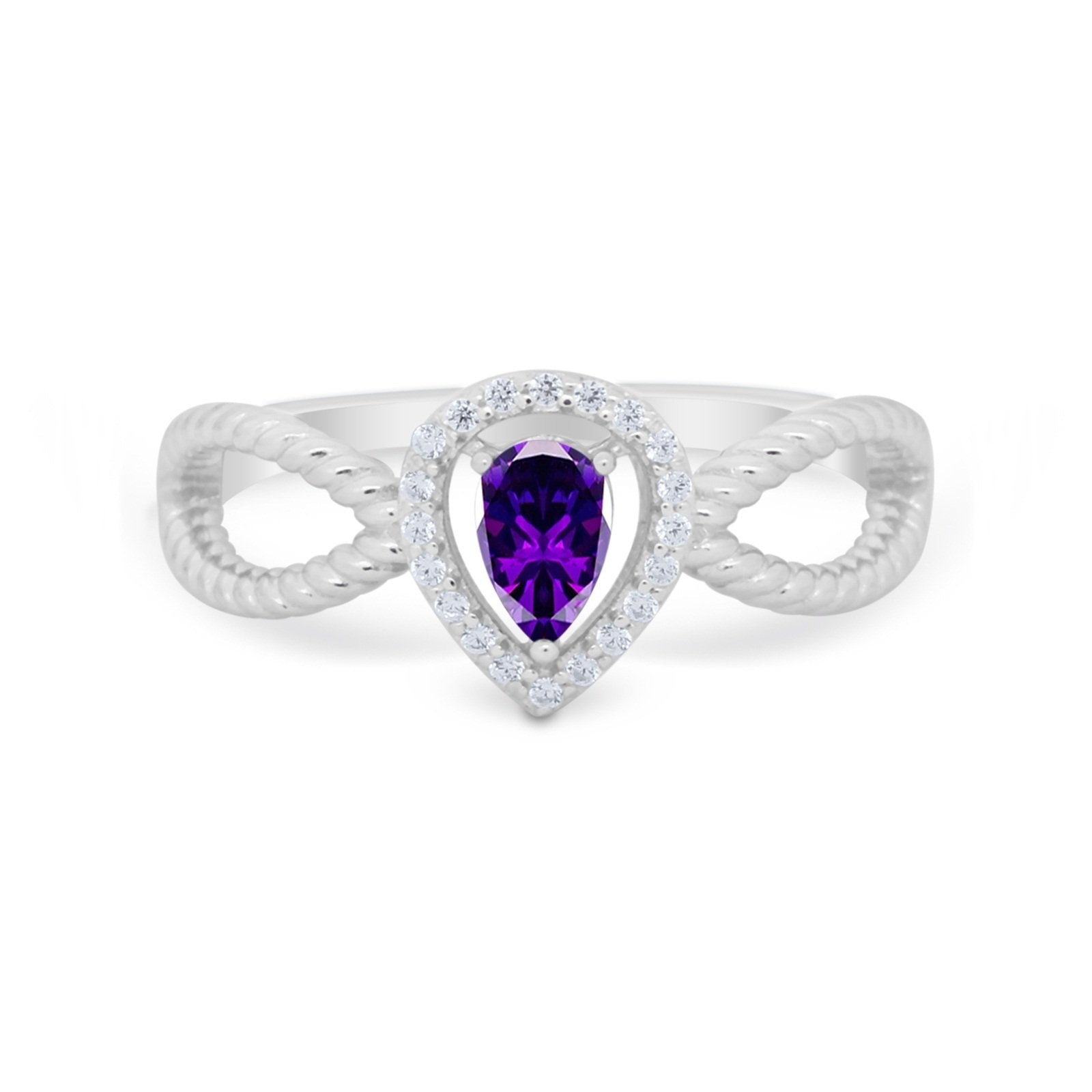 Teardrop Wedding Ring Pear Round Simulated Cubic Zirconia 925 Sterling Silver