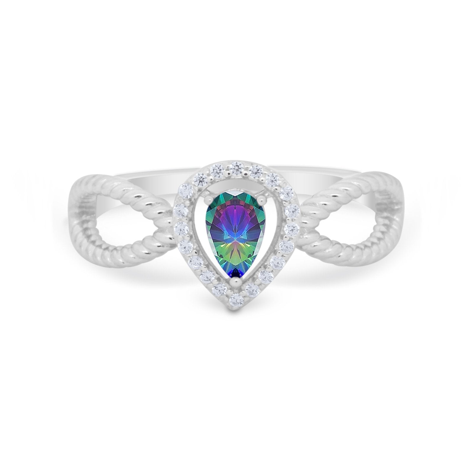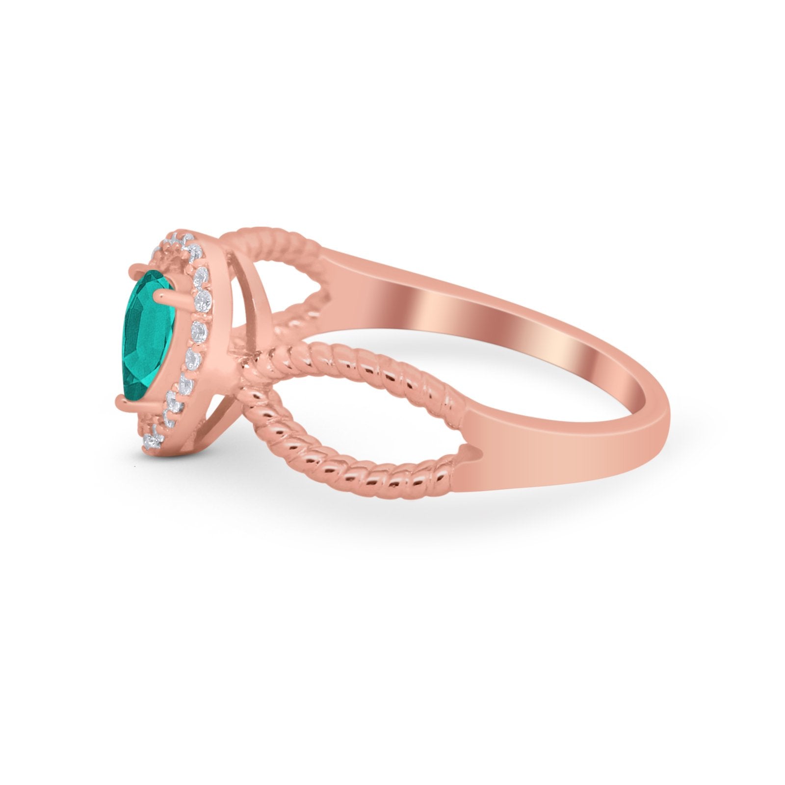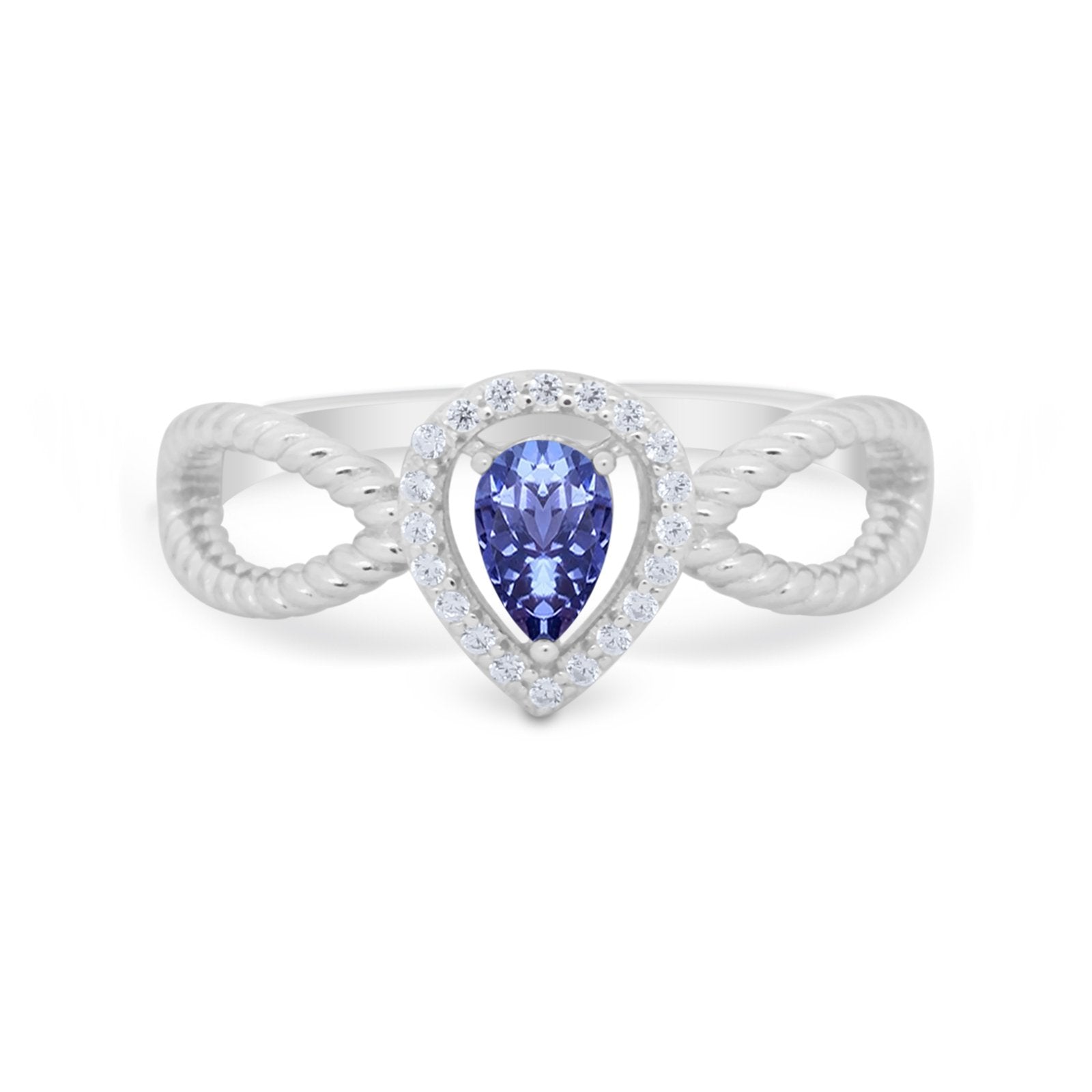 CZ & Blue Sapphire CZ Rose Tone Silver