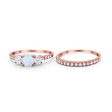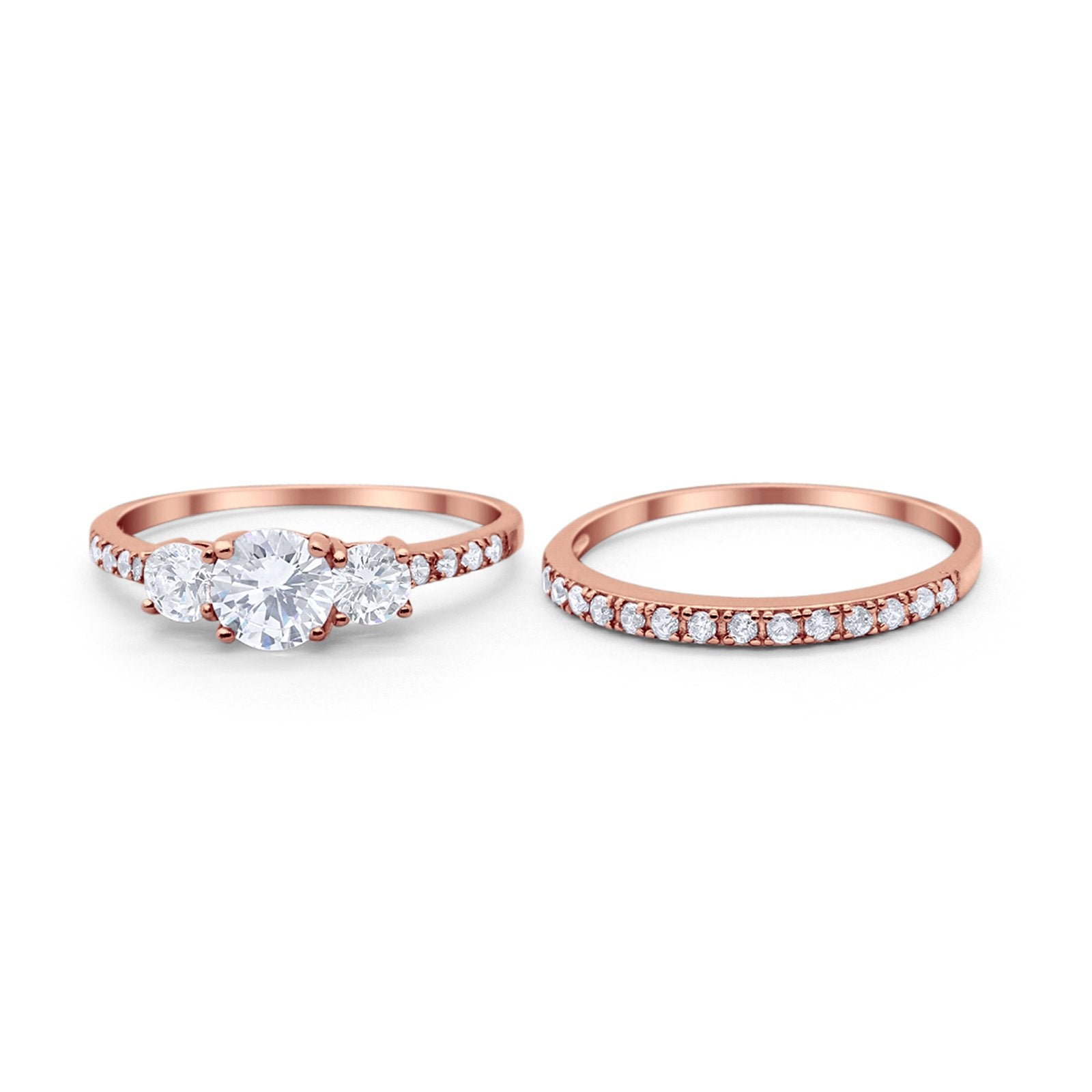 Three Stone Two Piece Wedding Engagement Bridal Set Ring Round Cubic Ziroconia 925 Sterling Silver