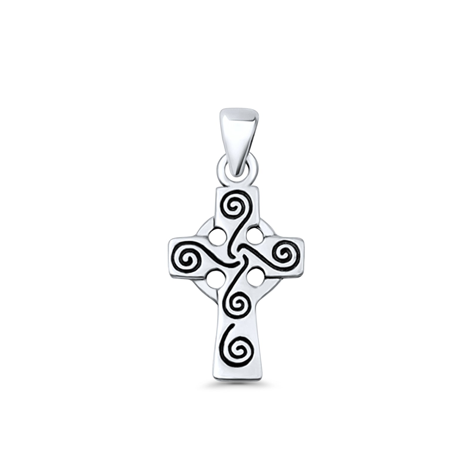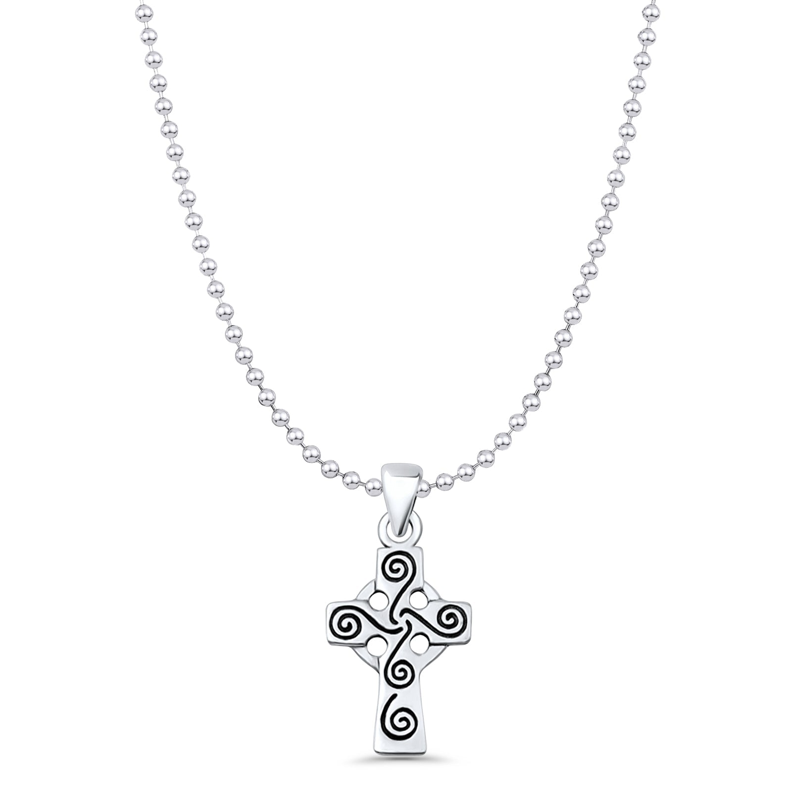 Triskele Cross Charm Pendant Bead Chain Necklace Oxidized 925 Sterling Silver
