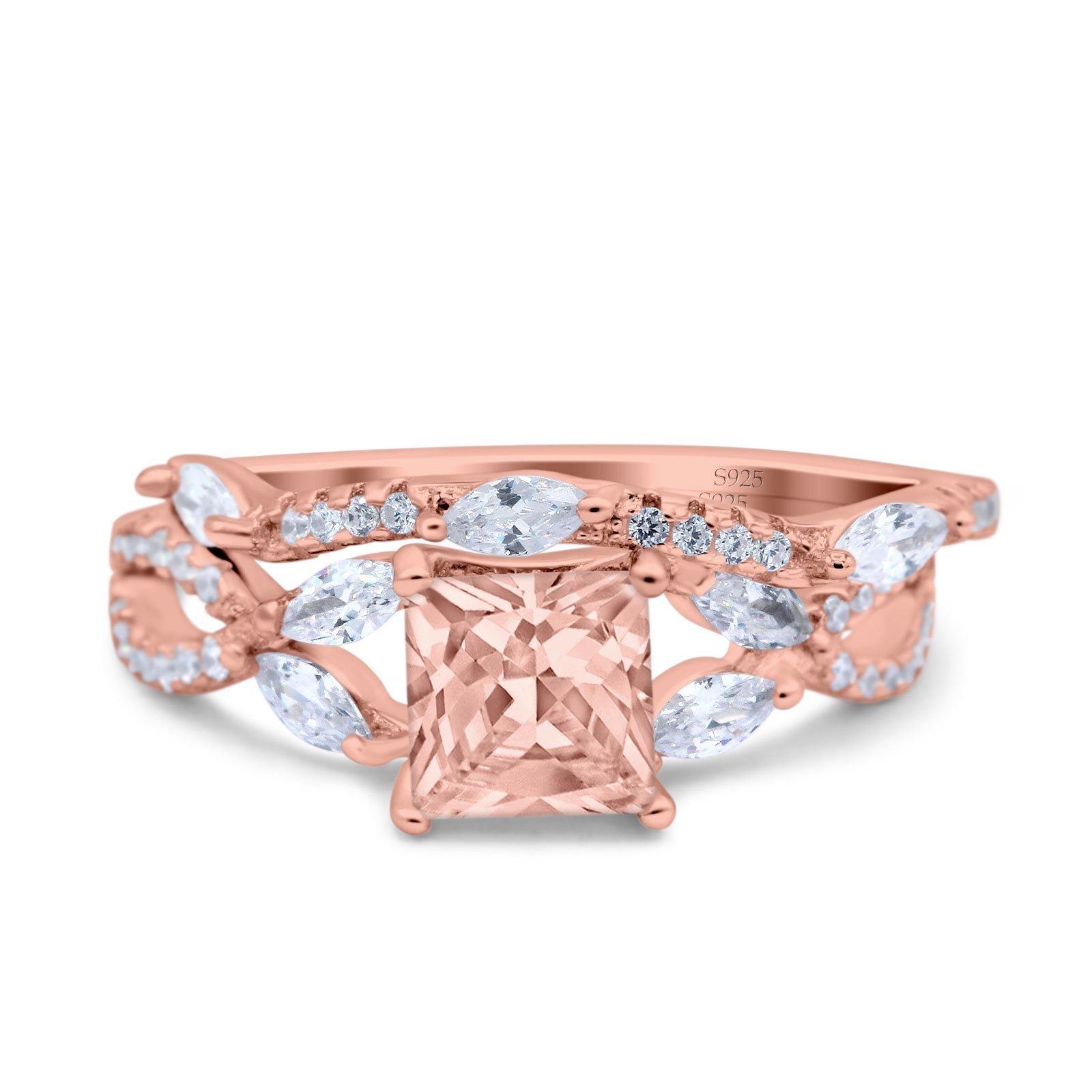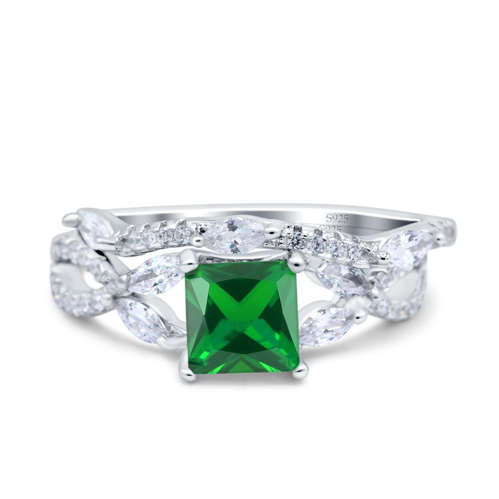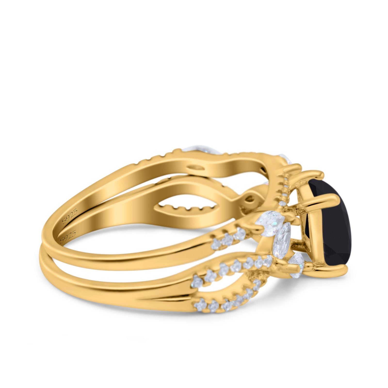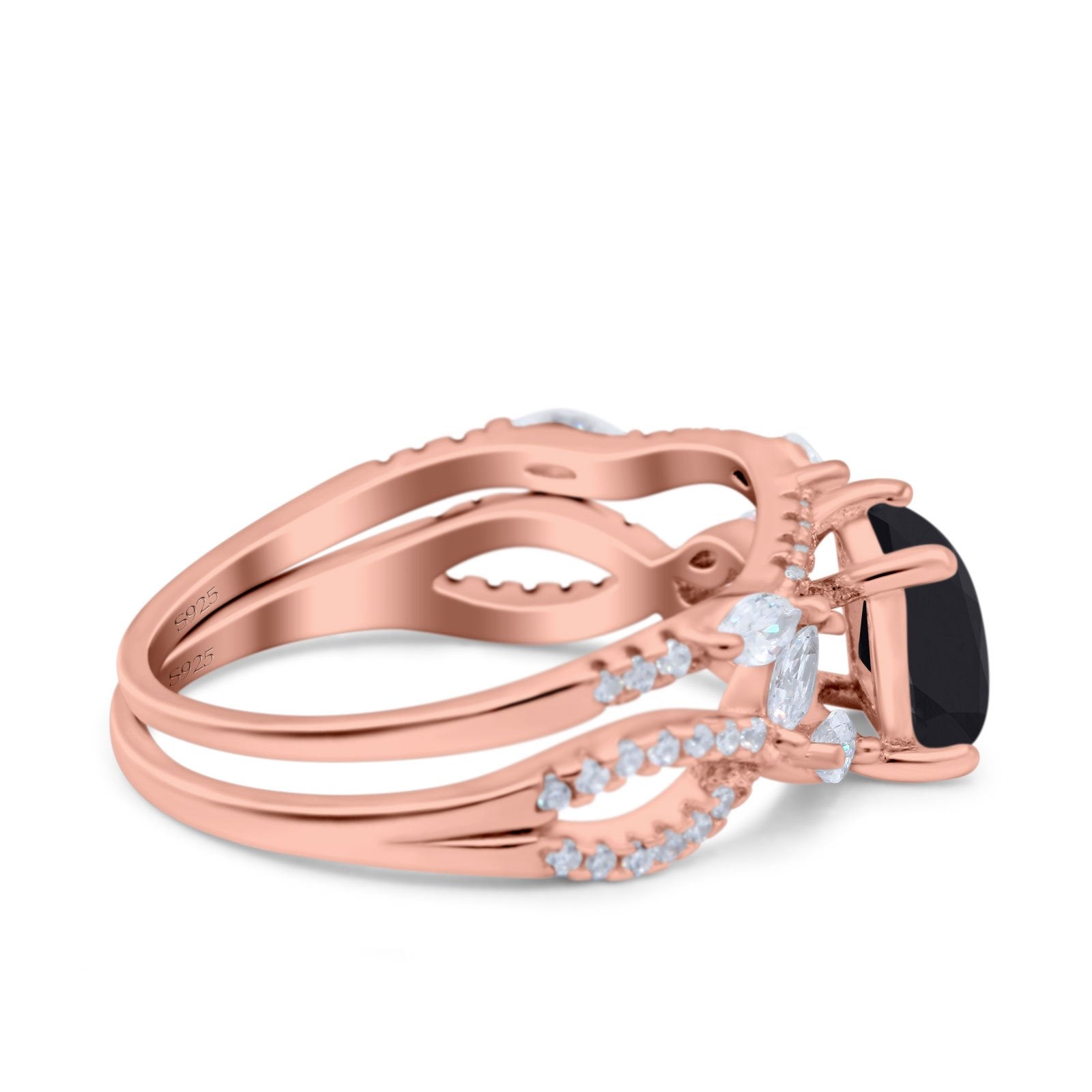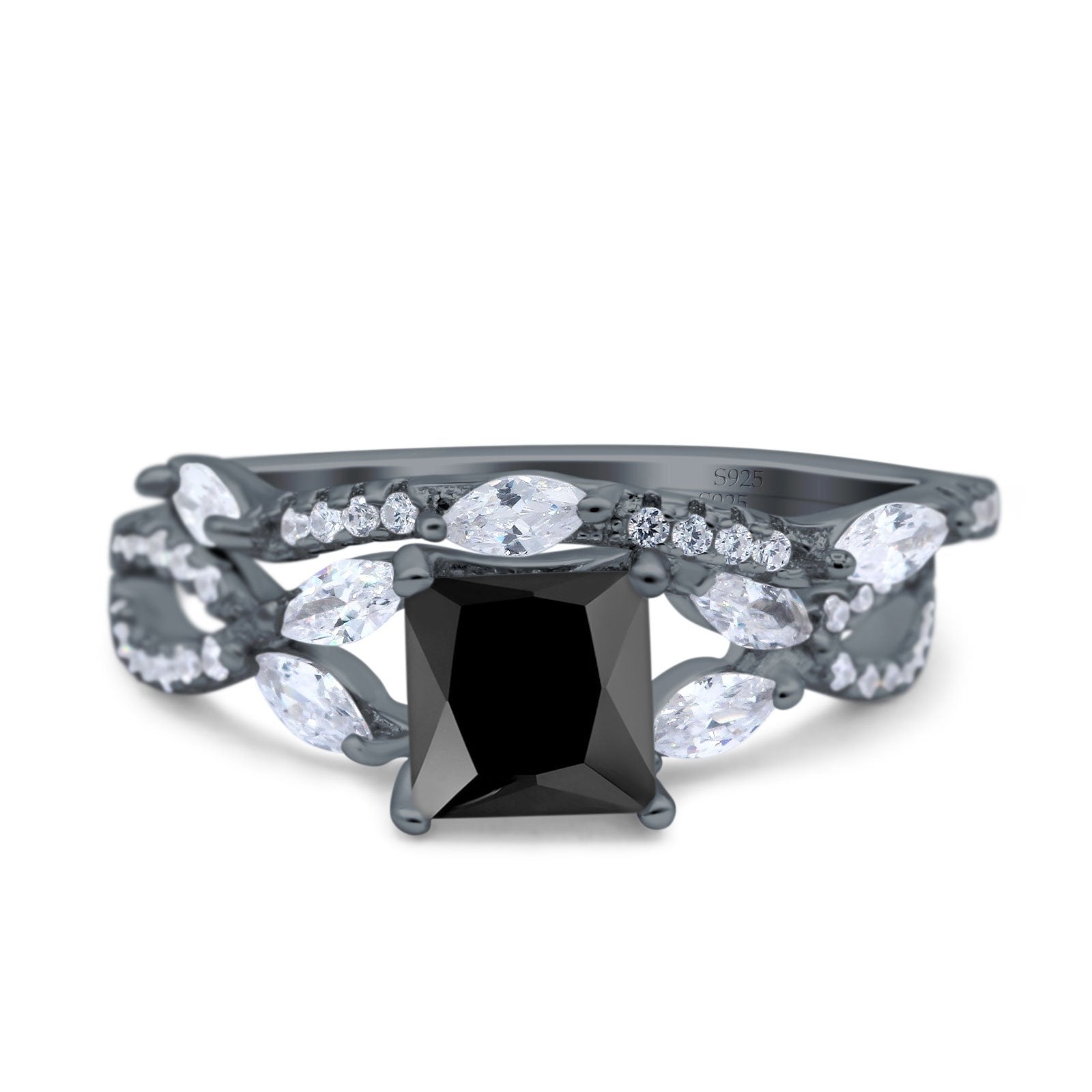 Two Piece Bridal Set Art Deco Princess Cut Wedding Engagement Marquise Round Simulated Cubic Zirconia 925 Sterling Silver