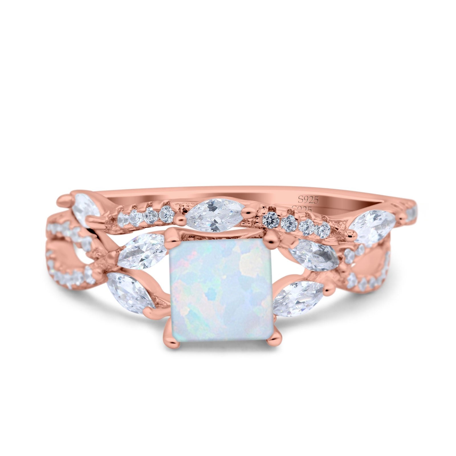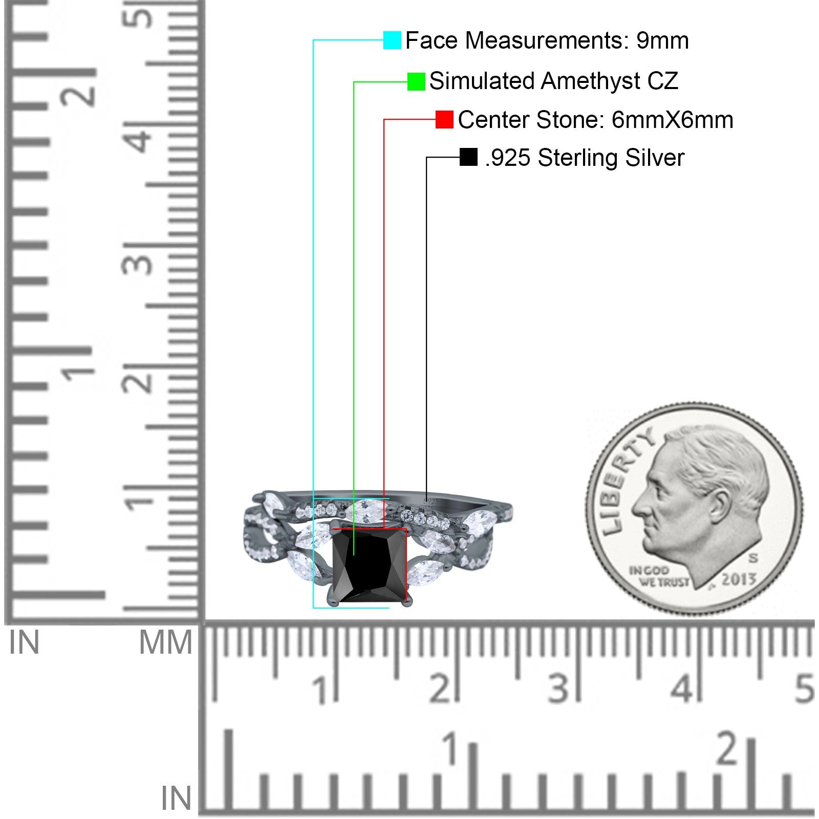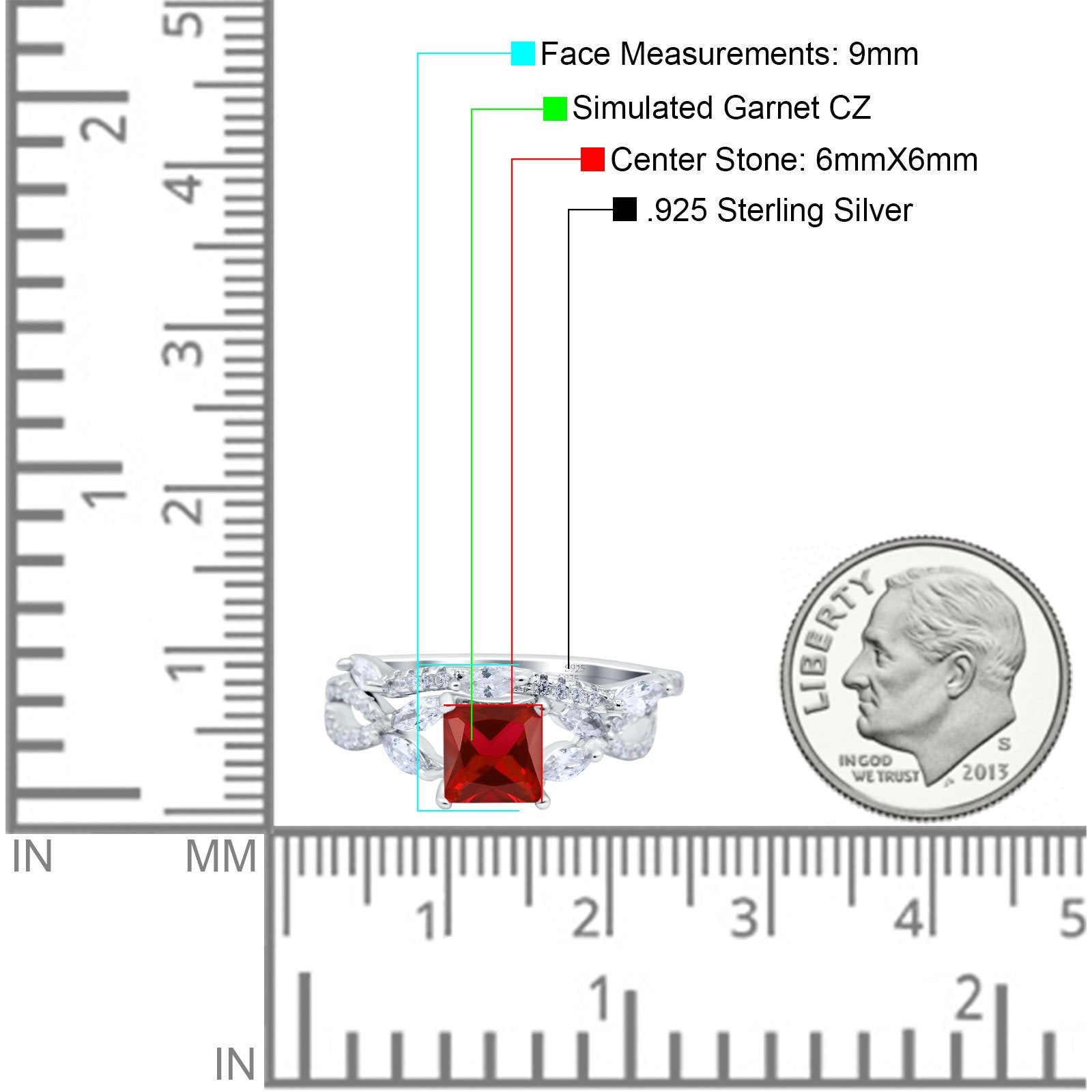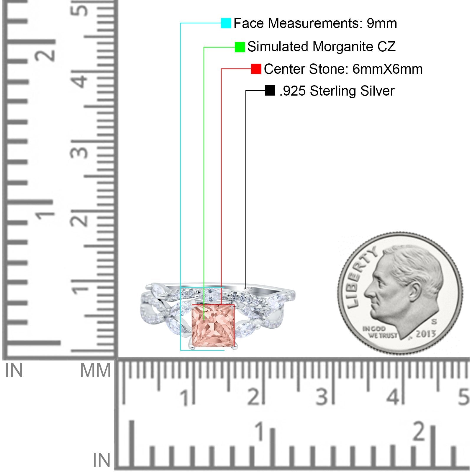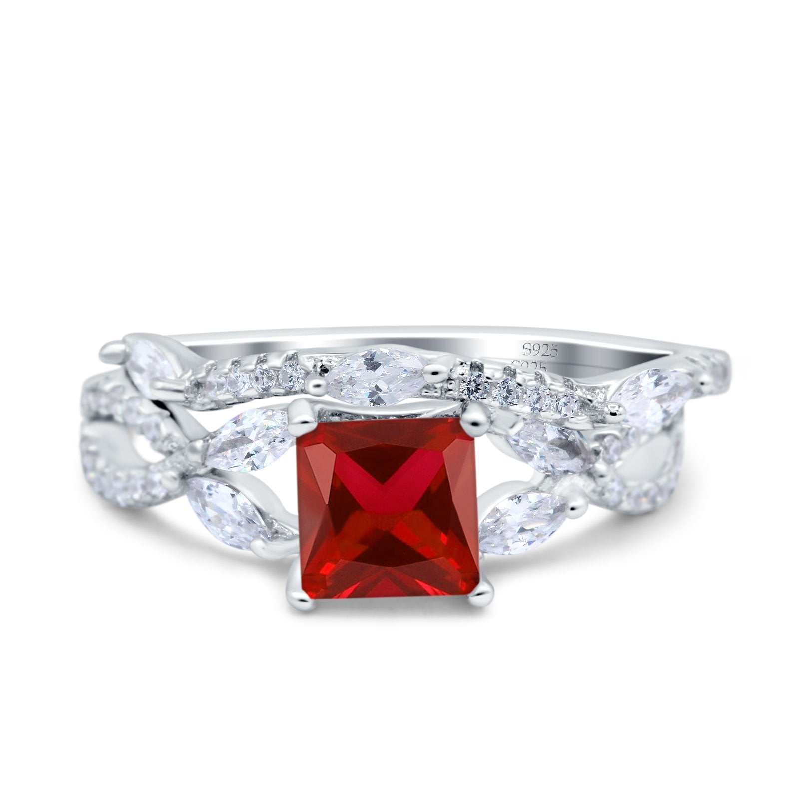 Two Piece Bridal Set Art Deco Princess Cut Wedding Engagement Marquise Round Simulated Cubic Zirconia 925 Sterling Silver