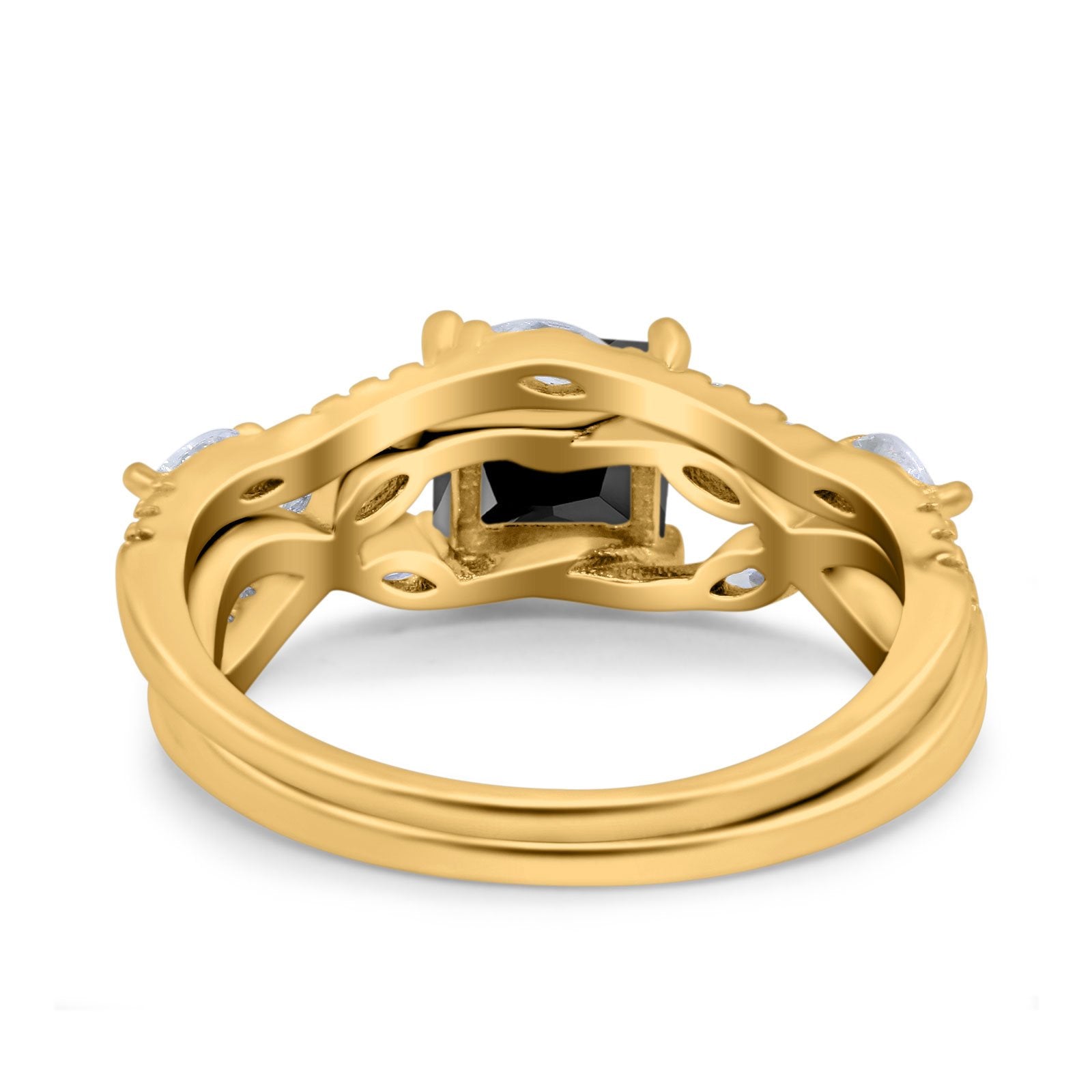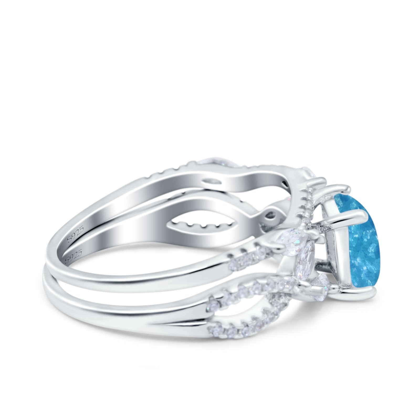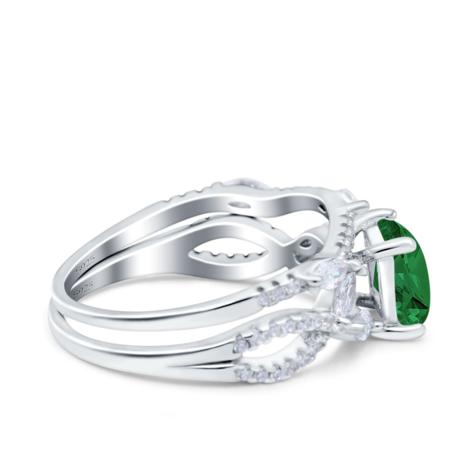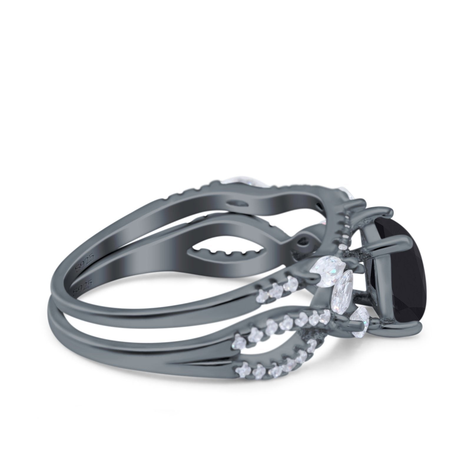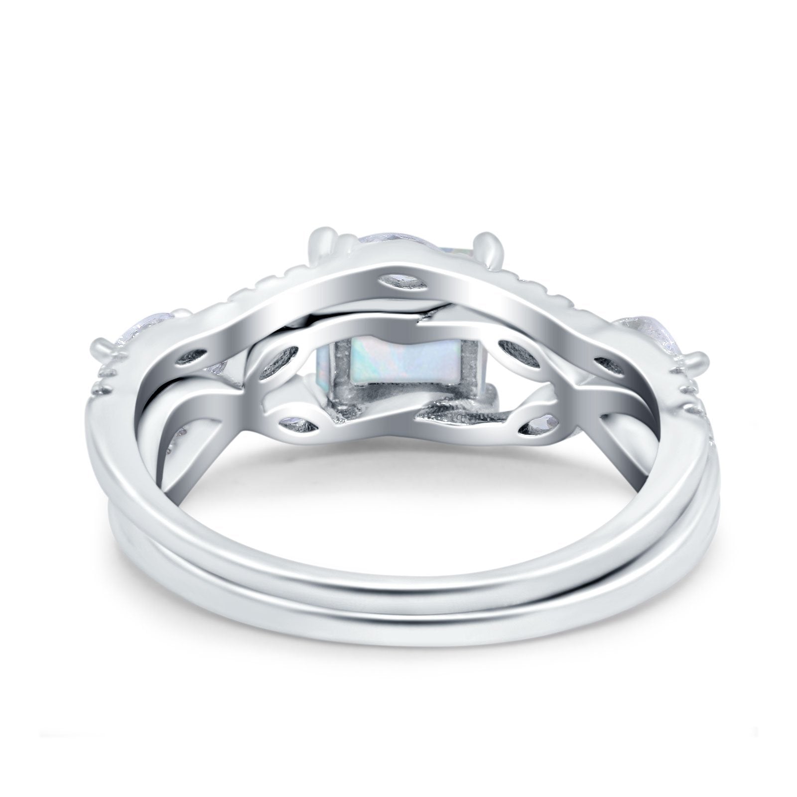 Two Piece Bridal Set Art Deco Princess Cut Wedding Engagement Marquise Round Simulated Cubic Zirconia 925 Sterling Silver