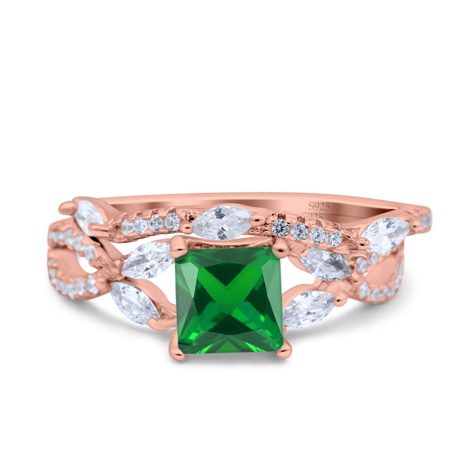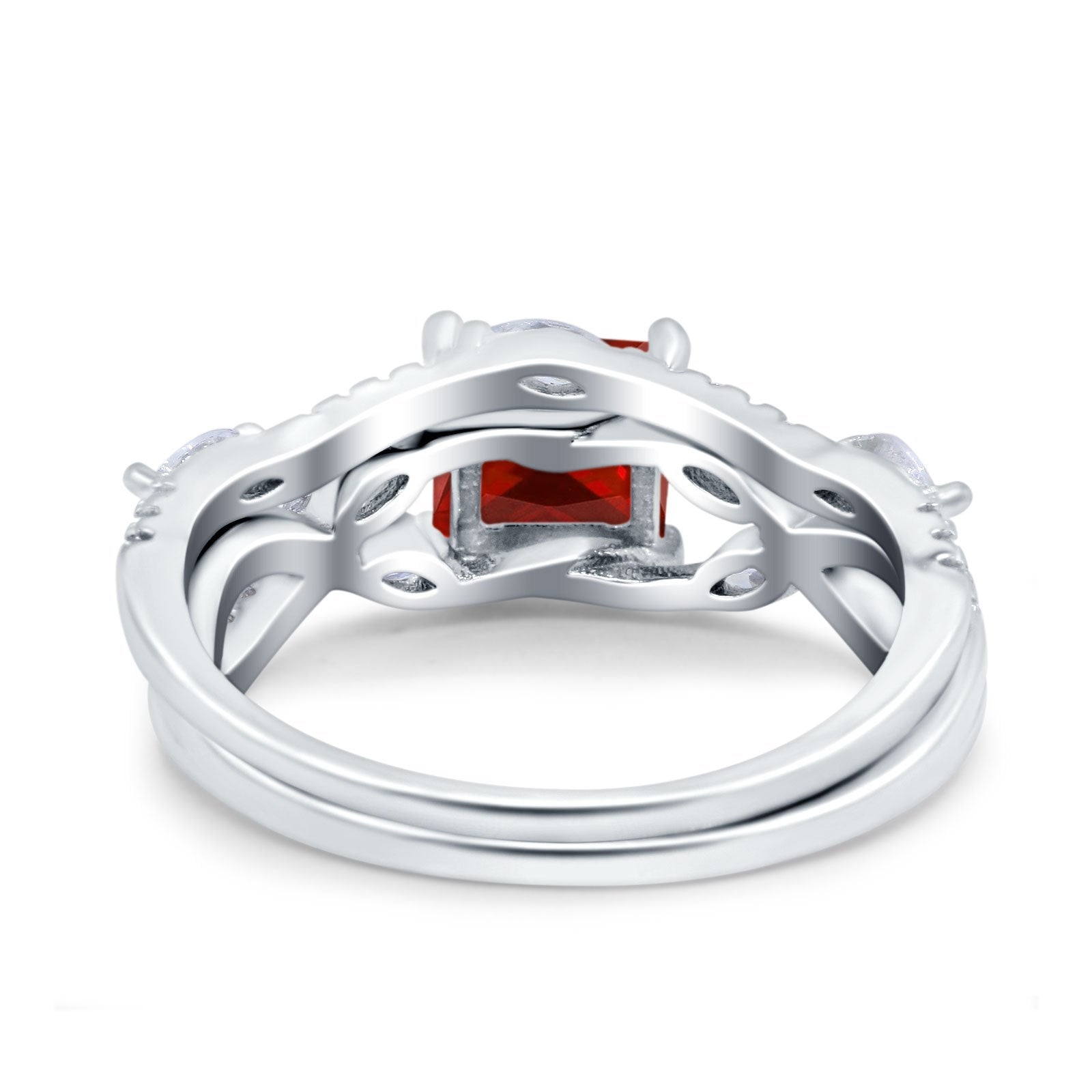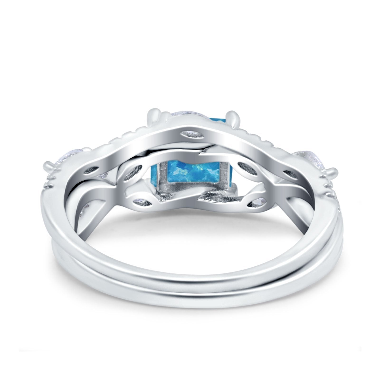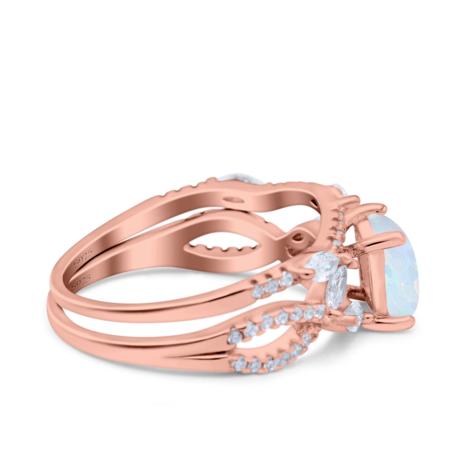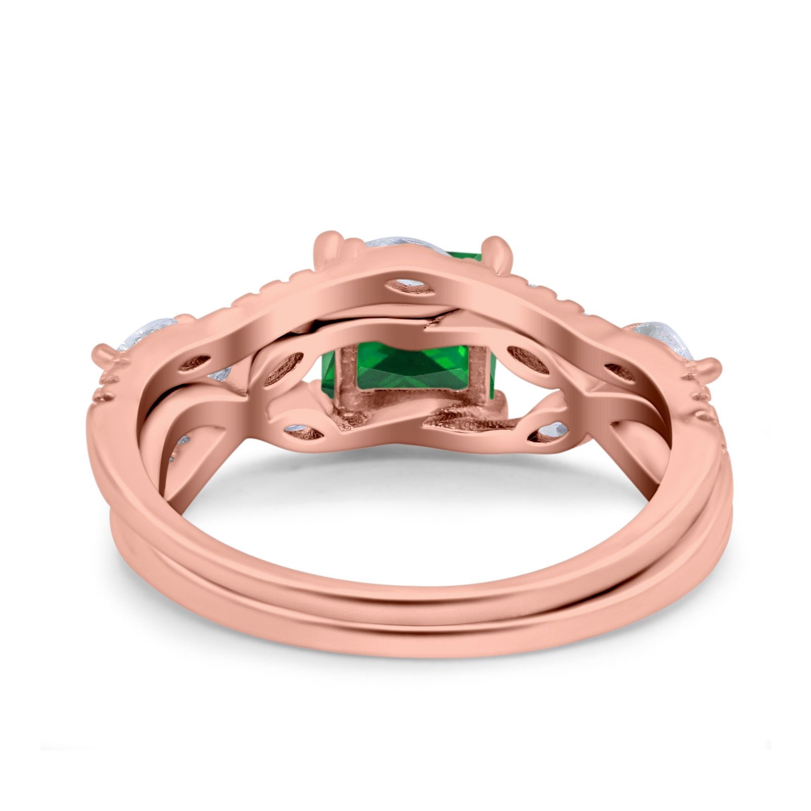 Two Piece Bridal Set Art Deco Princess Cut Wedding Engagement Marquise Round Simulated Cubic Zirconia 925 Sterling Silver