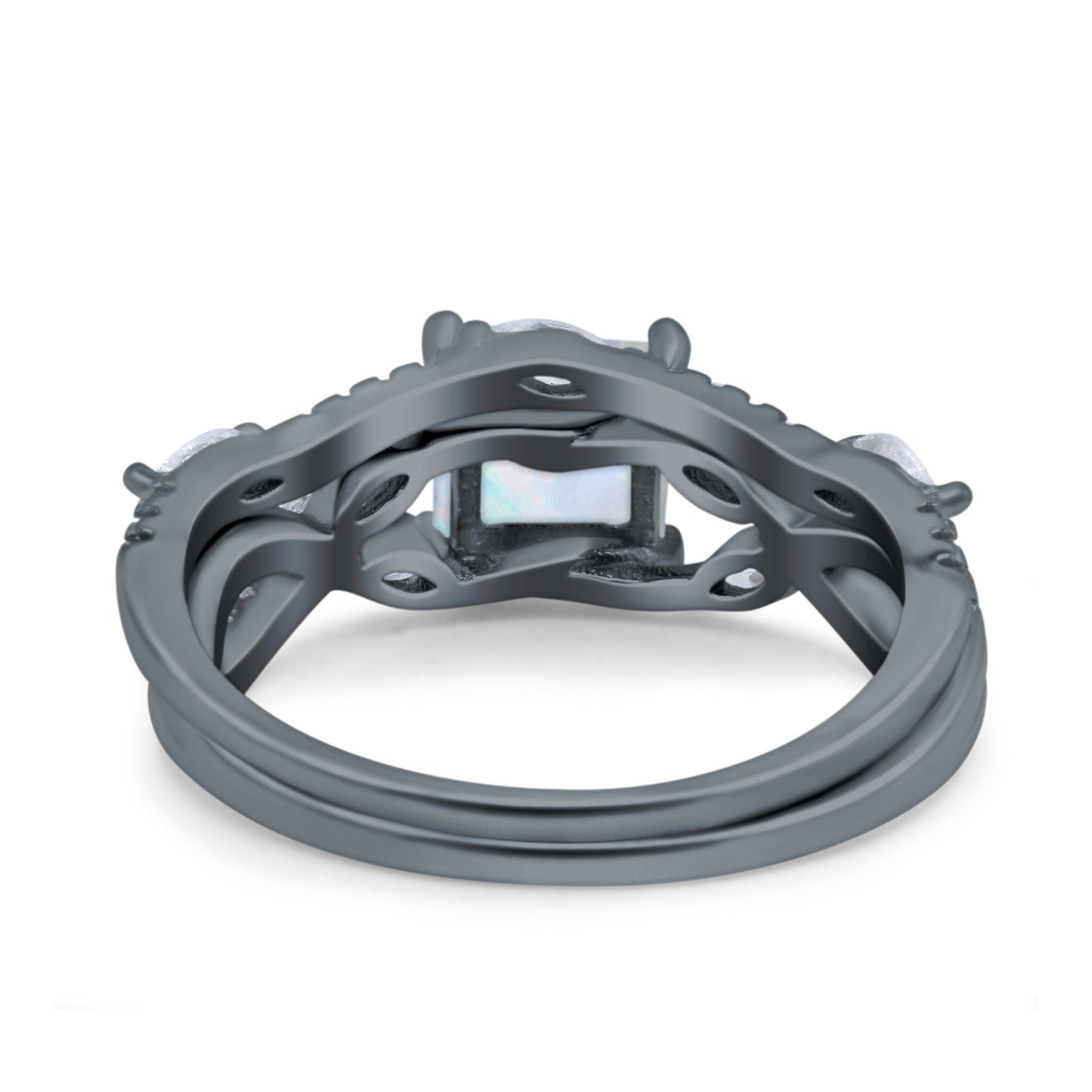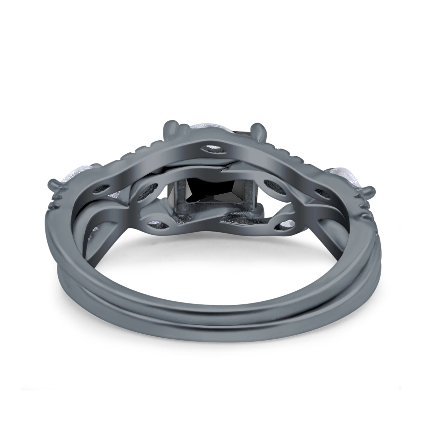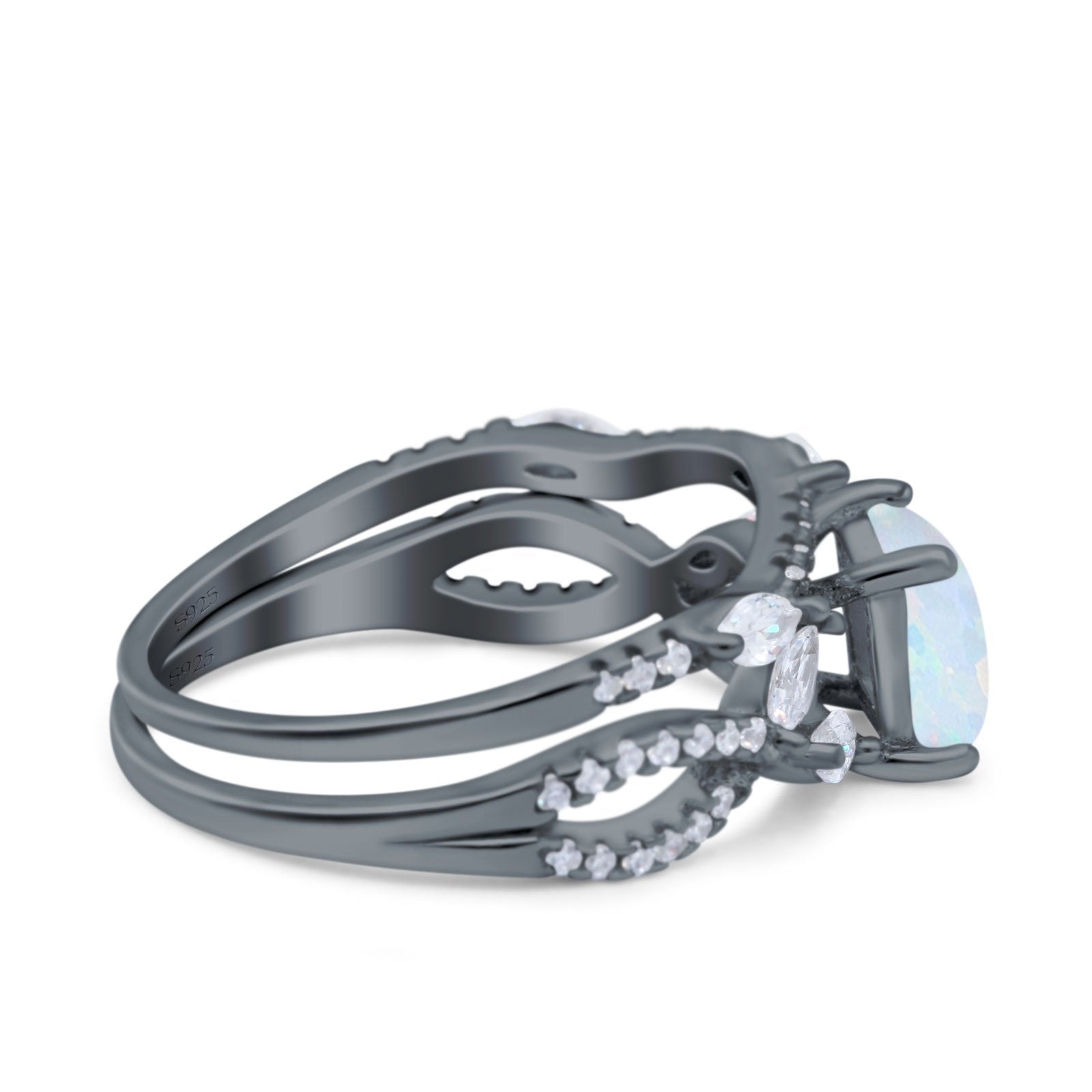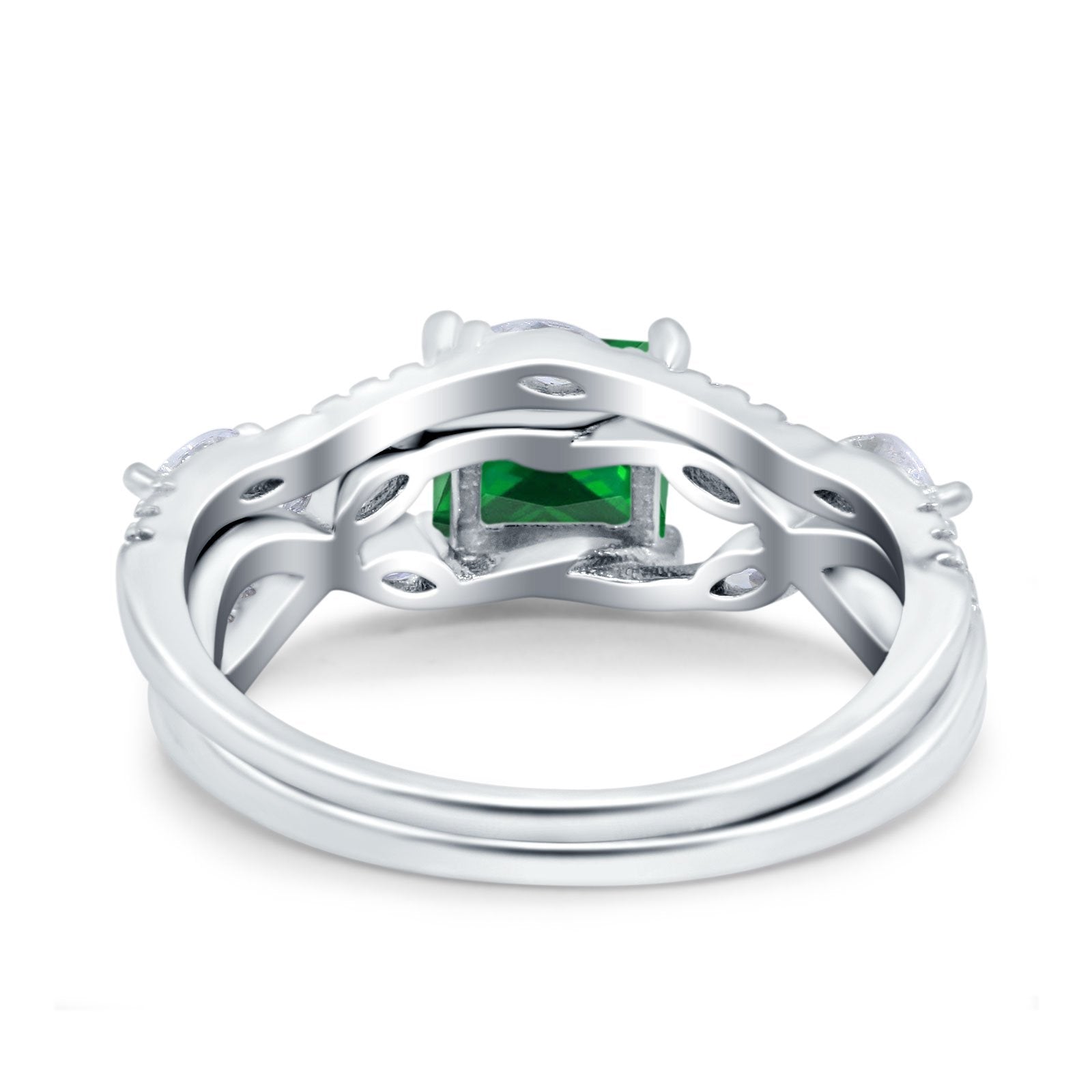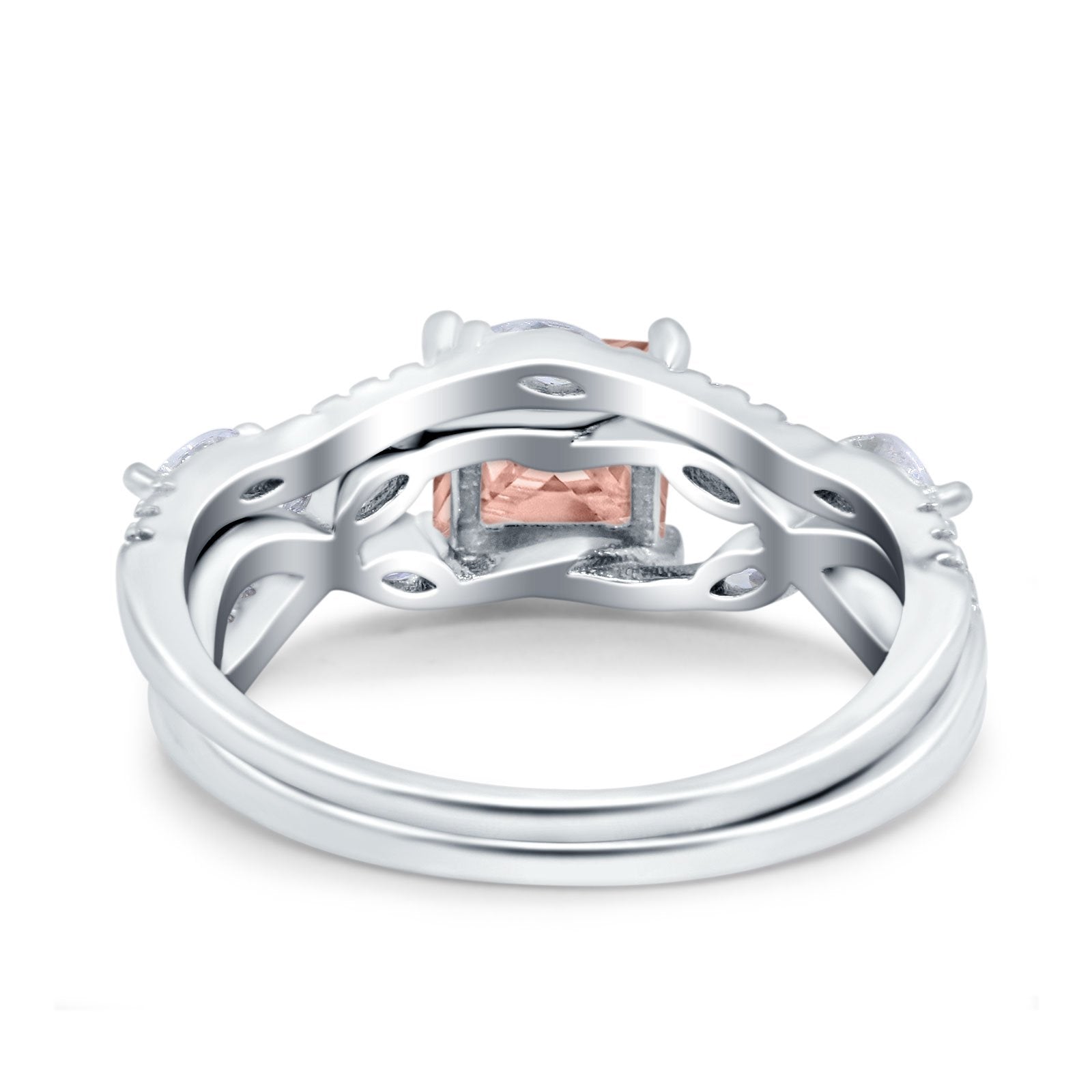 Two Piece Bridal Set Art Deco Princess Cut Wedding Engagement Marquise Round Simulated Cubic Zirconia 925 Sterling Silver