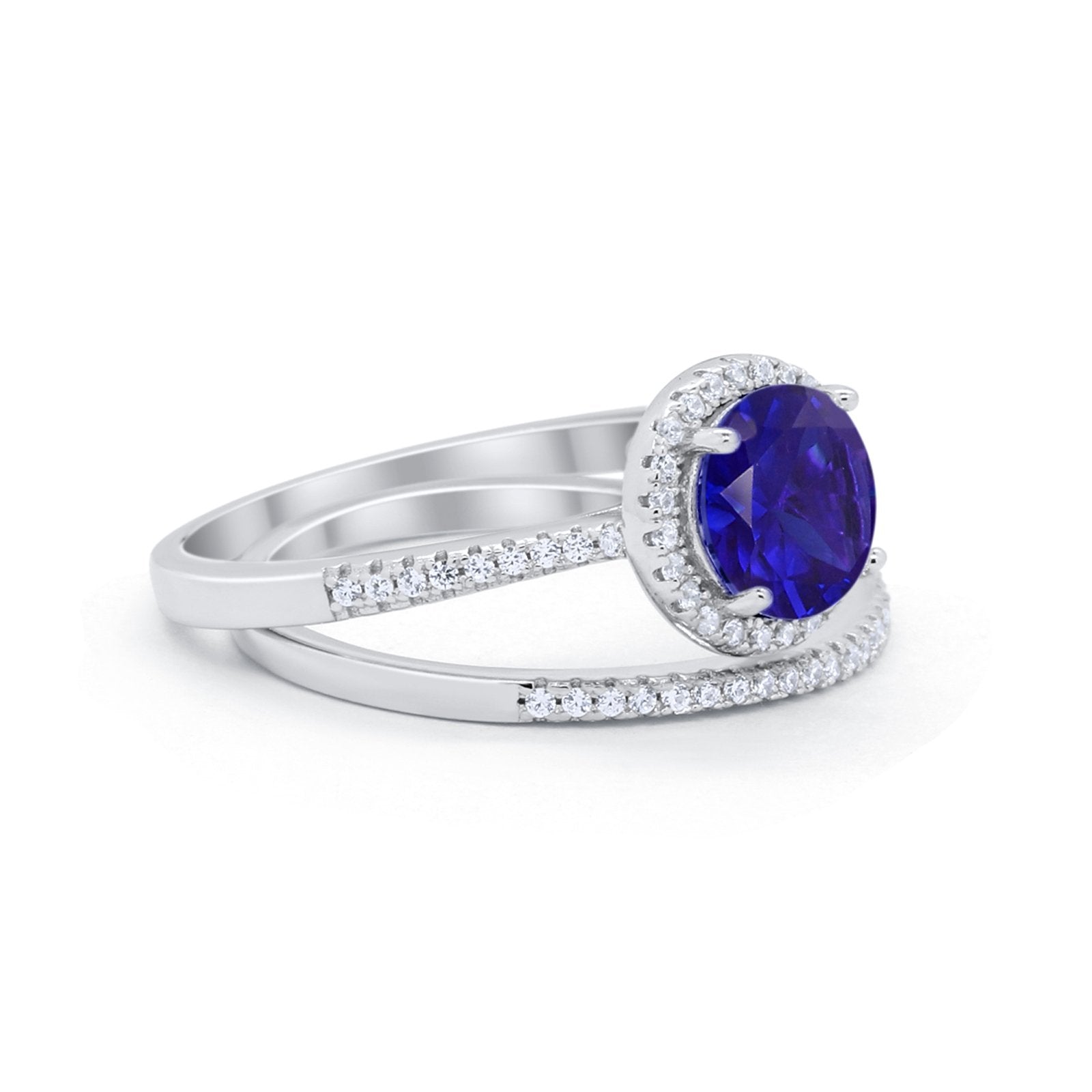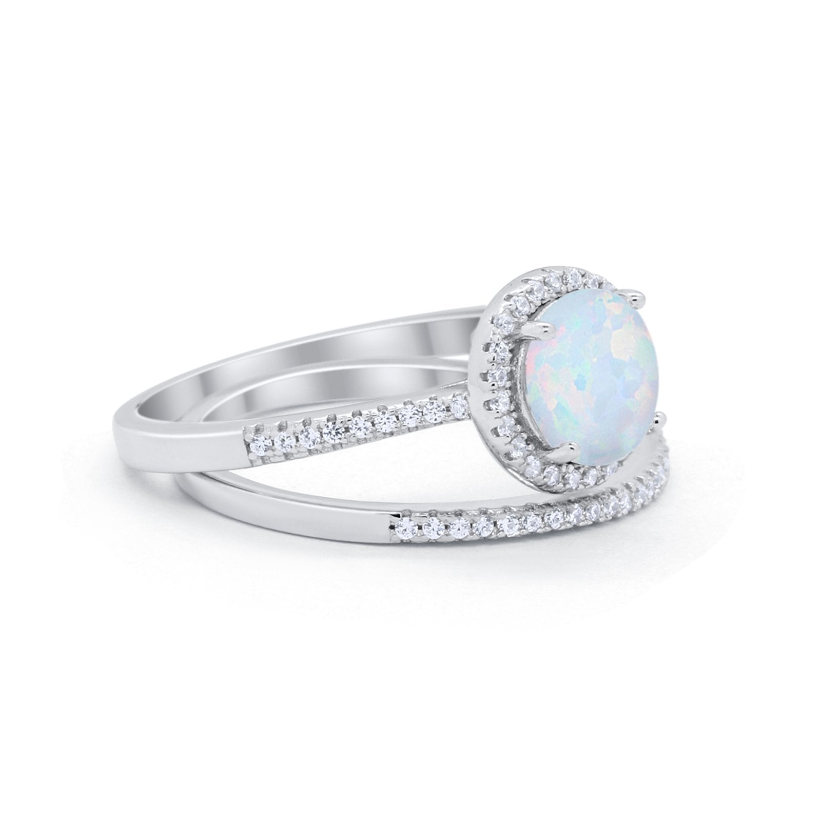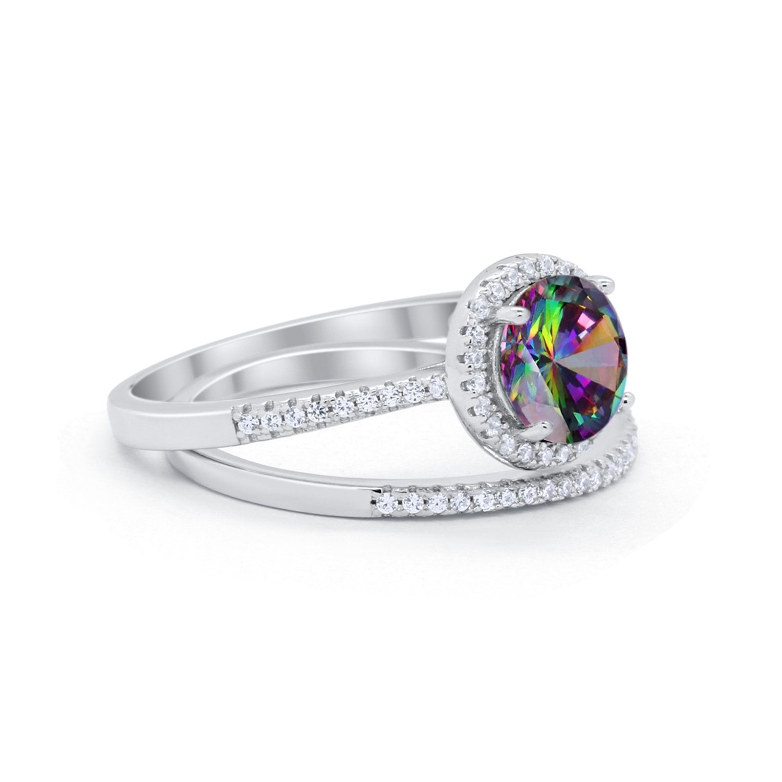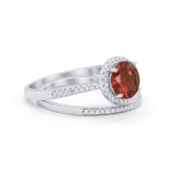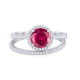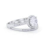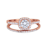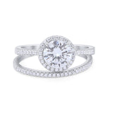 Two Piece Halo Art Deco Bridal Set Wedding Engagement Ring Band 925 Sterling Silver Round Cubic Zirconia