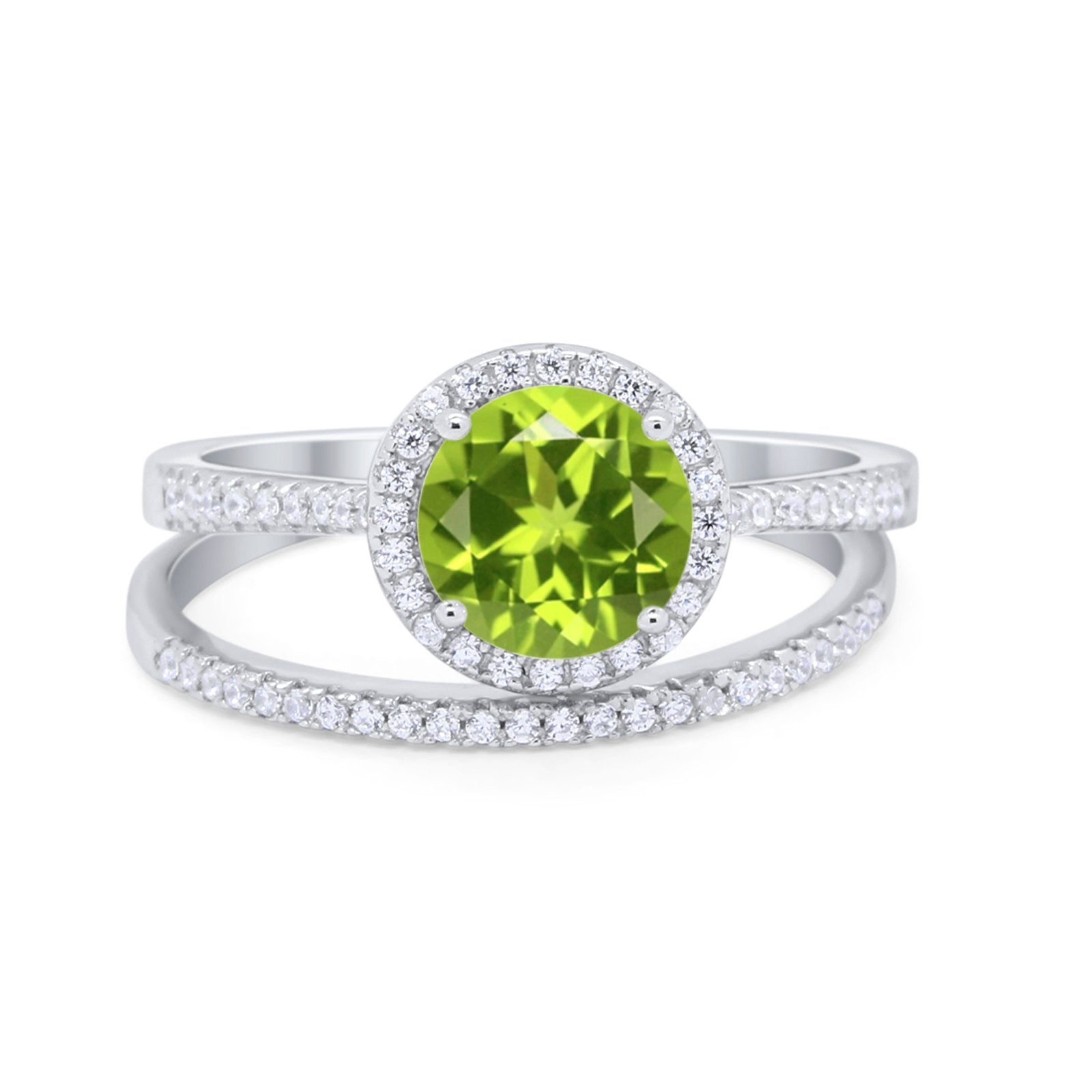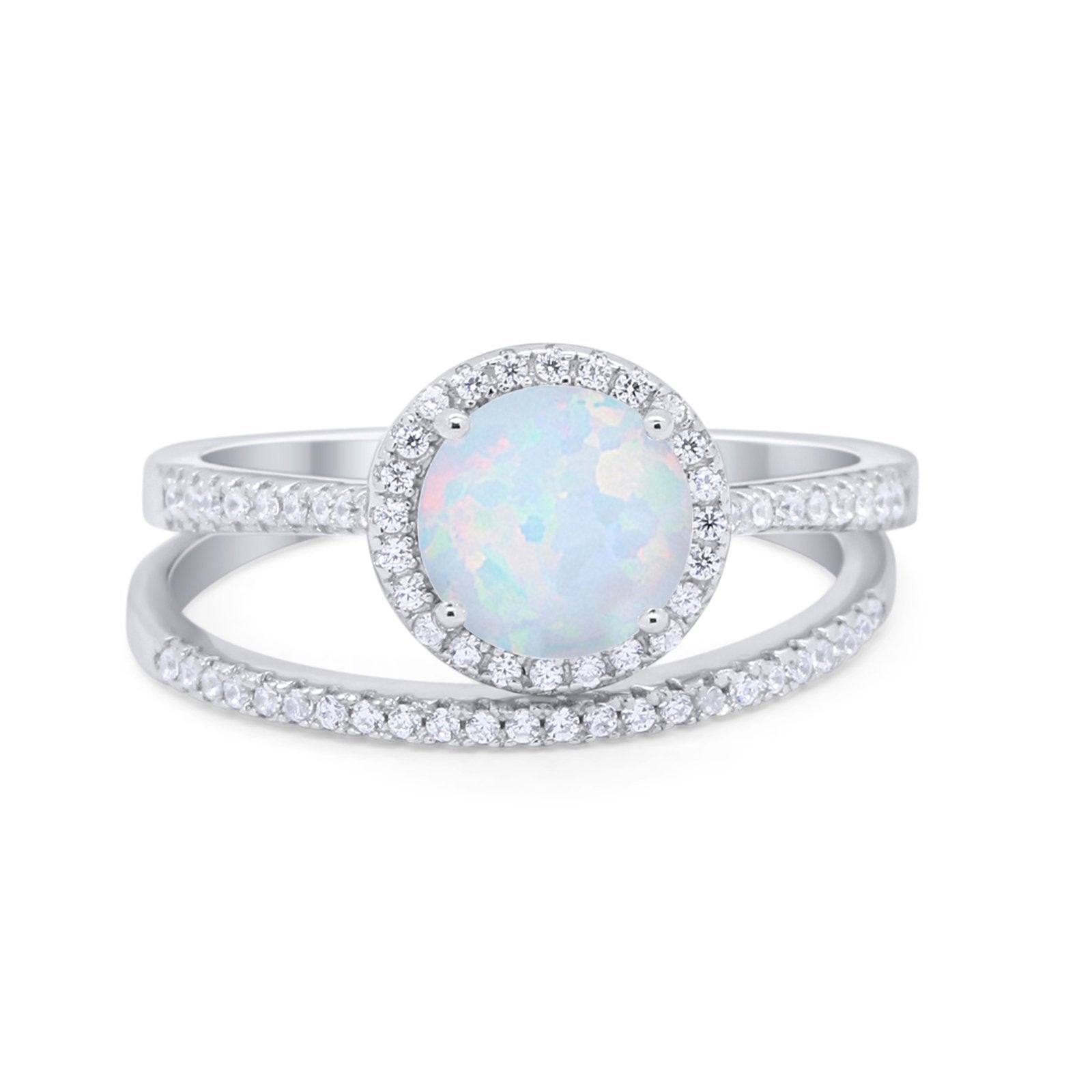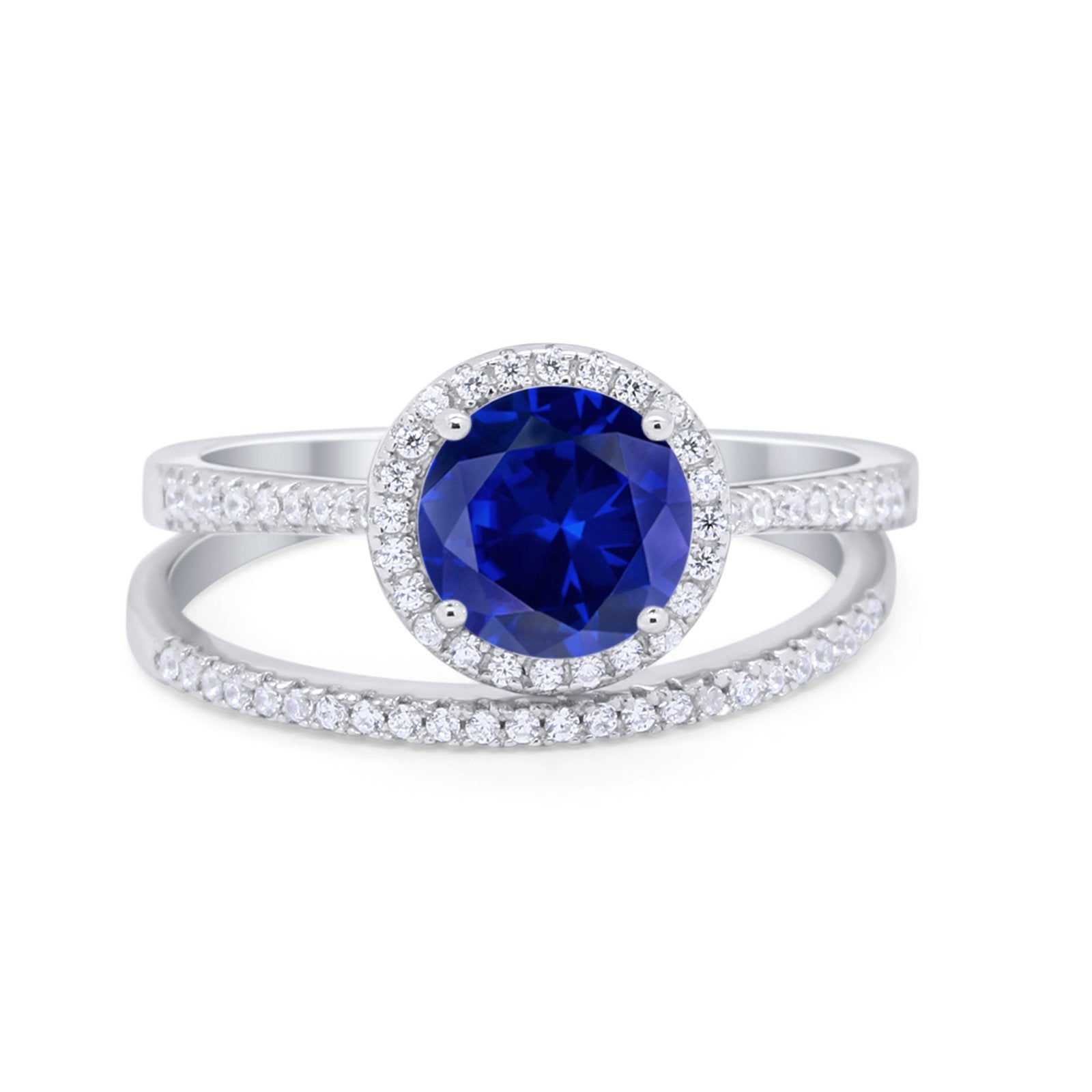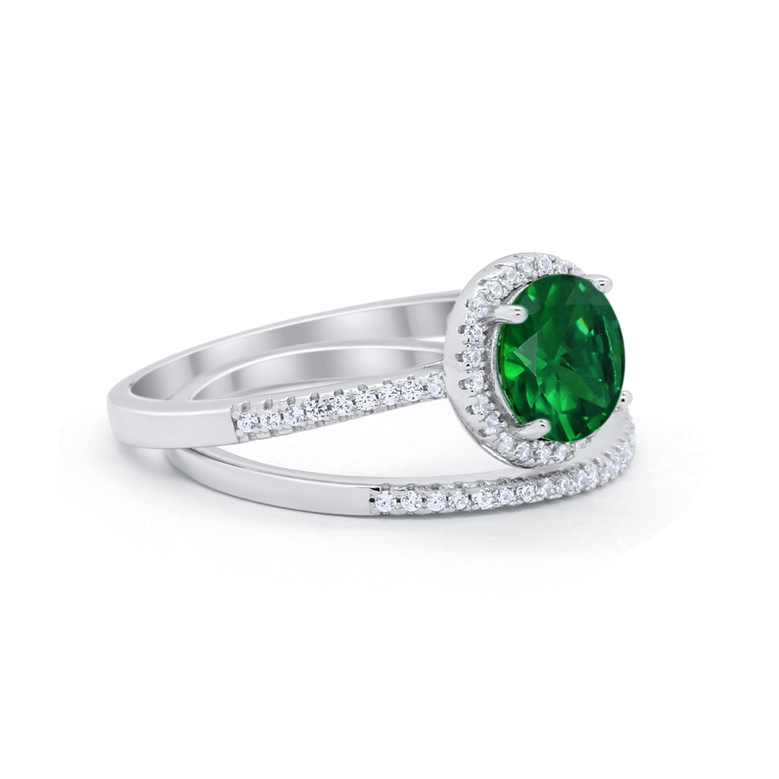 Two Piece Halo Art Deco Bridal Set Wedding Engagement Ring Band 925 Sterling Silver Round Cubic Zirconia