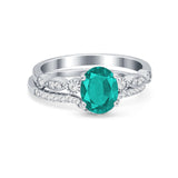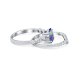 Two Piece Wedding Ring Band Round Simulated Cubic Zirconia 925 Sterling Silver