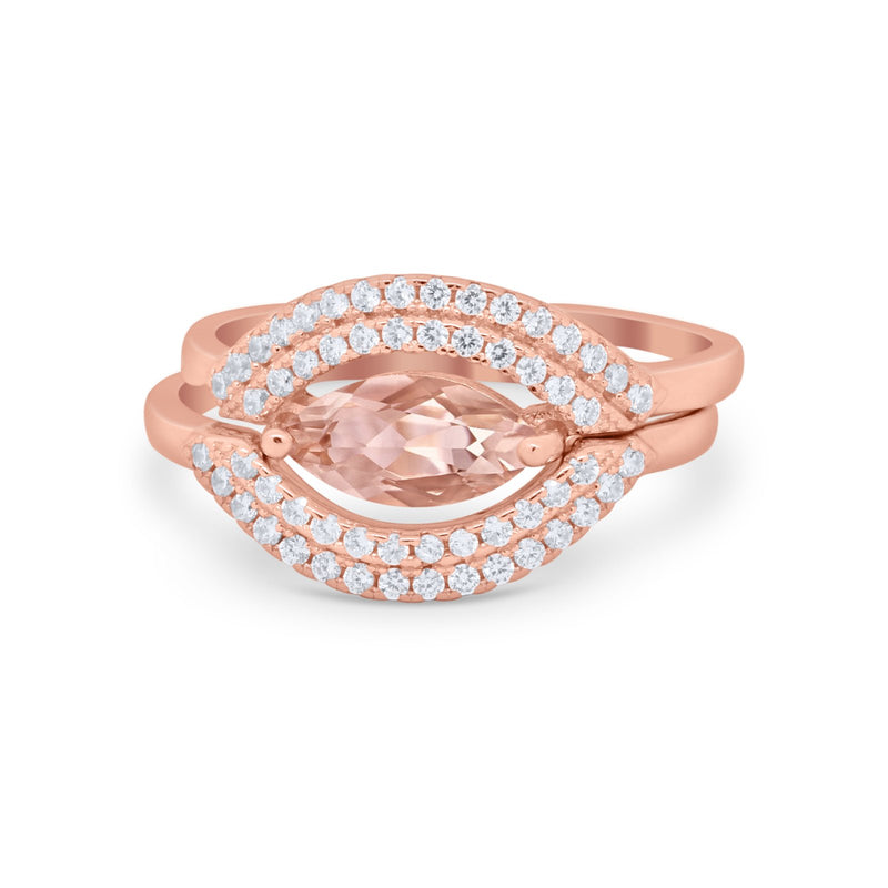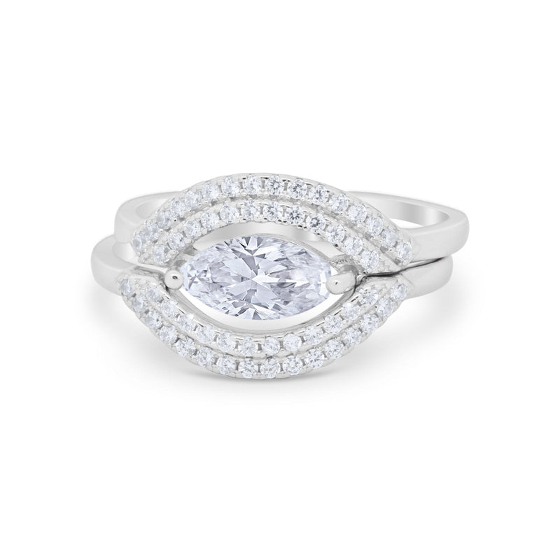 Two Piece Ring Band Round Simulated Cubic Zirconia 925 Sterling Silver