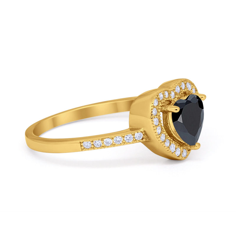Halo Dazzling Heart Promise Ring Round Simulated CZ 925 Sterling Silver