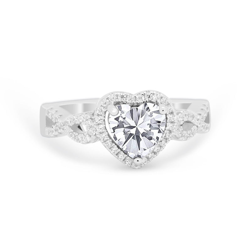Heart Promise Ring Round Simulated Cubic Zirconia 925 Sterling Silver