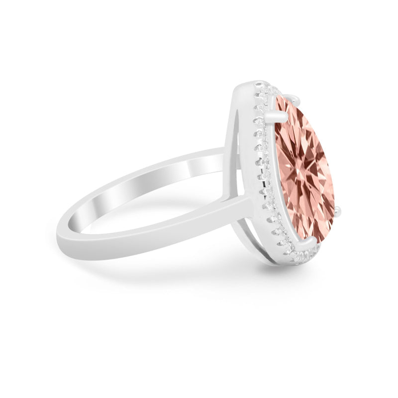 Halo Teardrop Wedding Ring Pear Simulated Cubic Zirconia 925 Sterling Silver