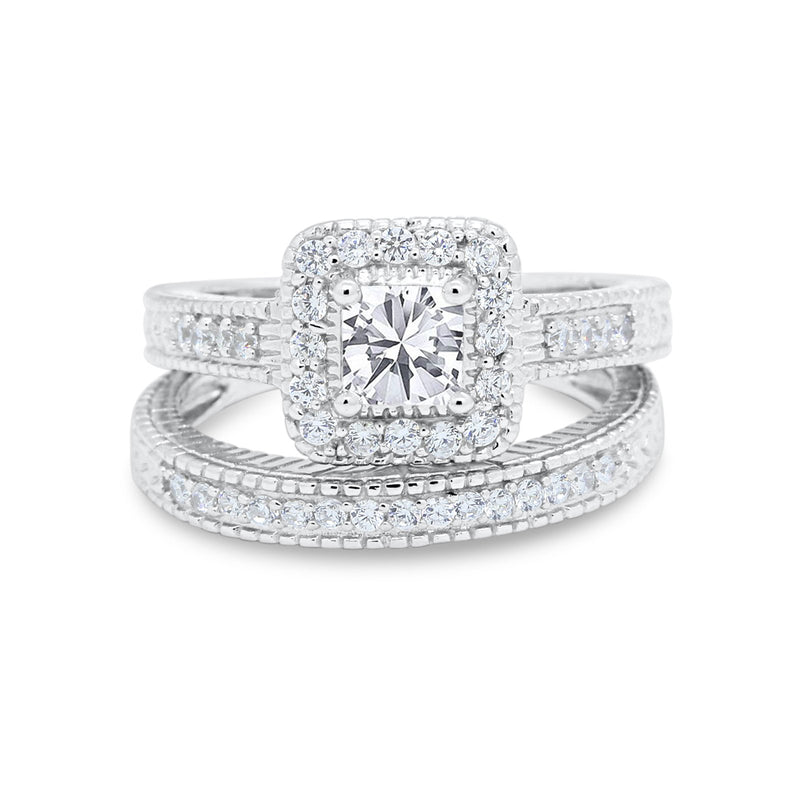 Two Piece Vintage Style Wedding Ring 925 Sterling Silver Simulated Cubic Zirconia