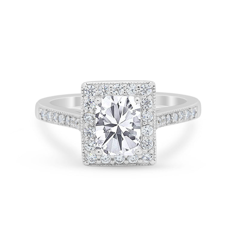 Art Deco Cushion Cut Engagement Ring Simulated Cubic Zirconia 925 Sterling Silver