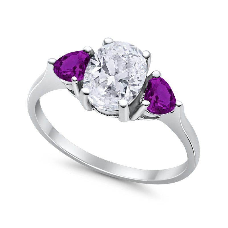 Fashion Promise Ring 3-Stone Simulated Amethyst Cubic Zirconia 925 Sterling Silver
