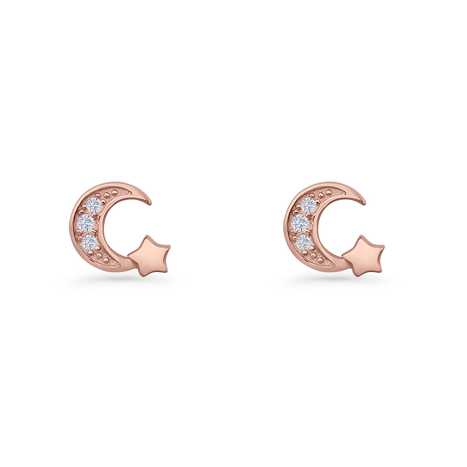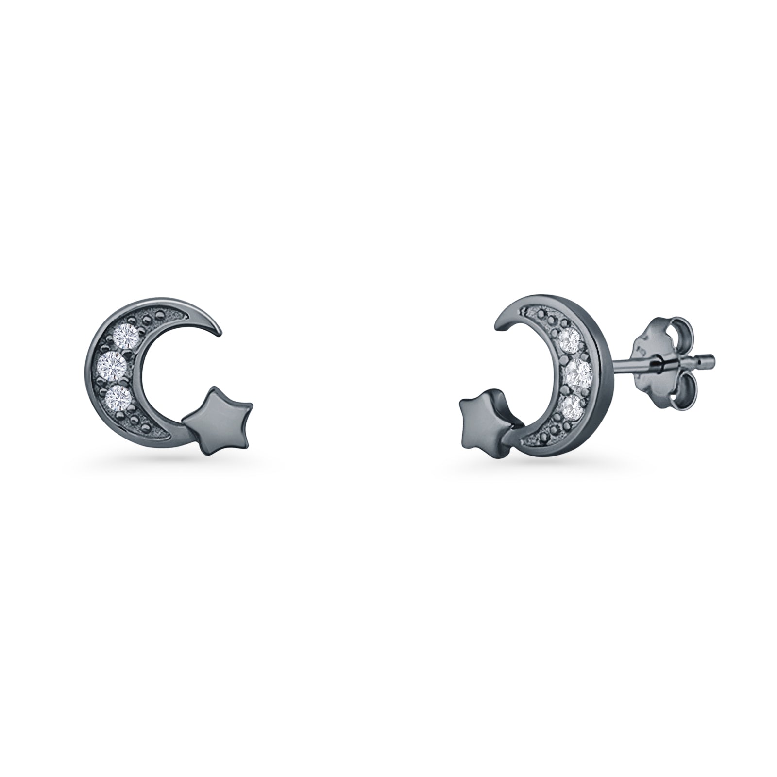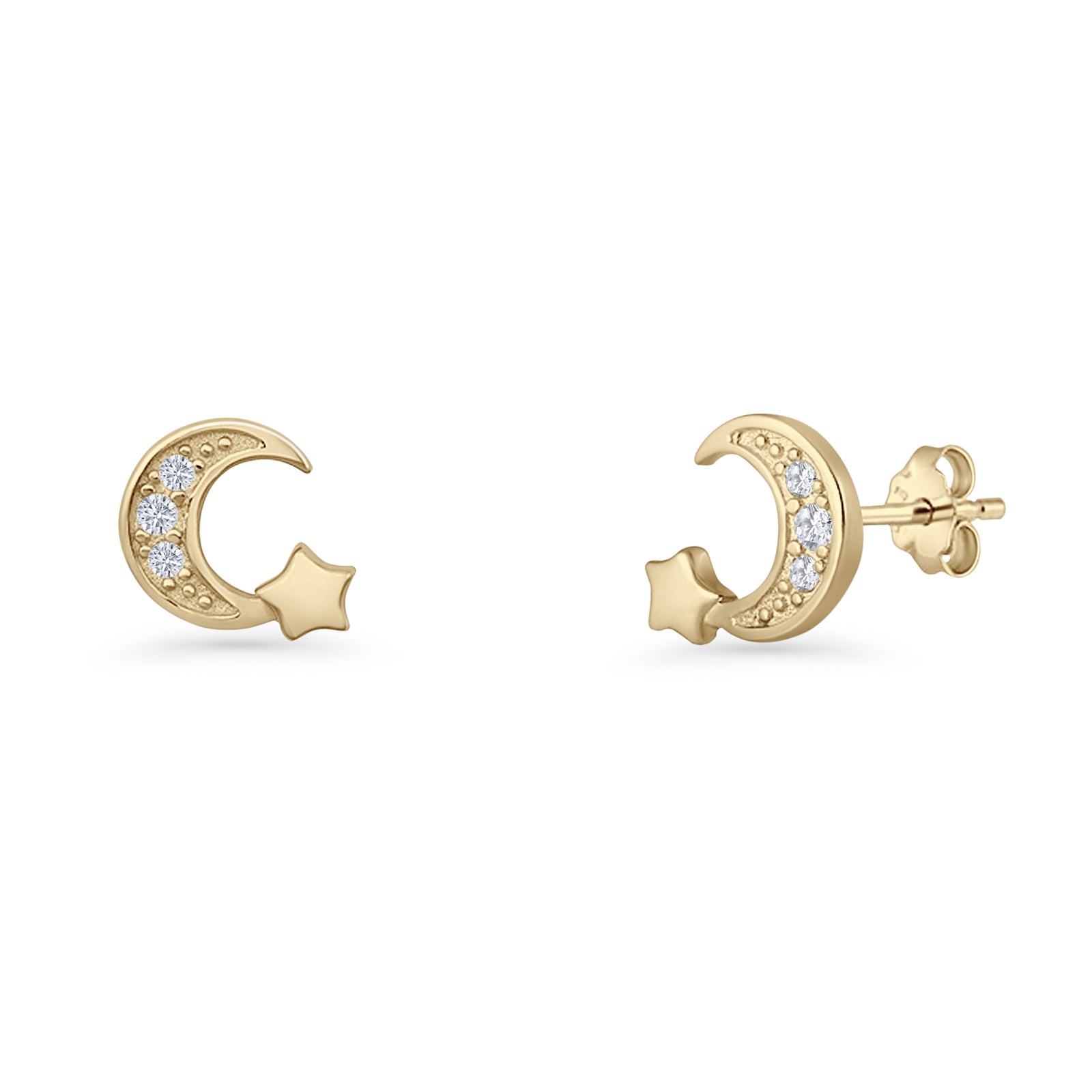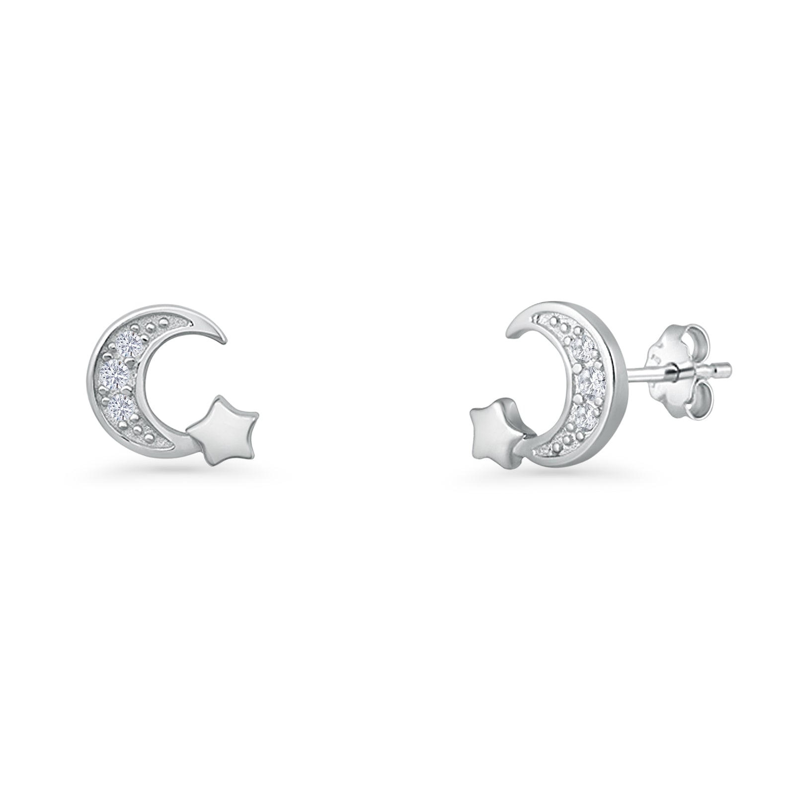 Design: Crescent Moon & Star CZ Stud Earrings.