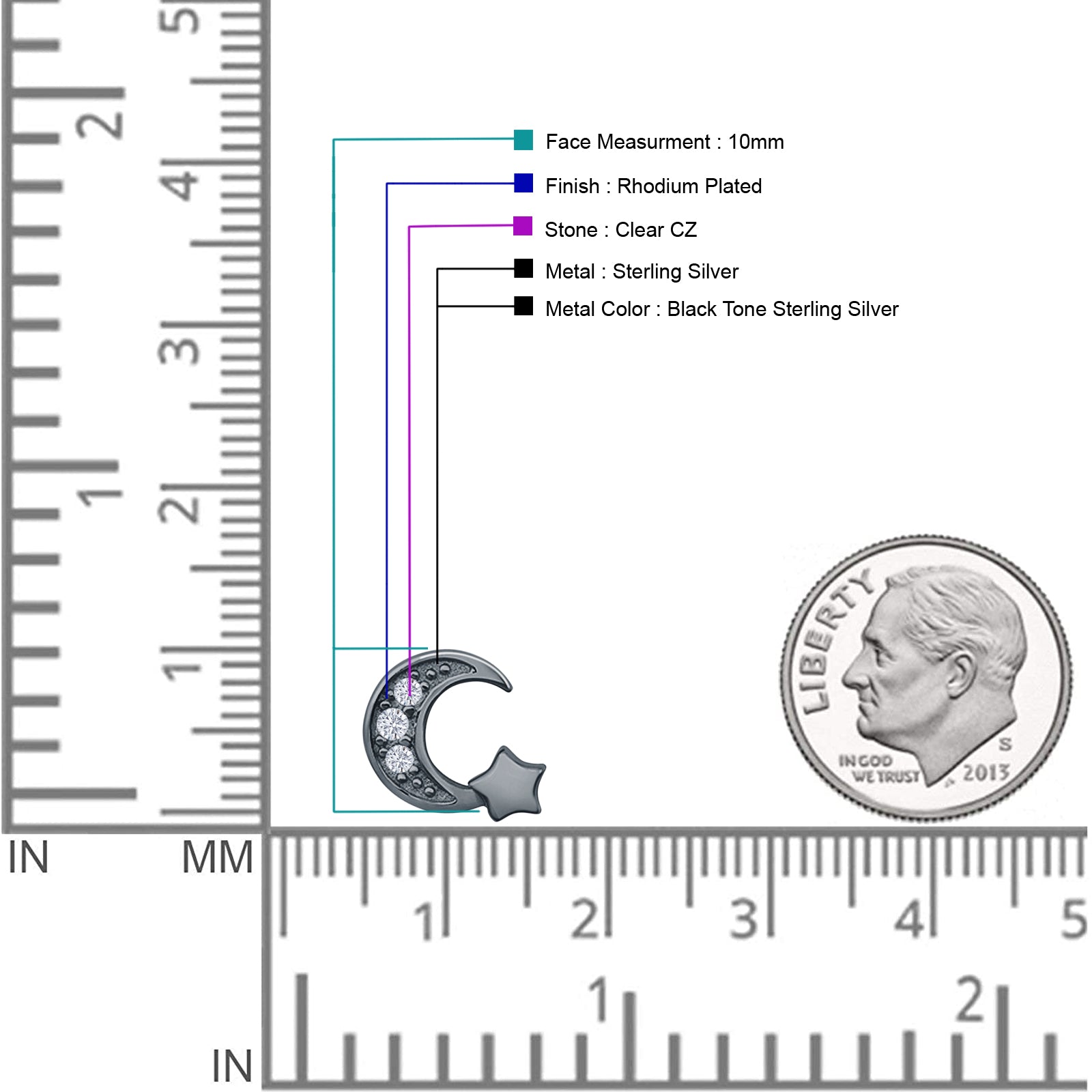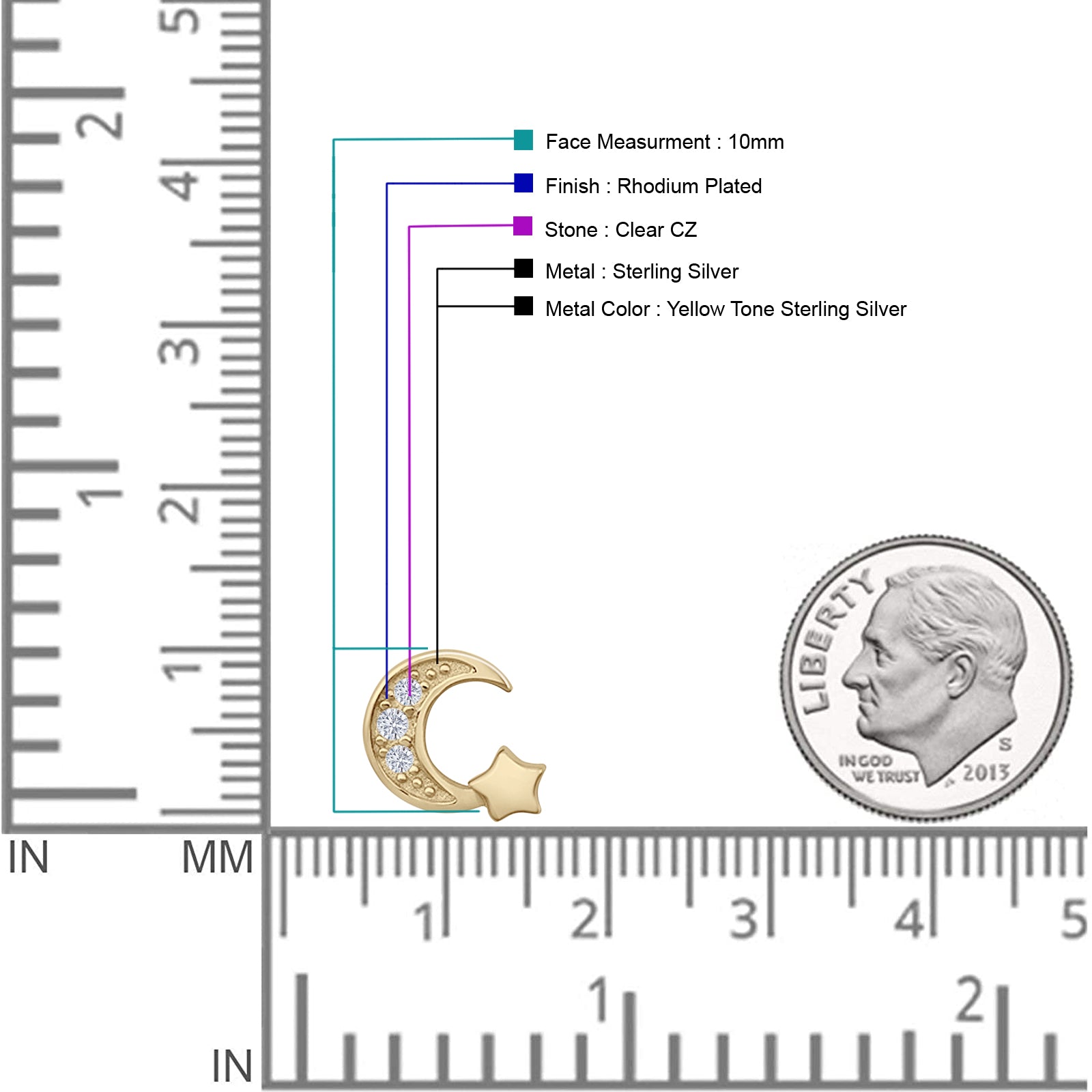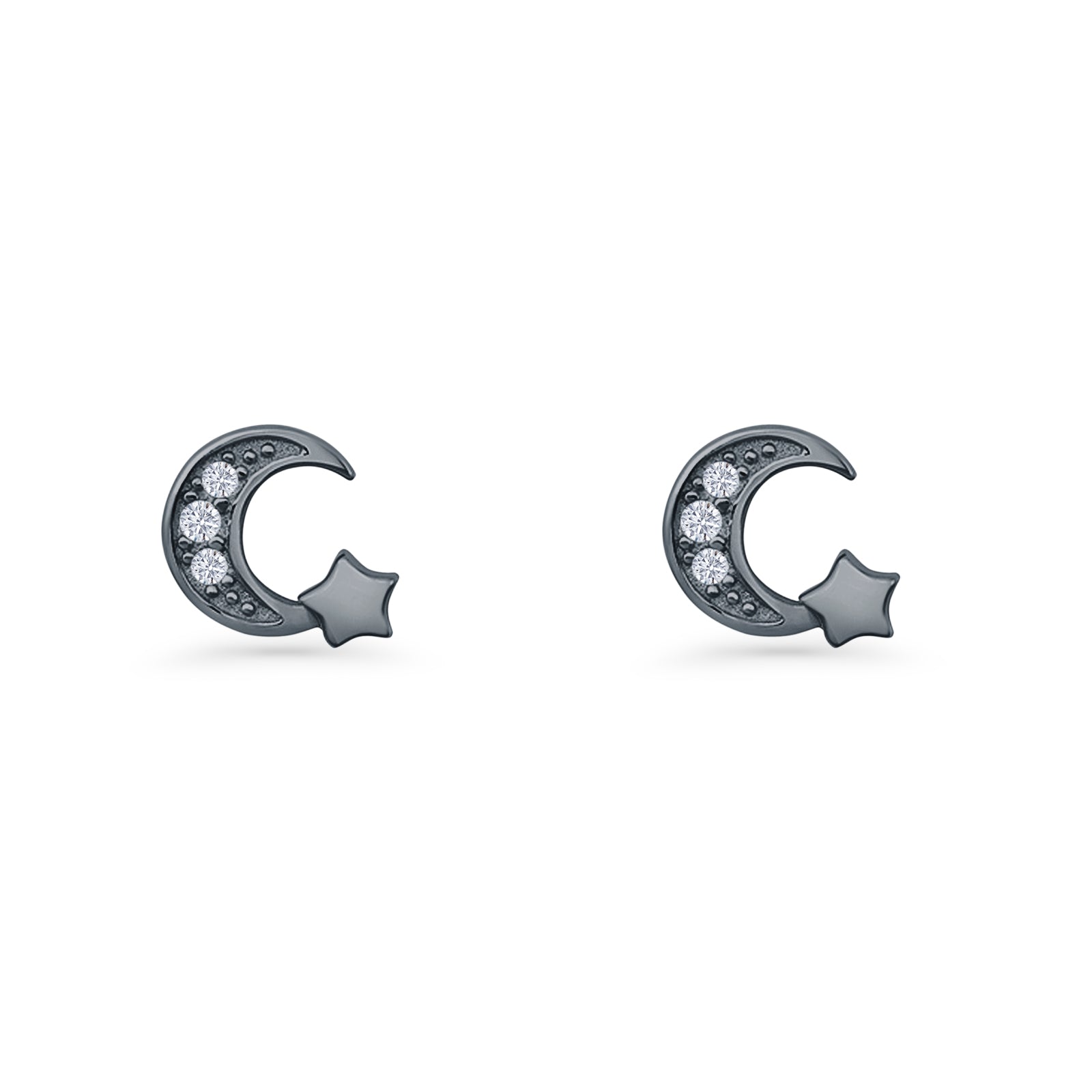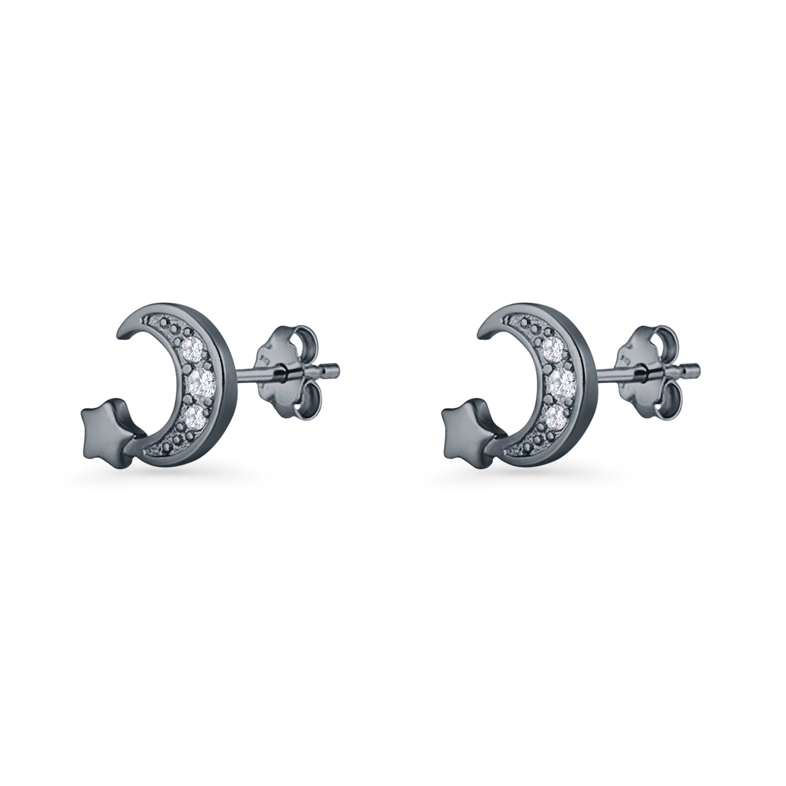 Design: Crescent Moon & Star CZ Stud Earrings.