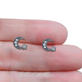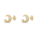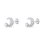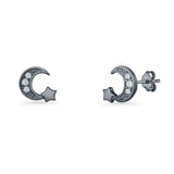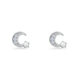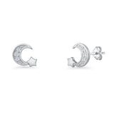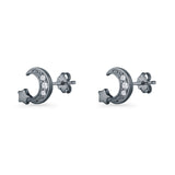 Minimalist 10mm Crescent Moon & Star Stud Earrings Cubic Zirconia 925 Sterling Silver