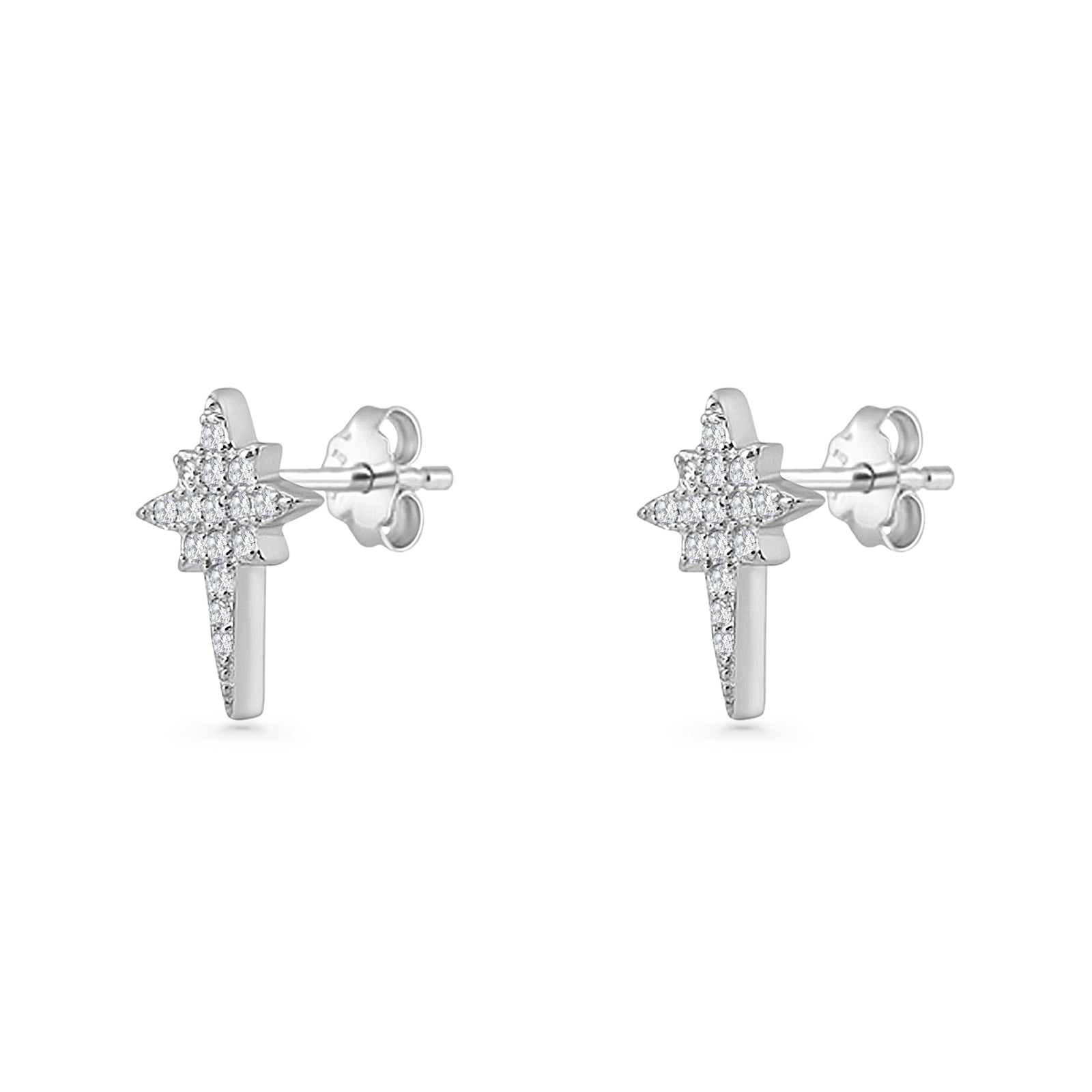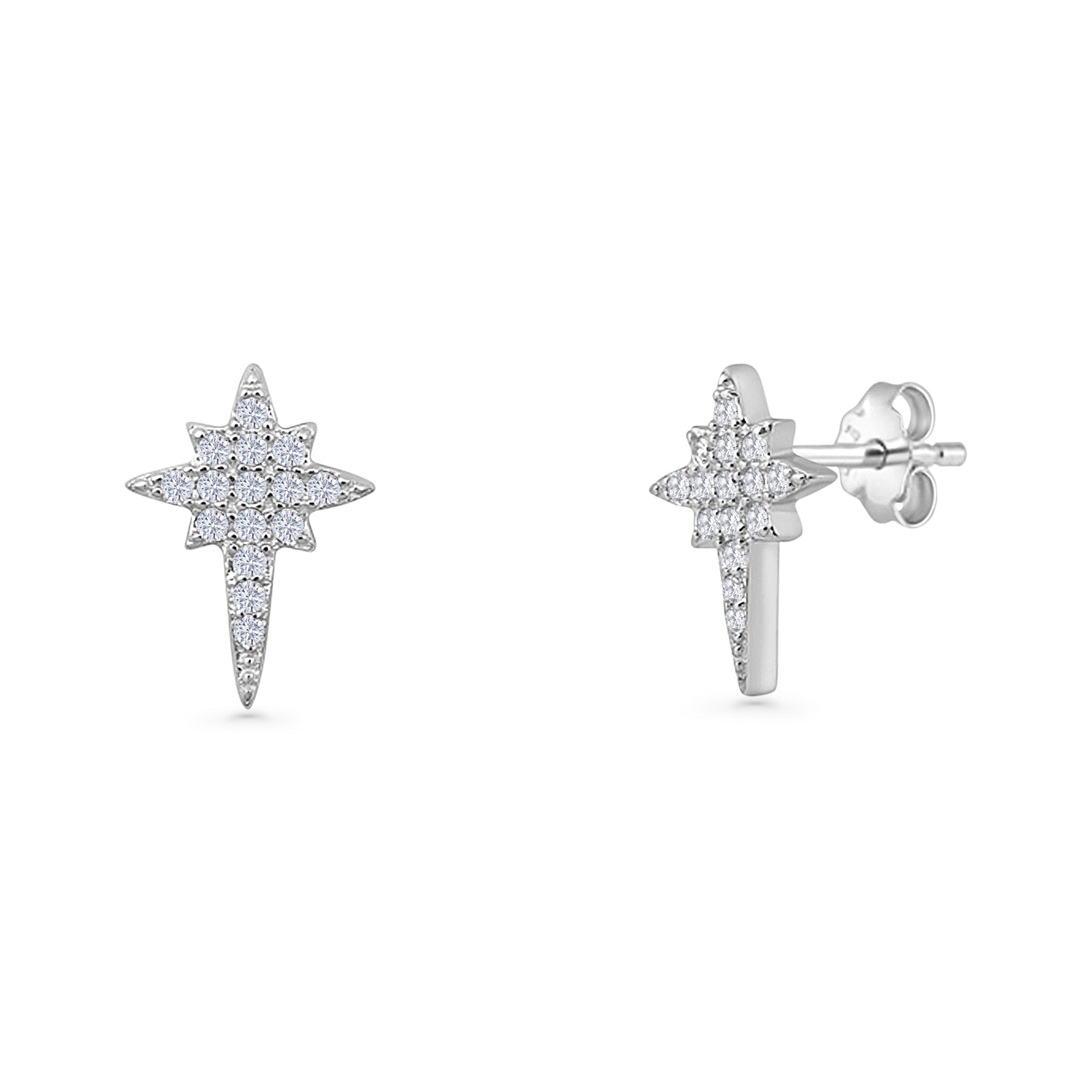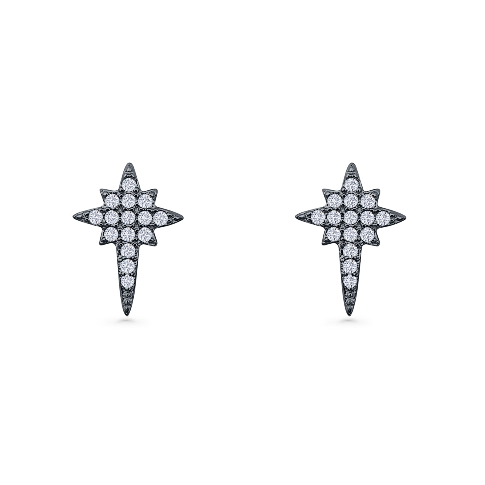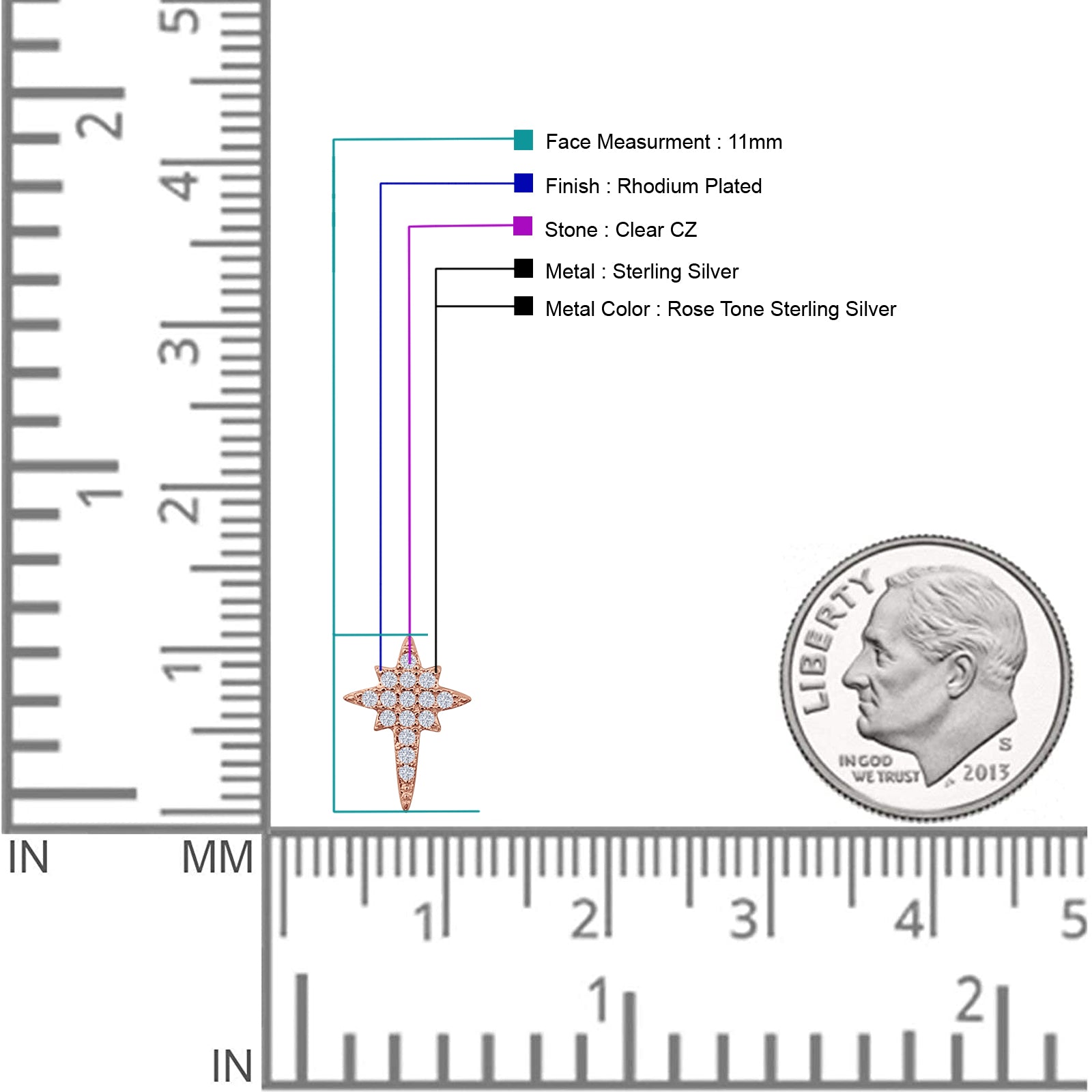 Minimalist 11mm Star Stud Earrings Cluster Cubic Zirconia 925 Sterling Silver
