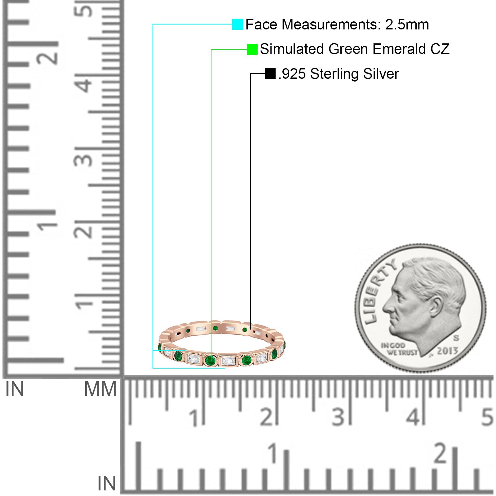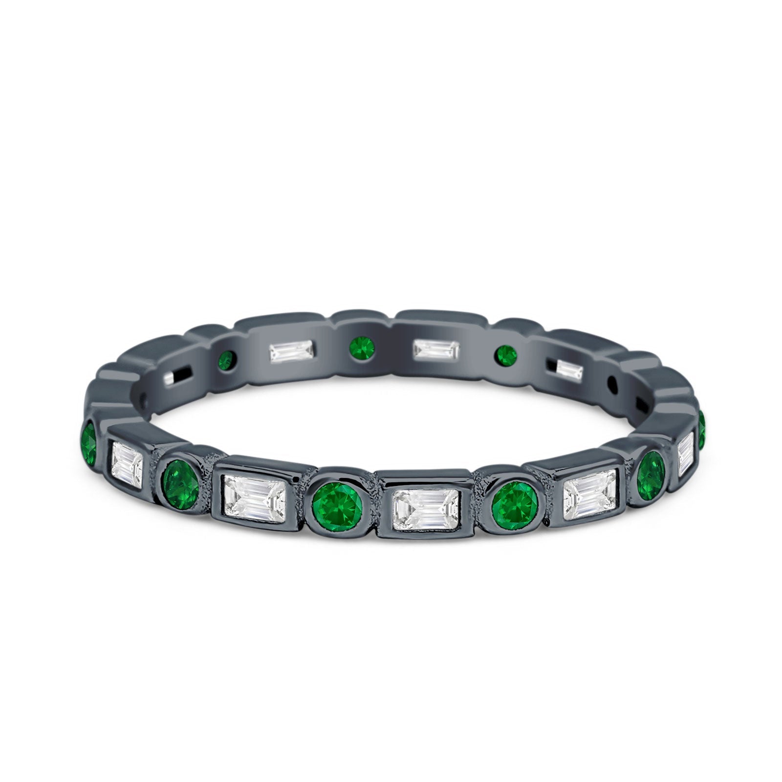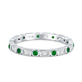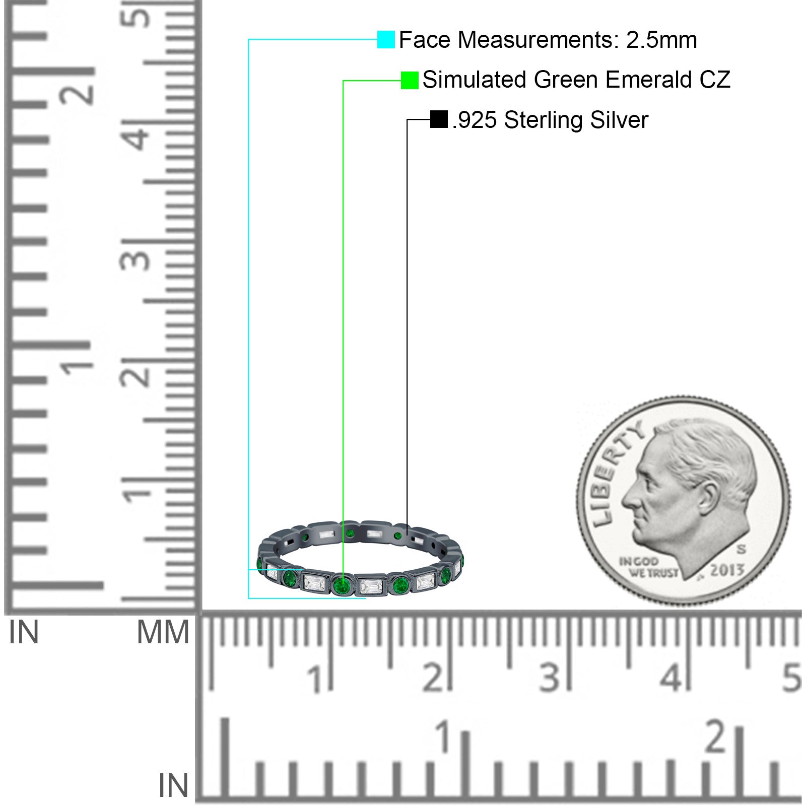 Minimalist 2.5mm Full Eternity Band CZ & Green Emerald CZ 925 Sterling Silver