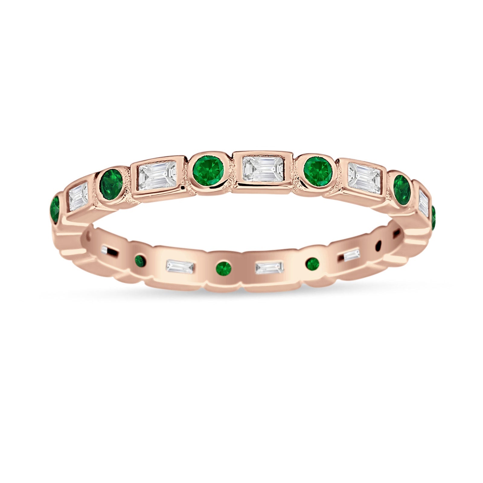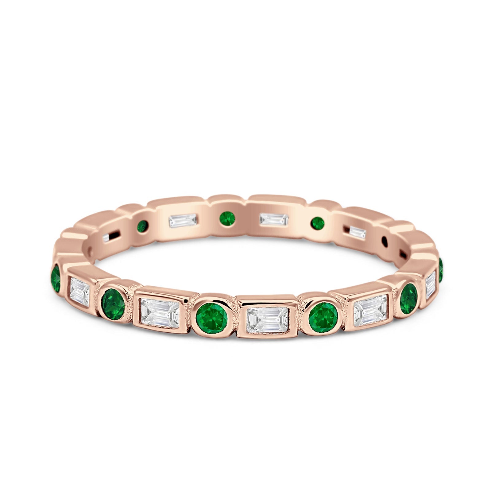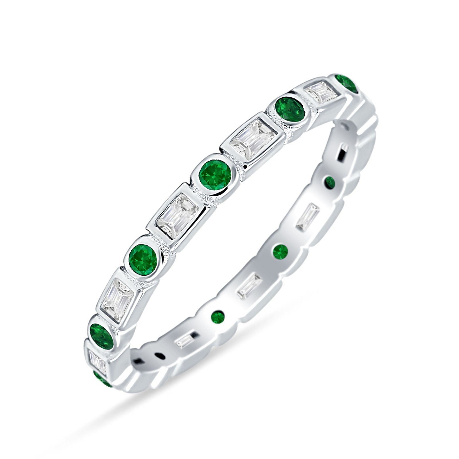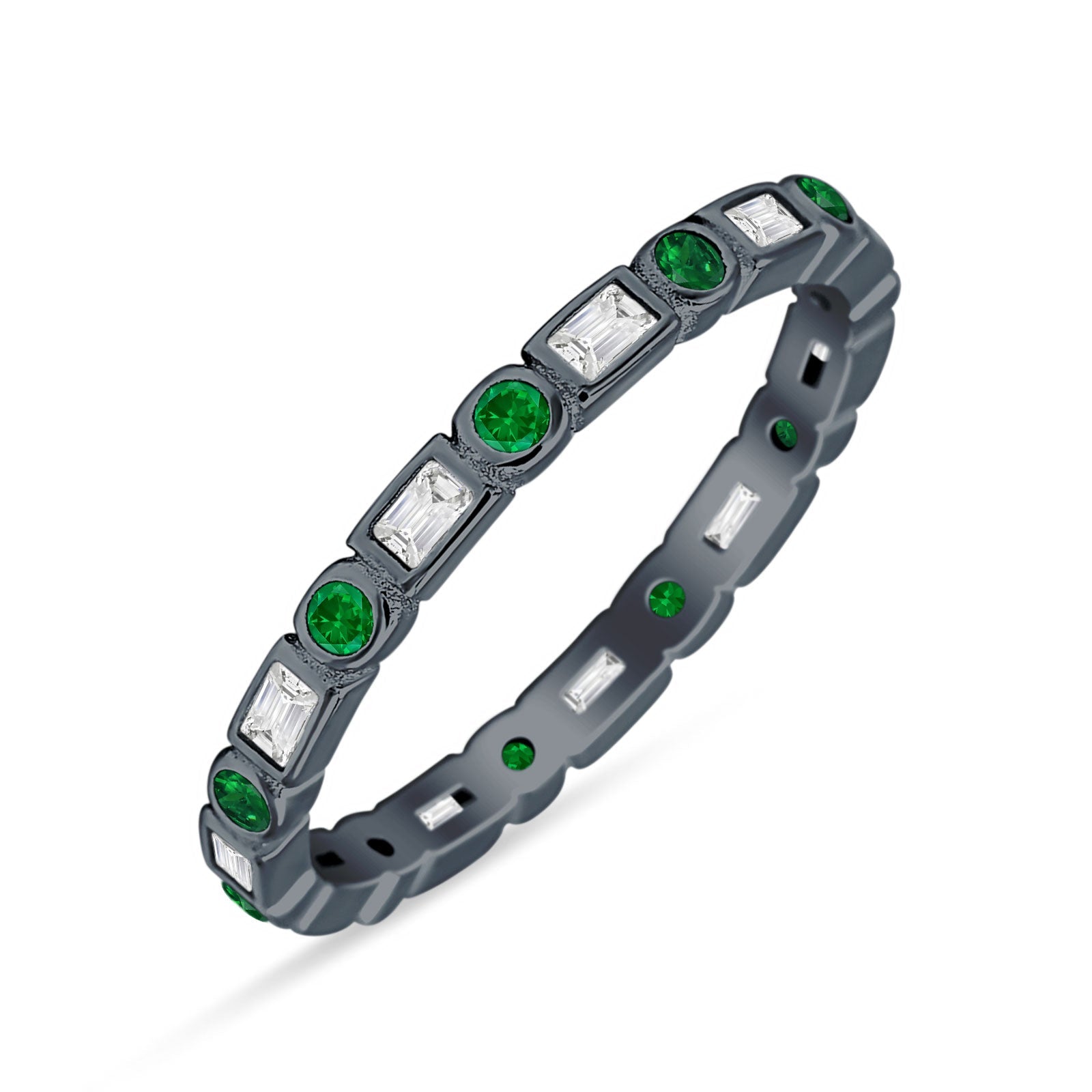 Minimalist 2.5mm Full Eternity Band CZ & Green Emerald CZ 925 Sterling Silver