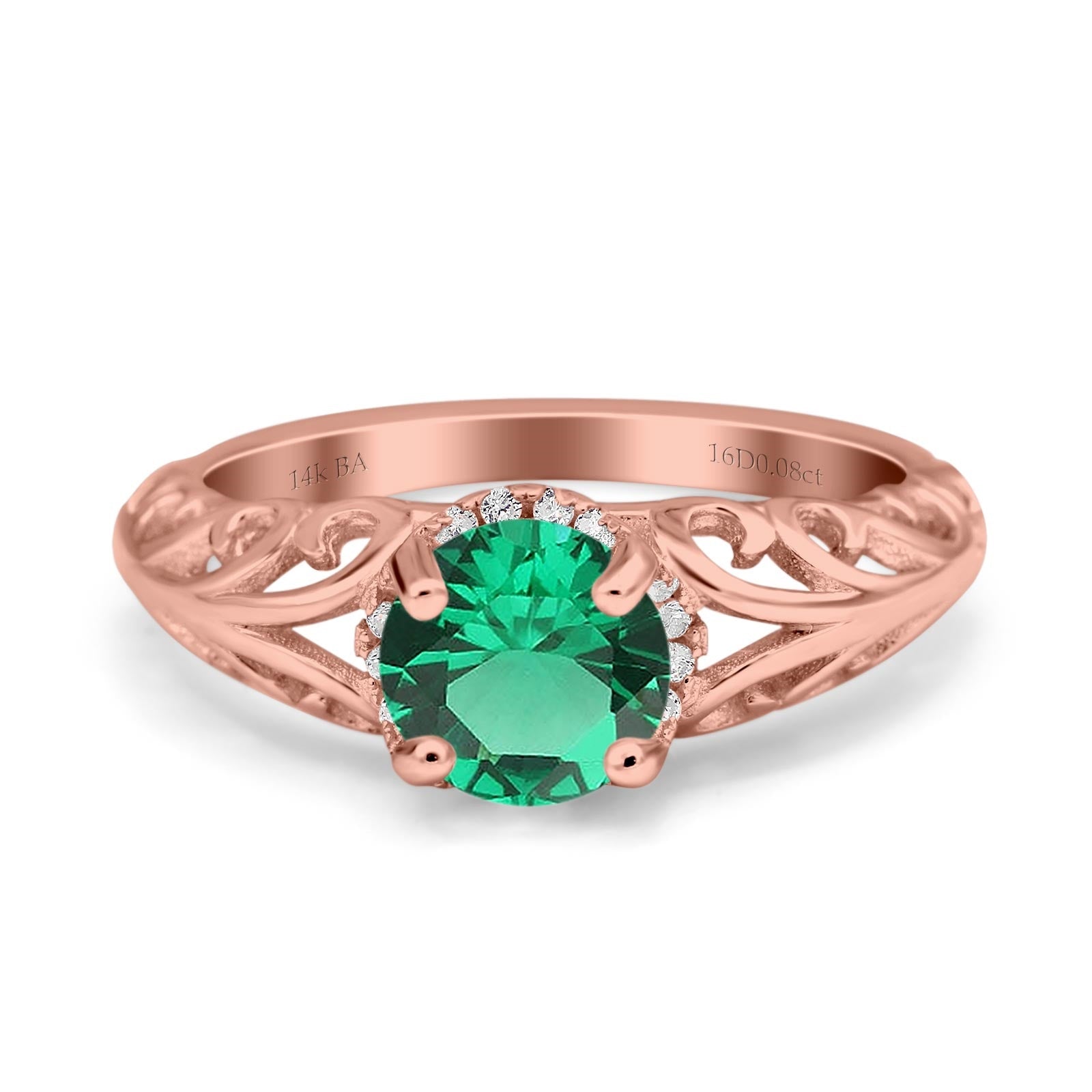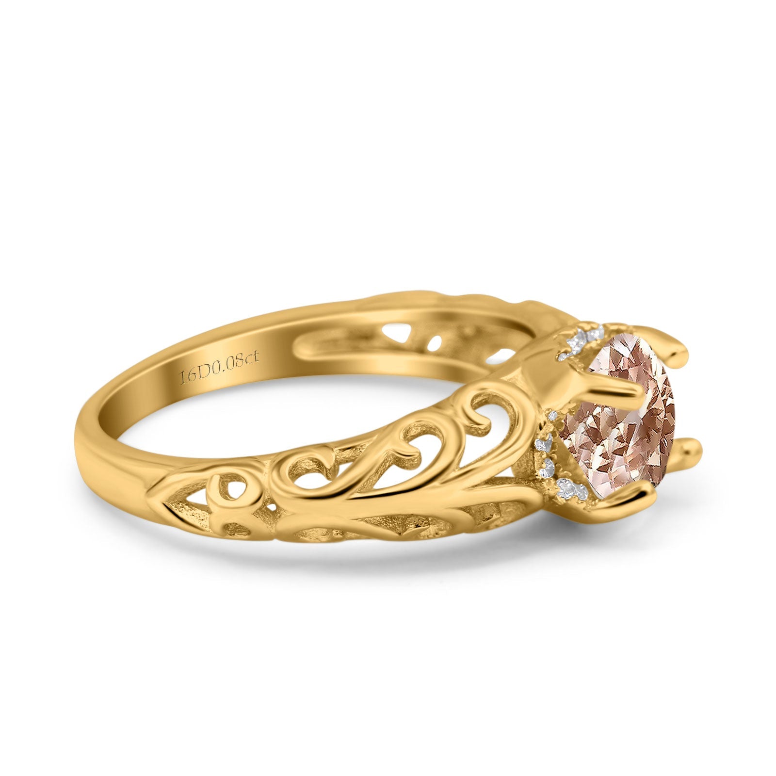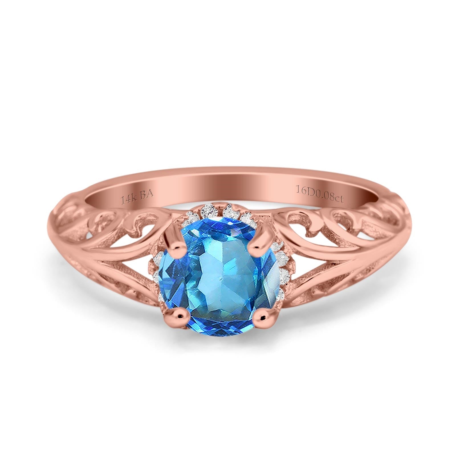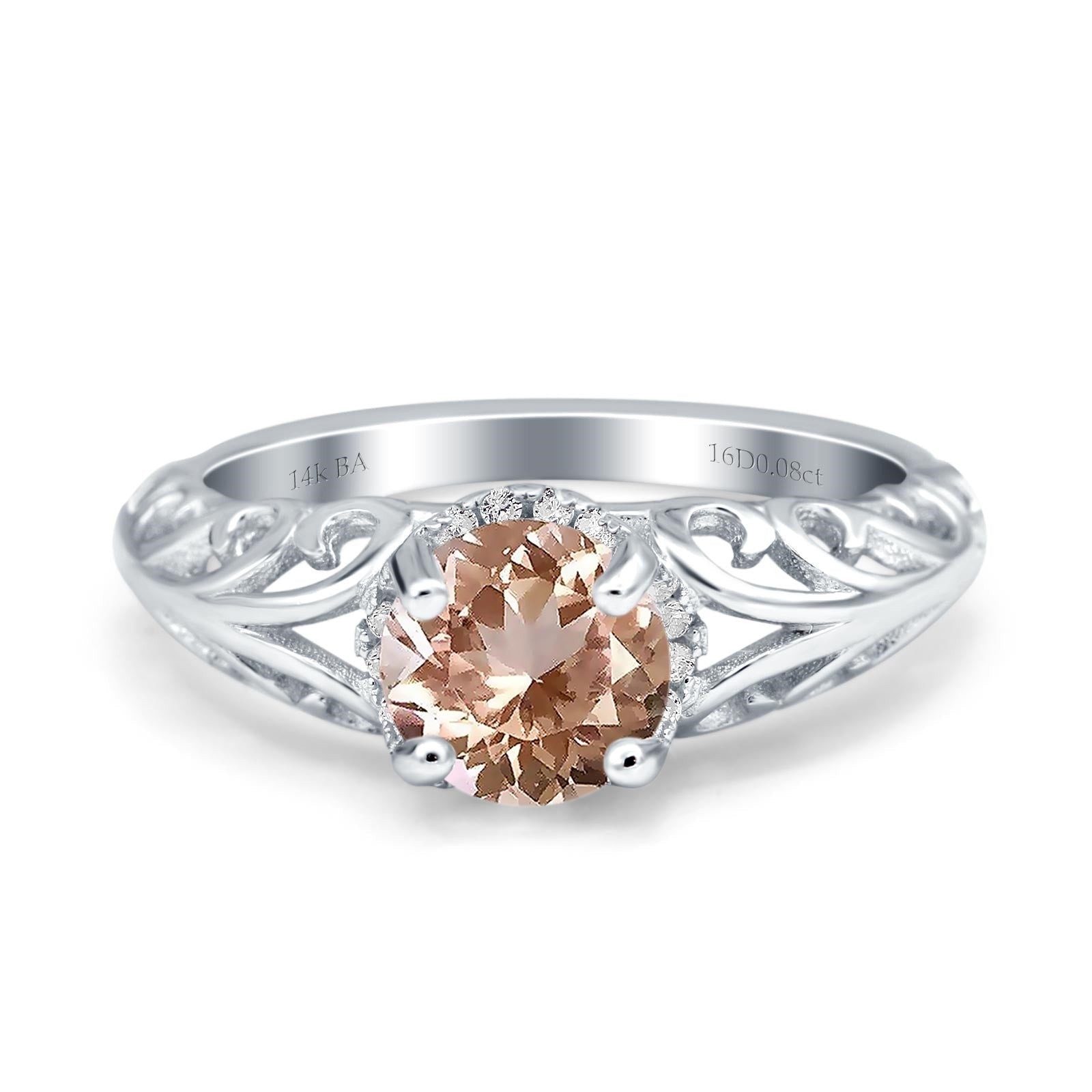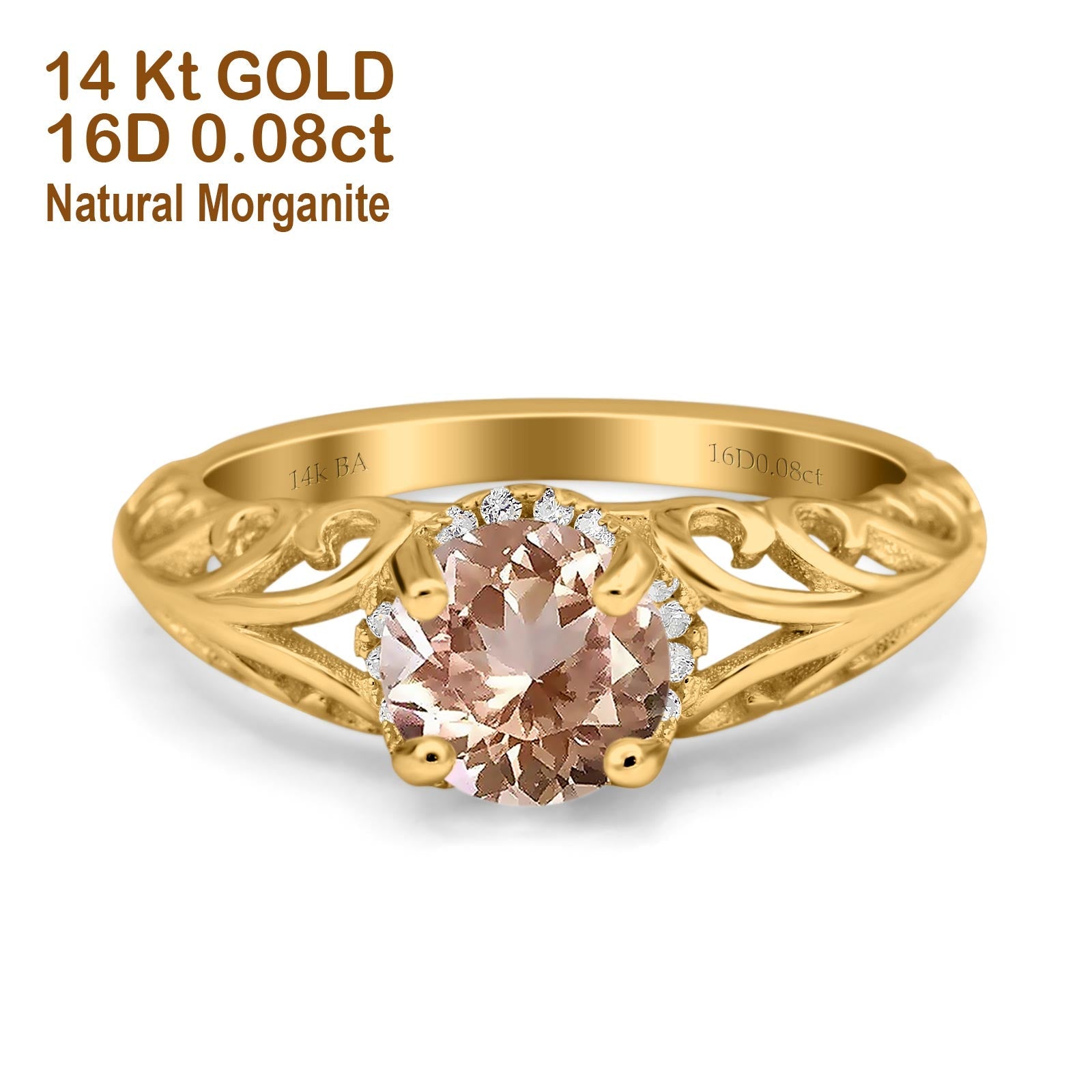 14K Gold 1.11ct Round Art Deco Filigree 6.5mm G SI Diamond Engagement Wedding Ring