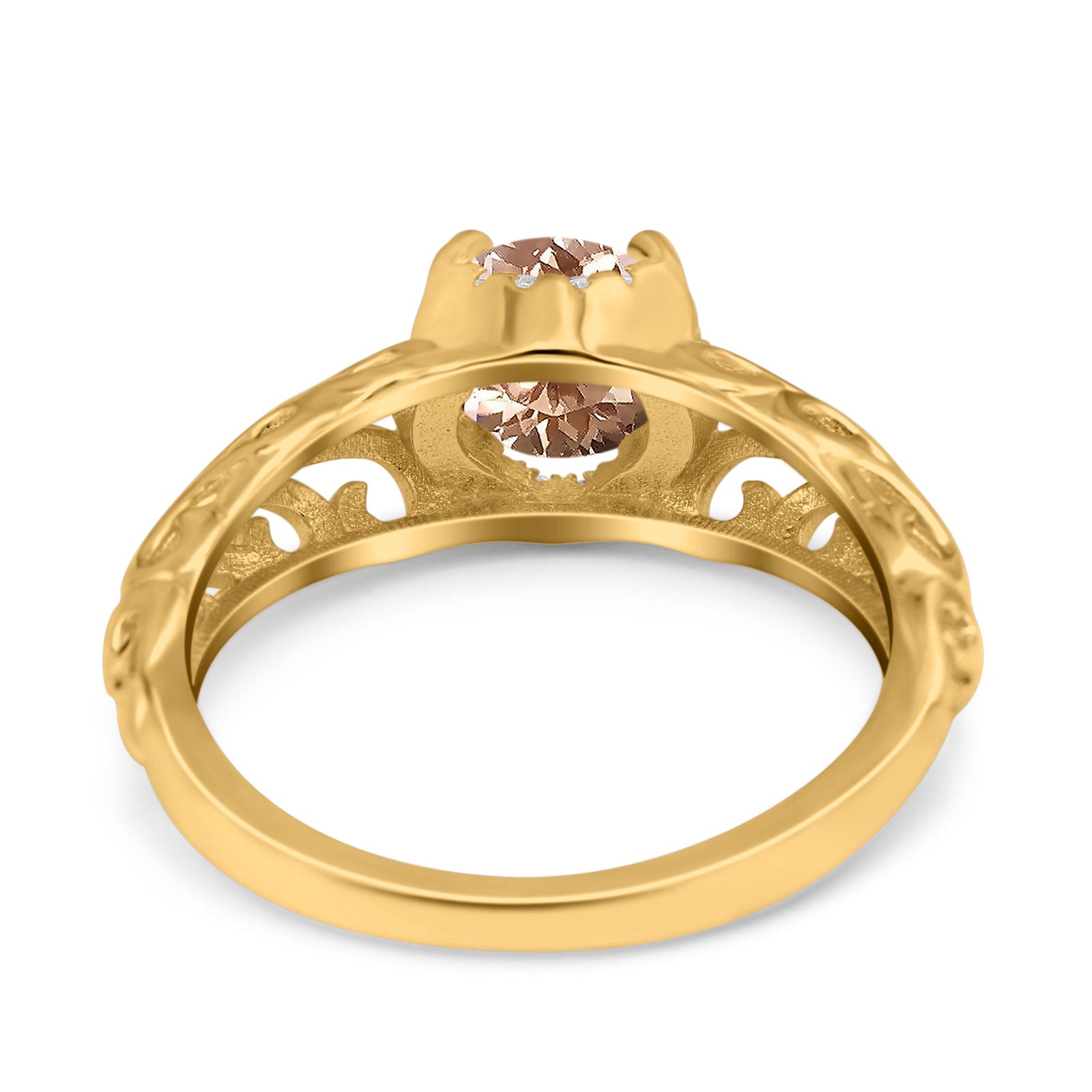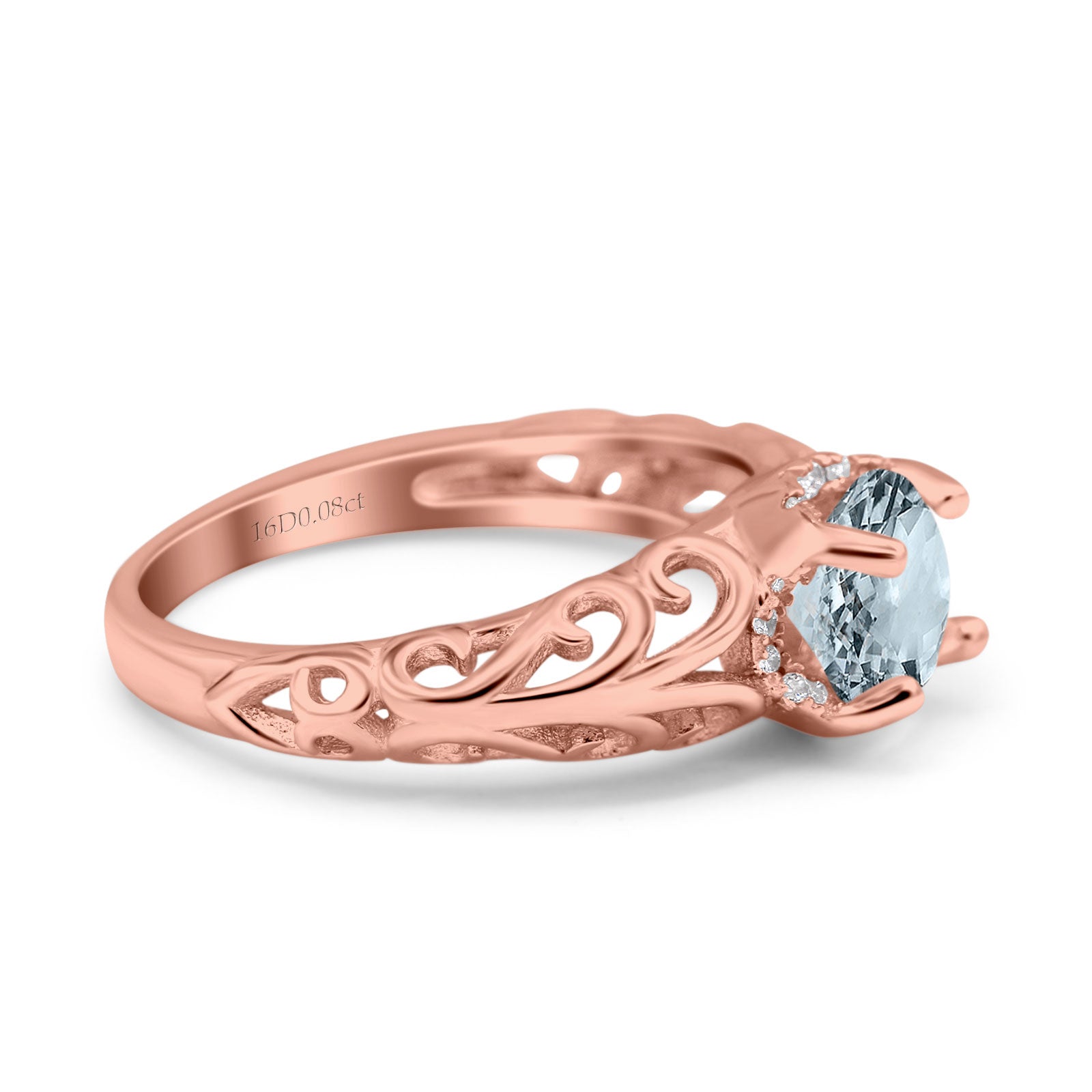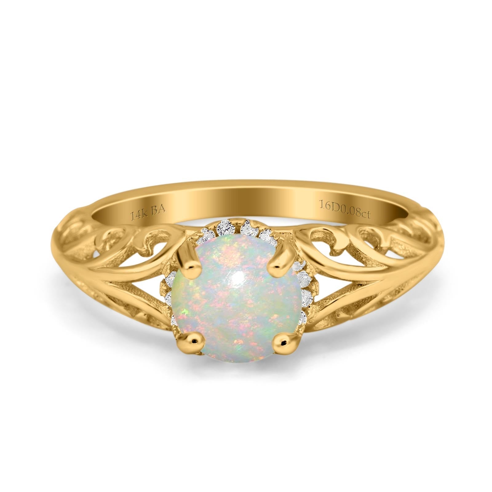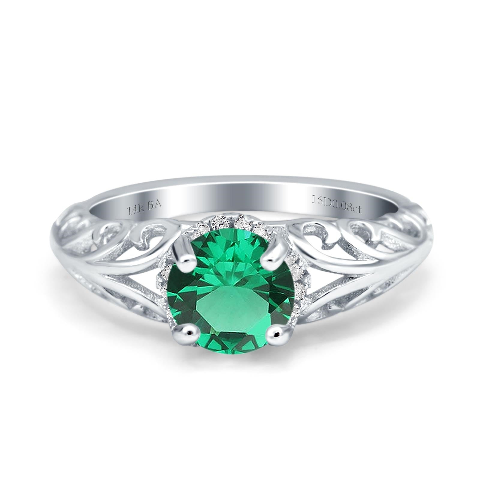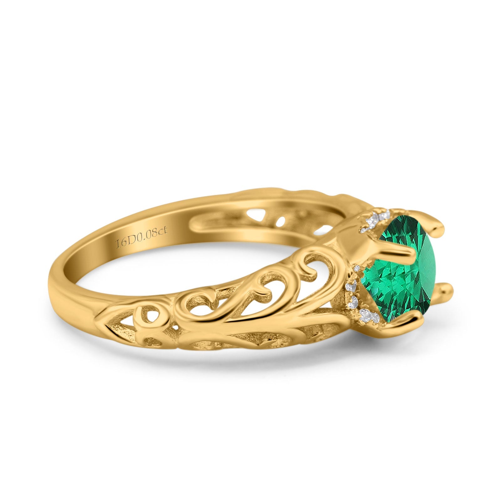 14K Gold 1.11ct Round Art Deco Filigree 6.5mm G SI Diamond Engagement Wedding Ring
