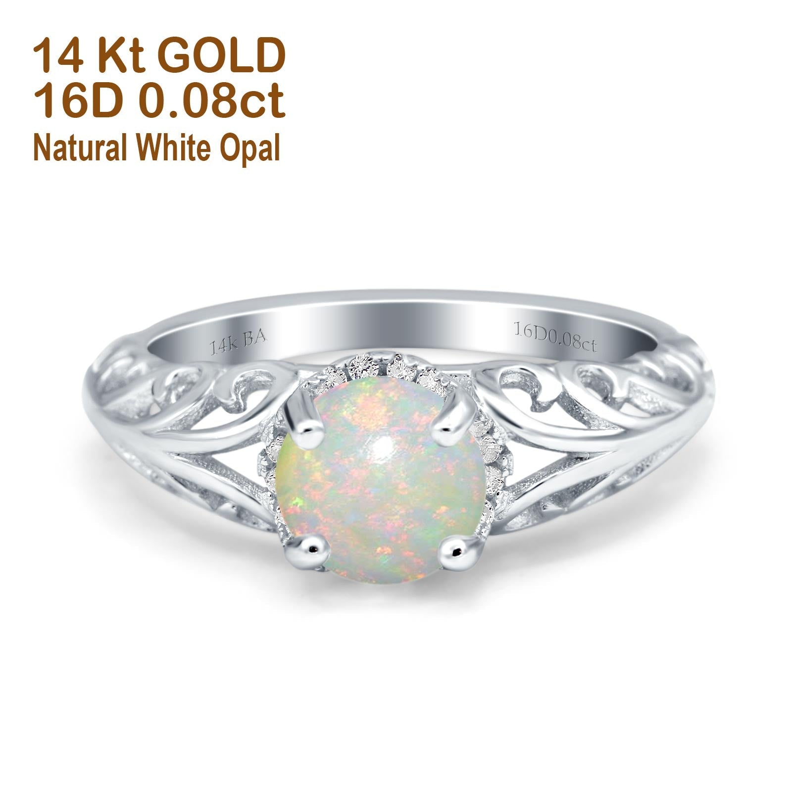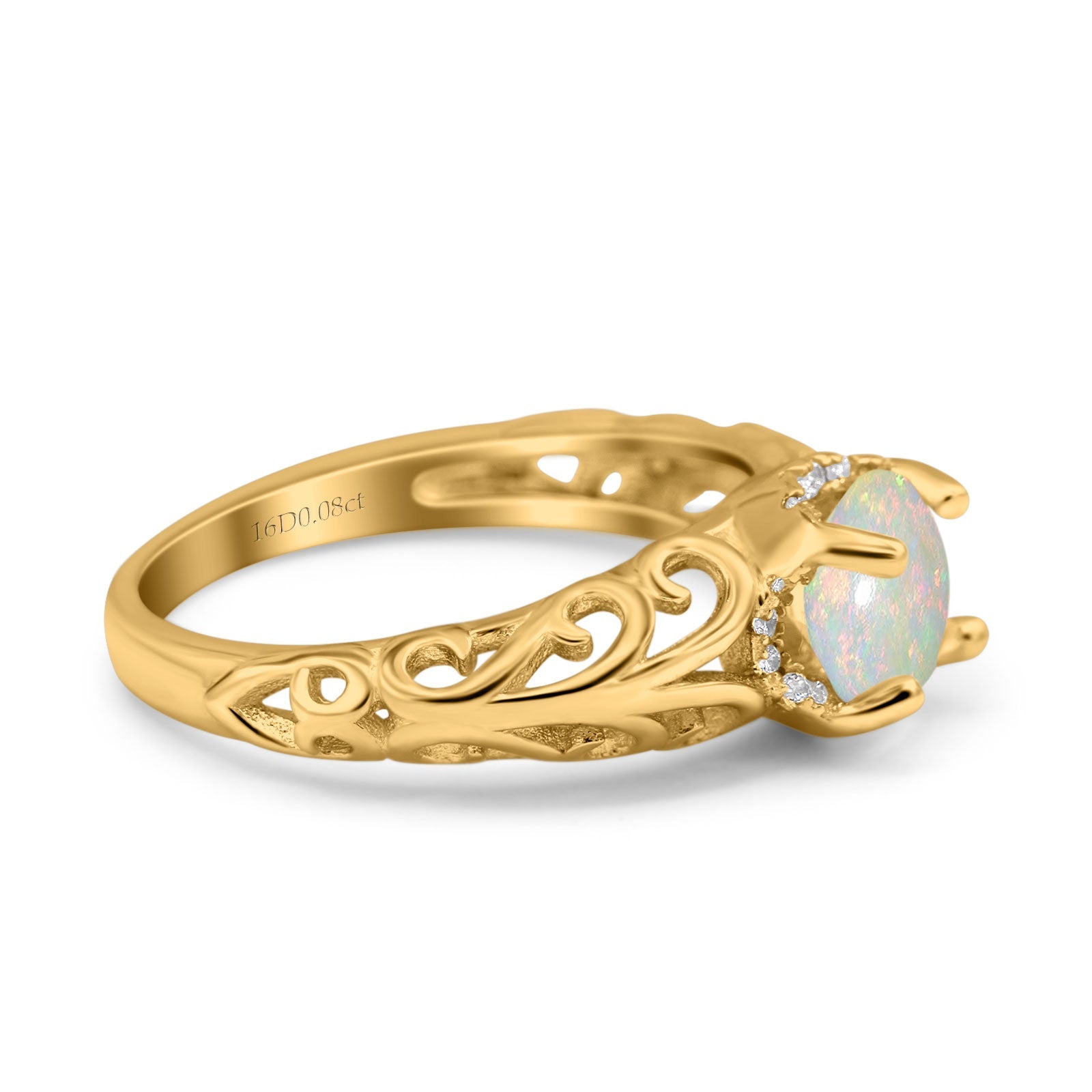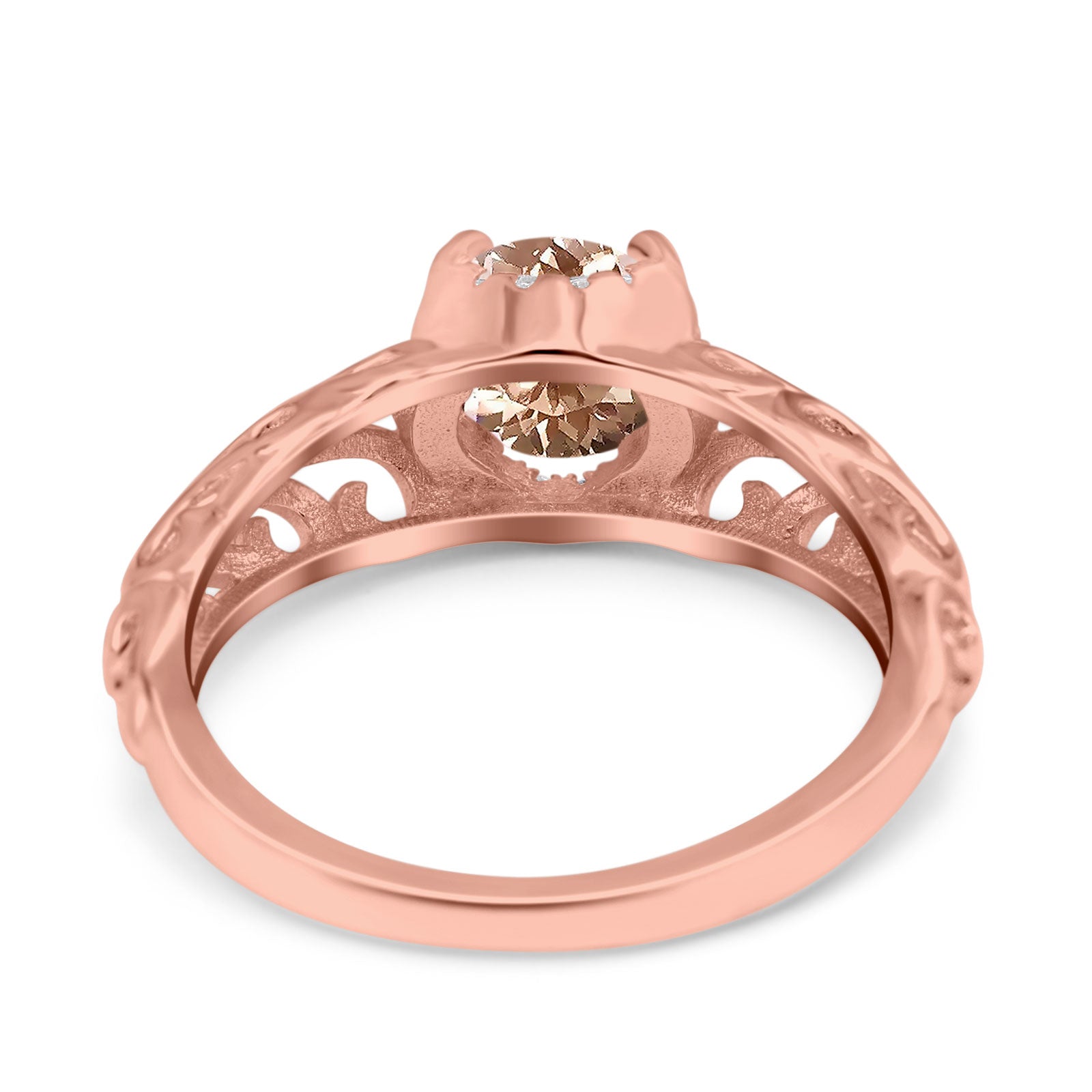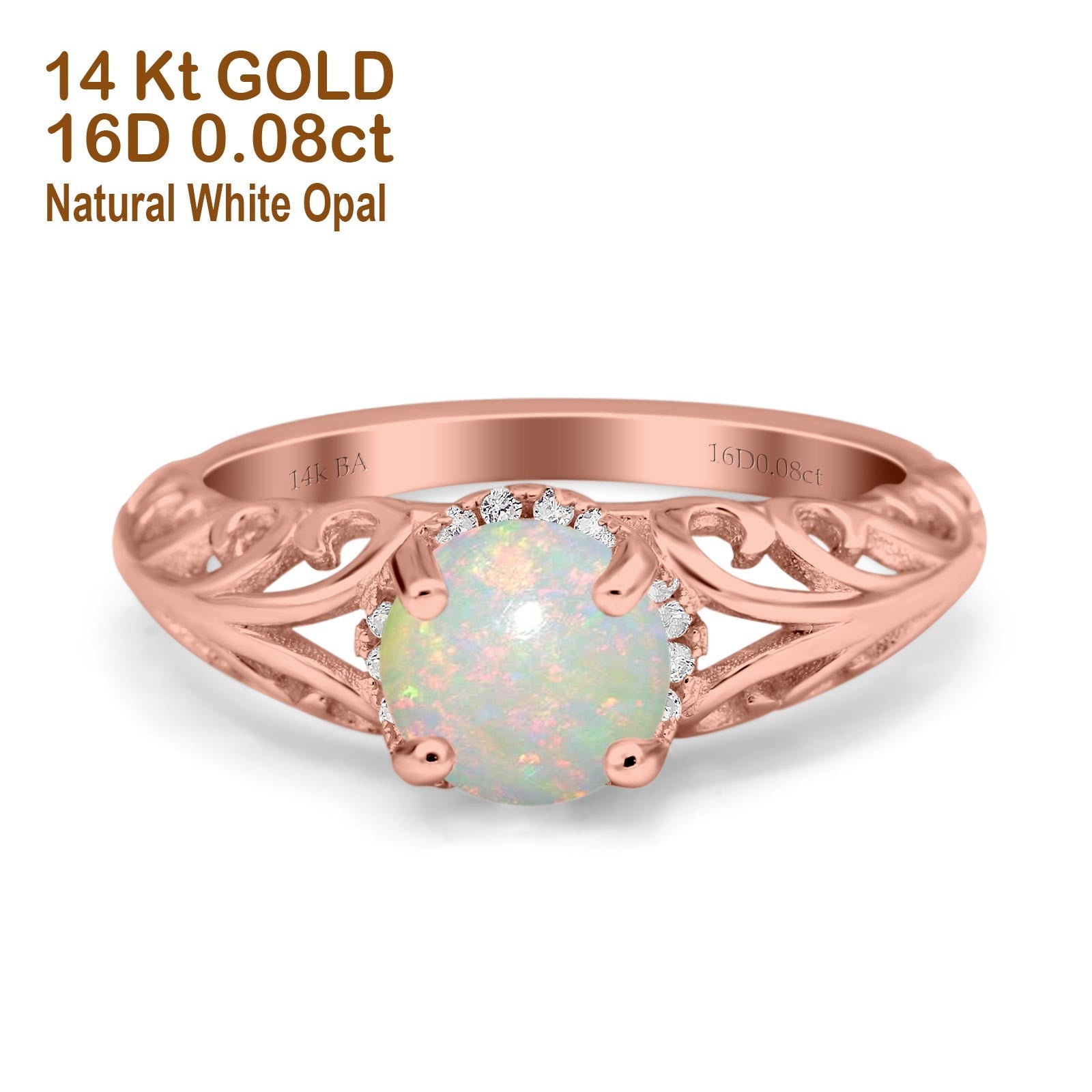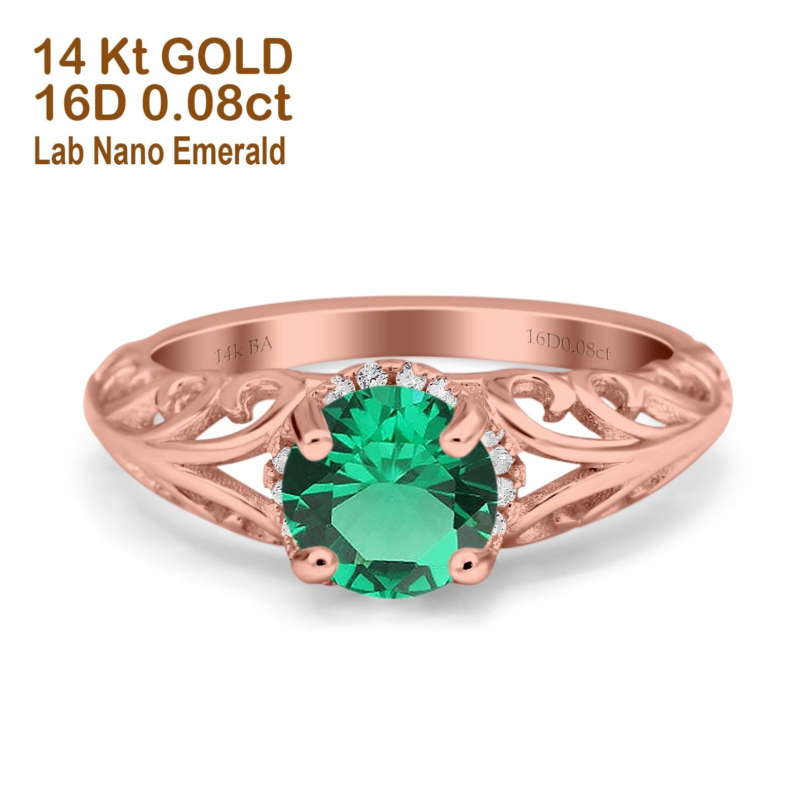 14K Gold 1.11ct Round Art Deco Filigree 6.5mm G SI Diamond Engagement Wedding Ring