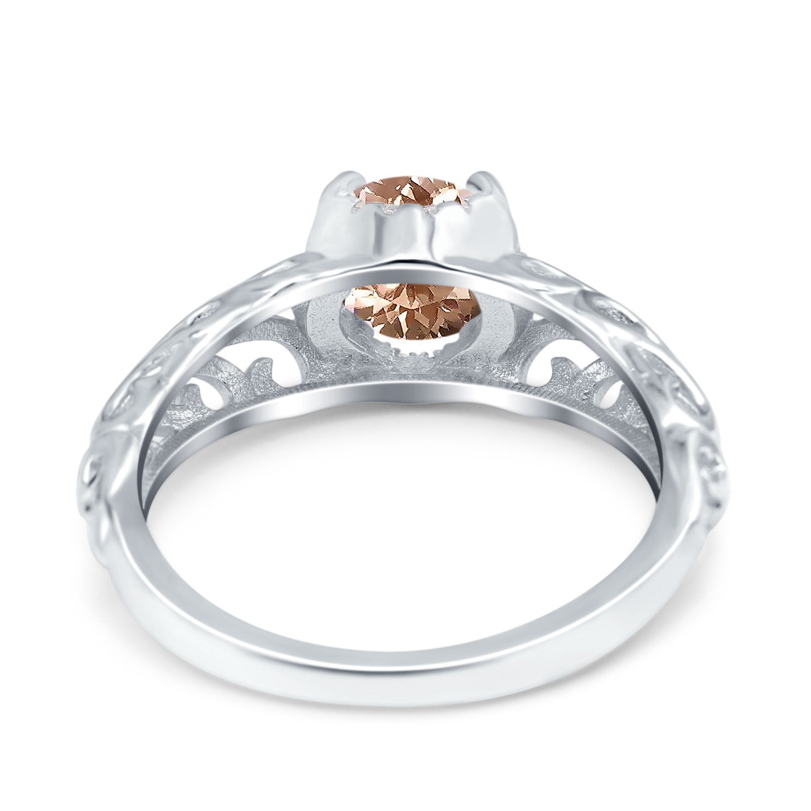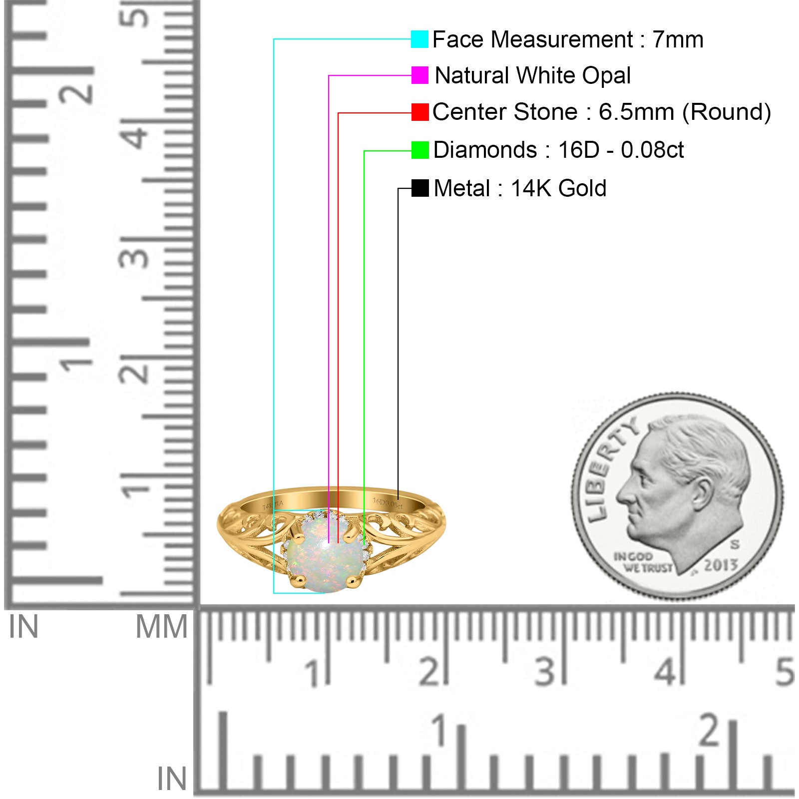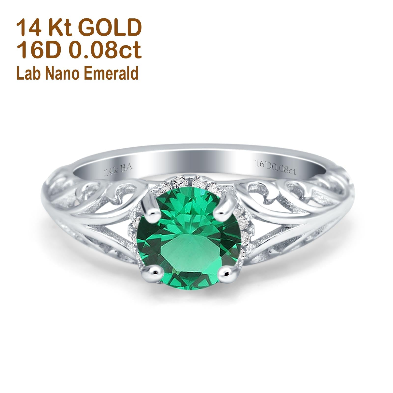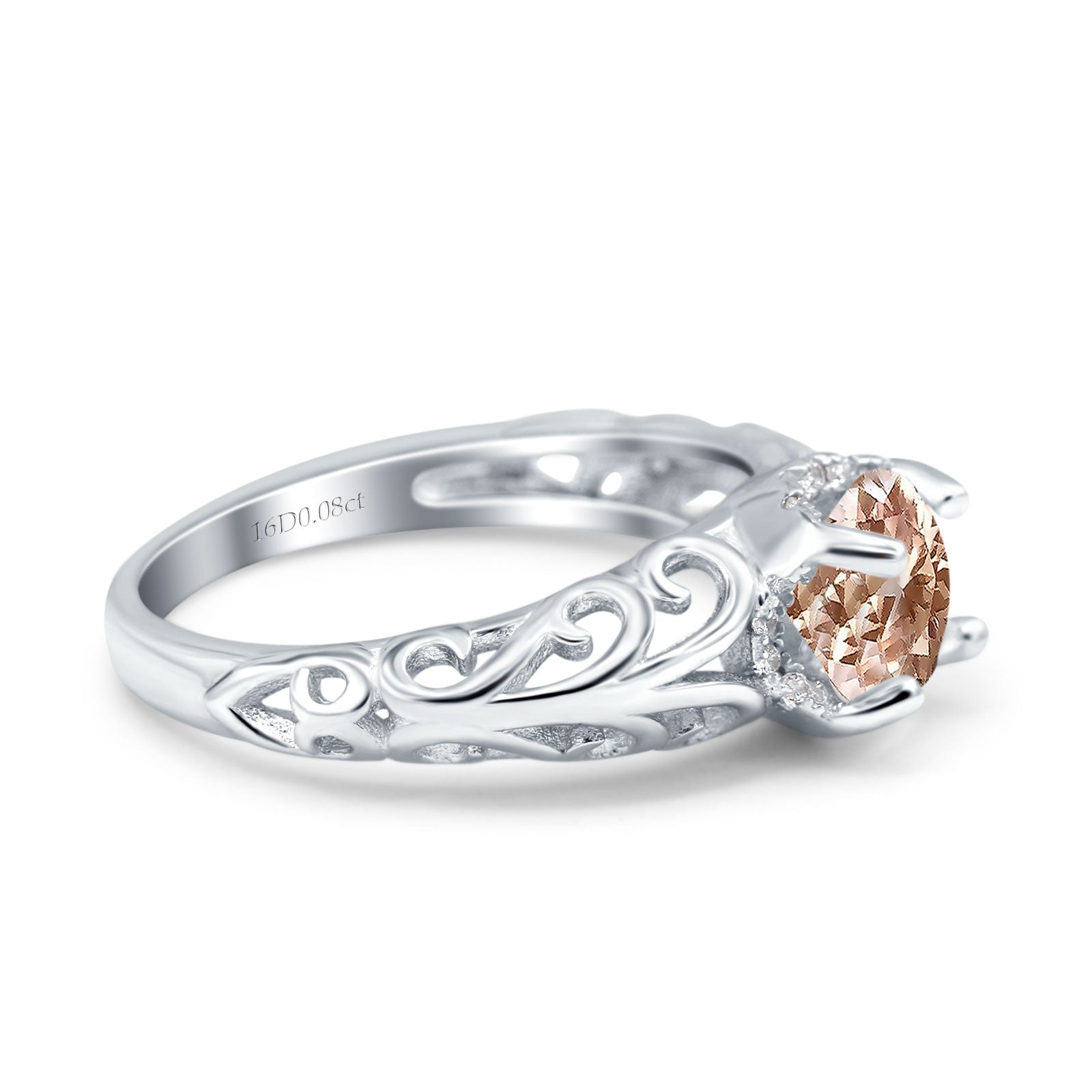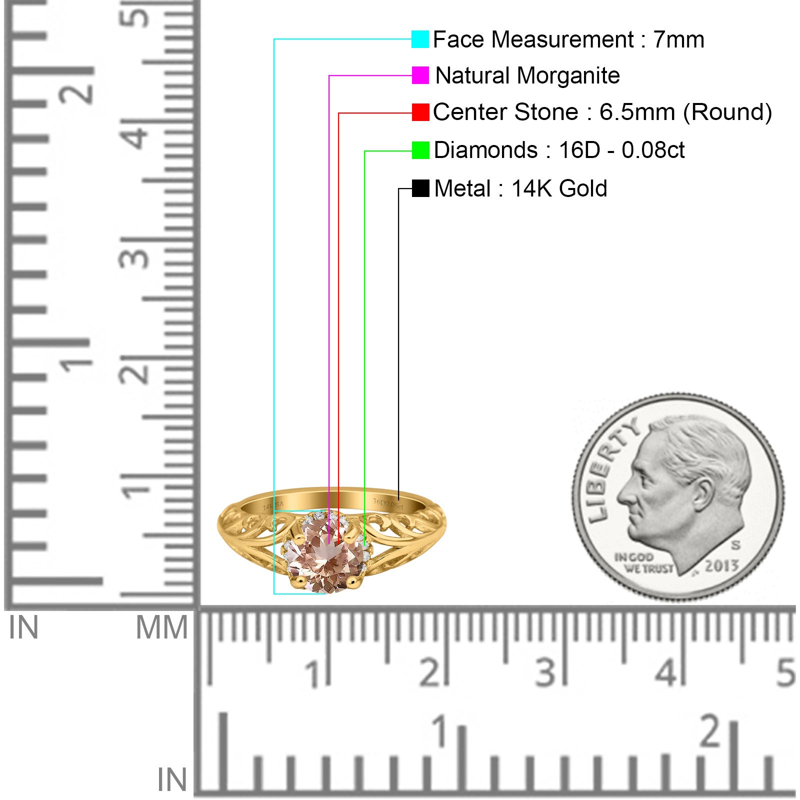 14K Gold 1.11ct Round Art Deco Filigree 6.5mm G SI Diamond Engagement Wedding Ring