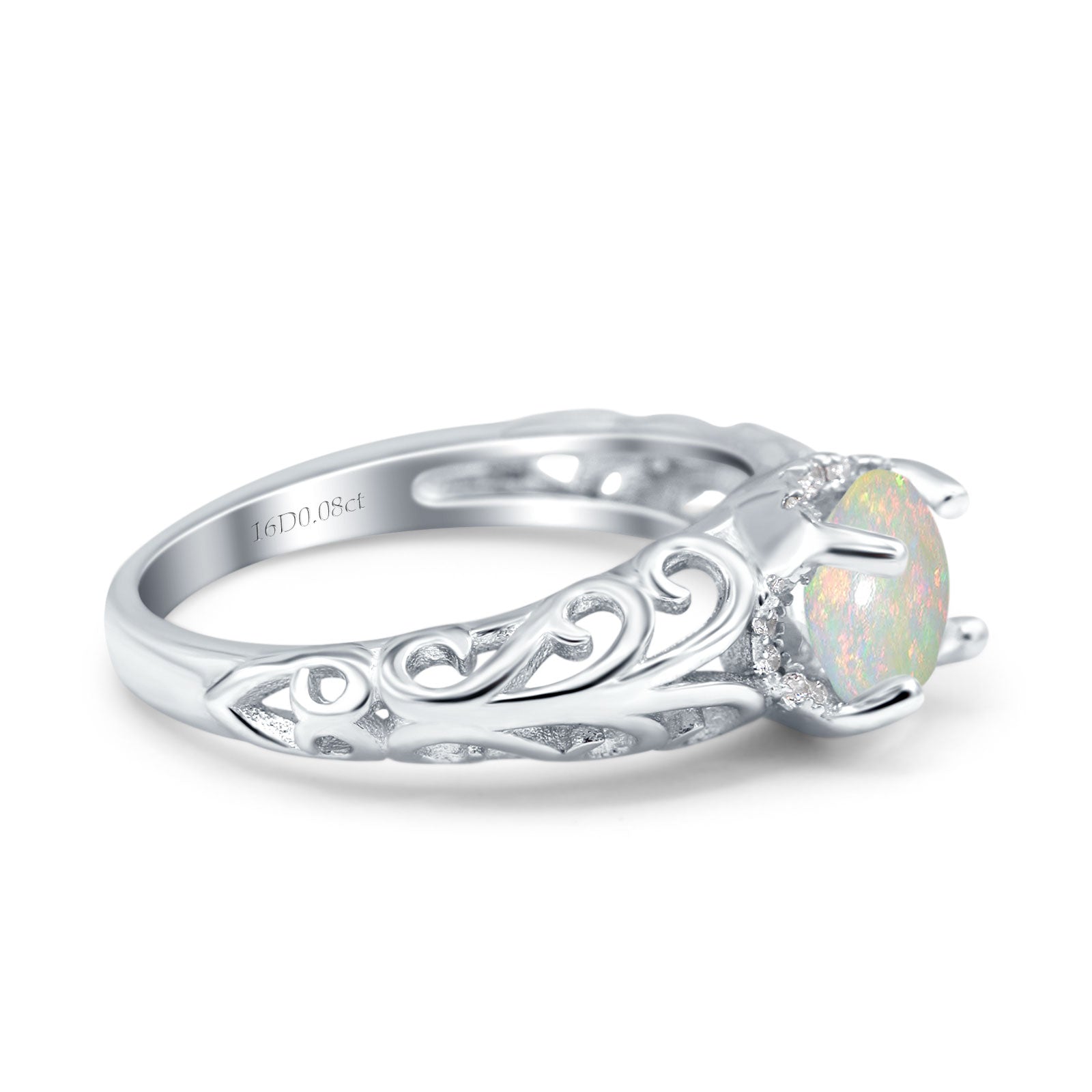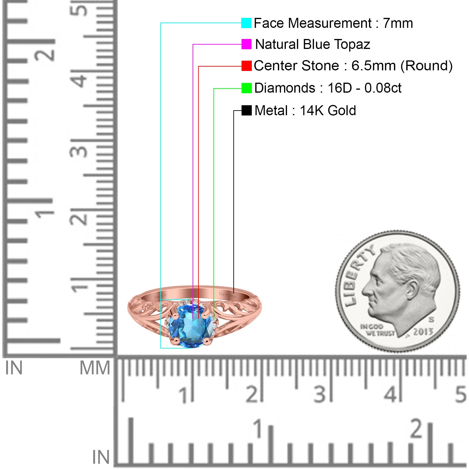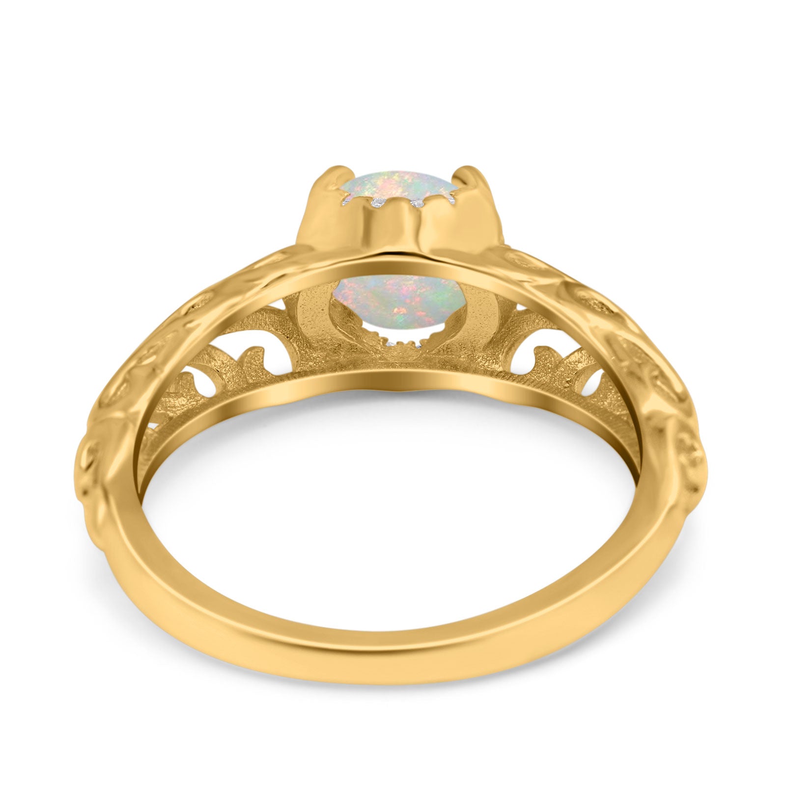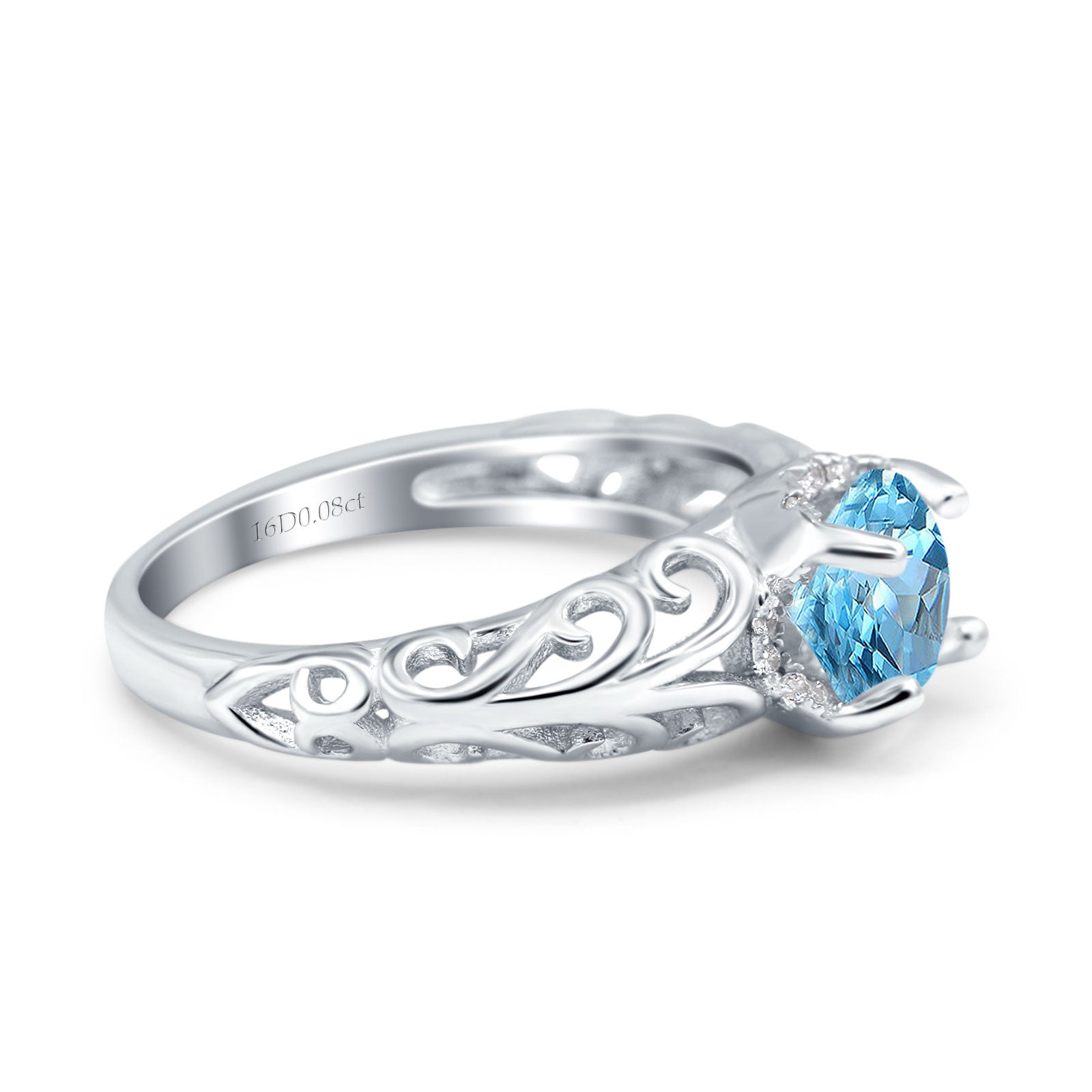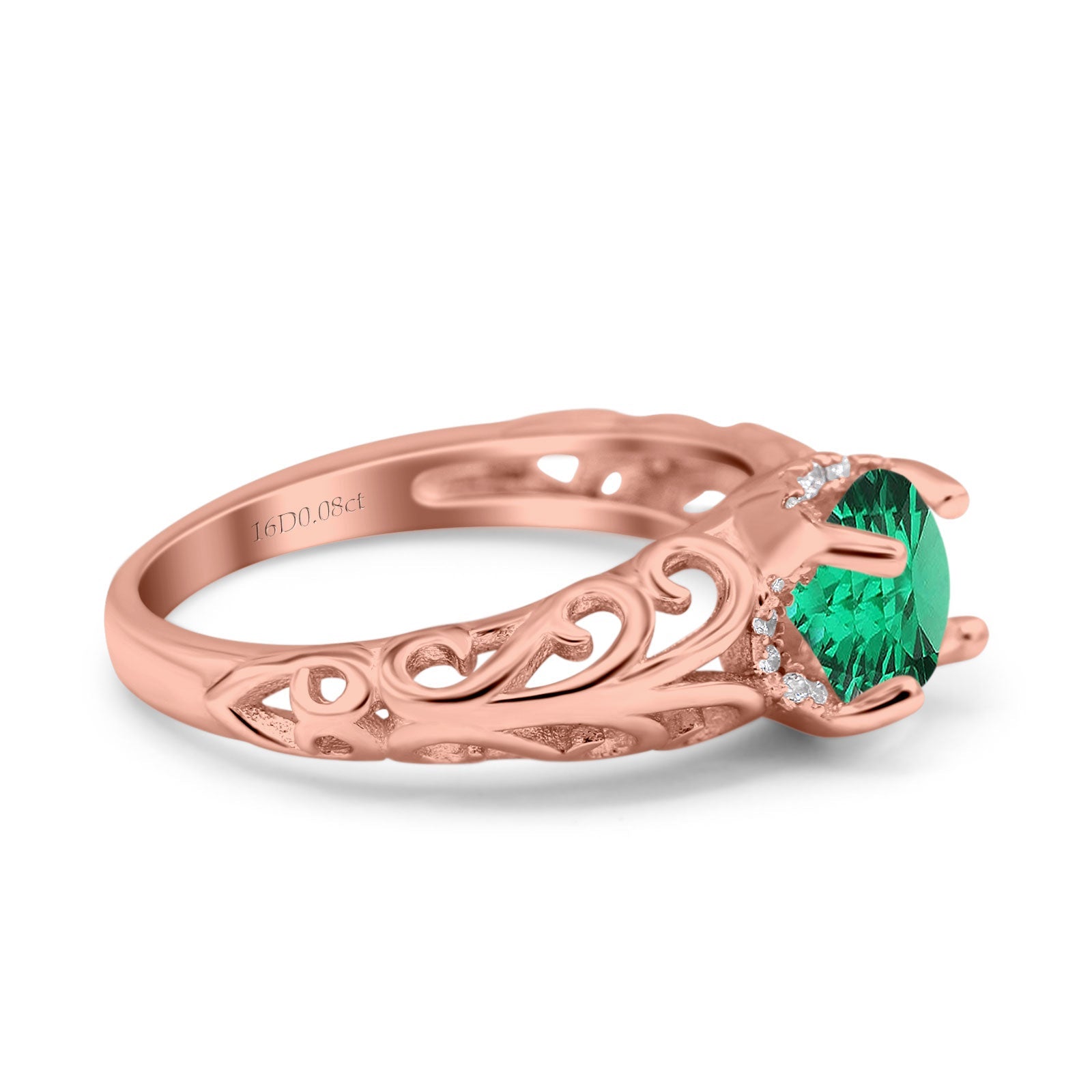 14K Gold 1.11ct Round Art Deco Filigree 6.5mm G SI Diamond Engagement Wedding Ring