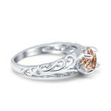CZ & Blue Sapphire CZ Rose Tone Silver