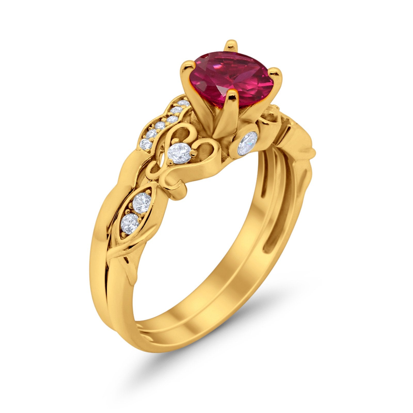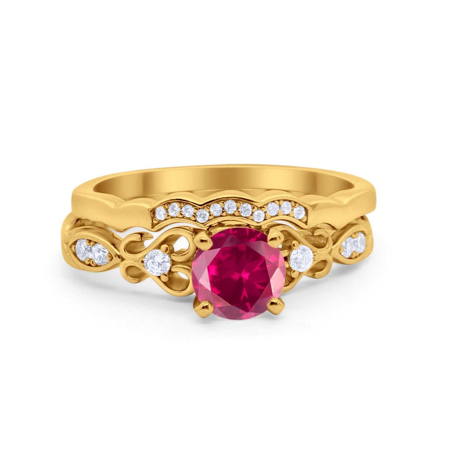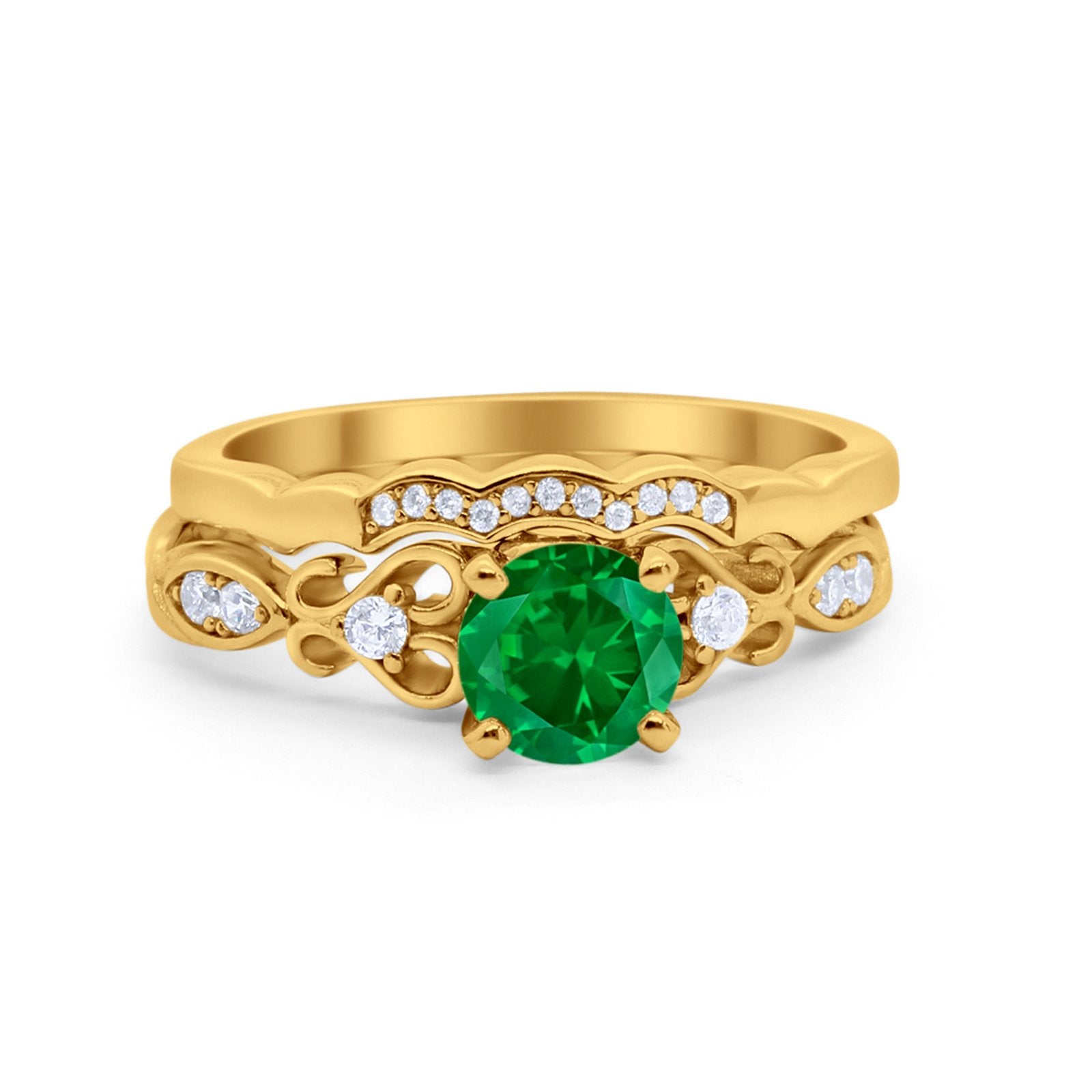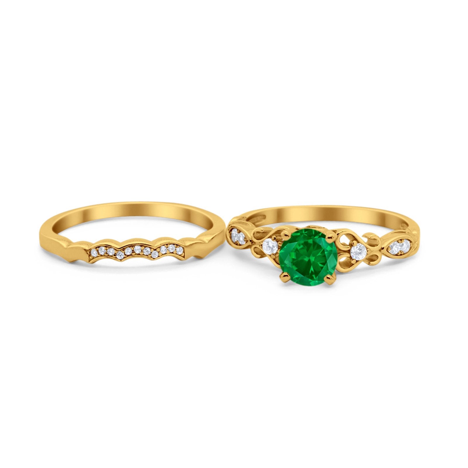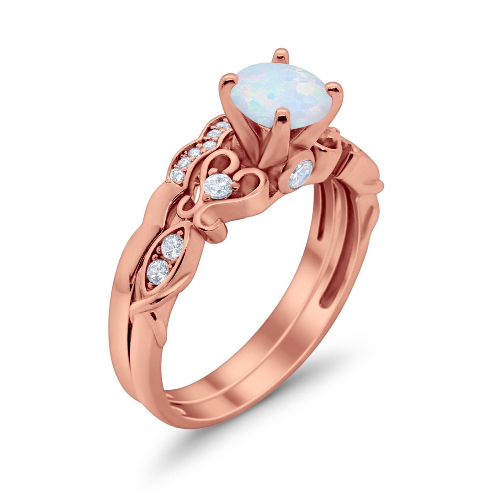 Art Deco Filigree Wedding Engagement Ring Bridal Set Band Round Cubic Zirconia 925 Sterling Silver