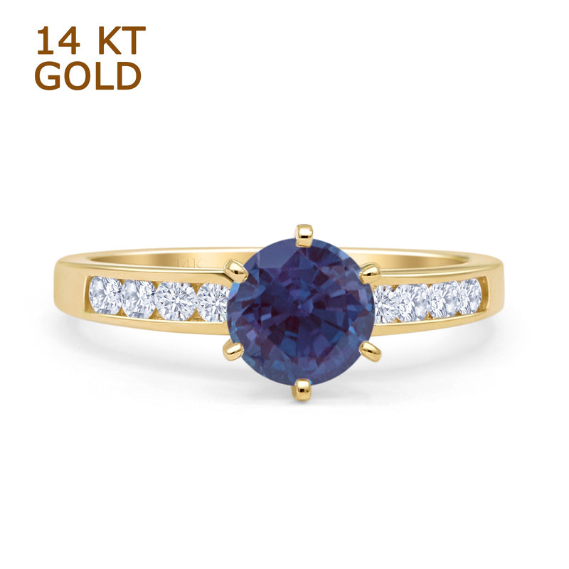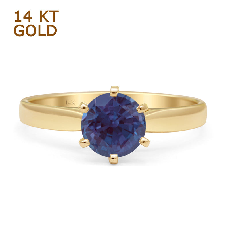 14K Yellow Gold Round Solitaire Lab Alexandrite Ring