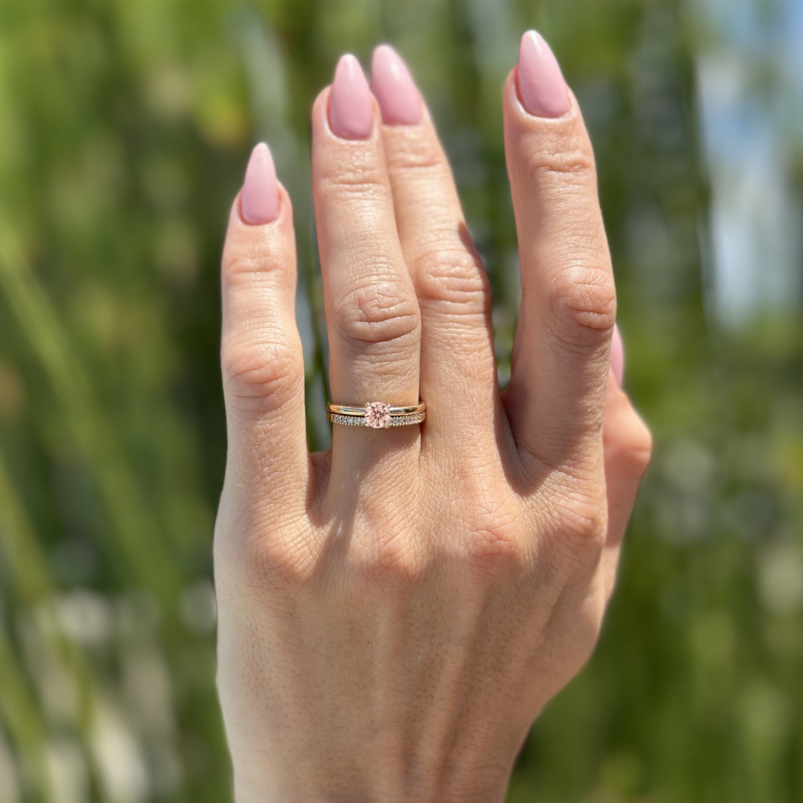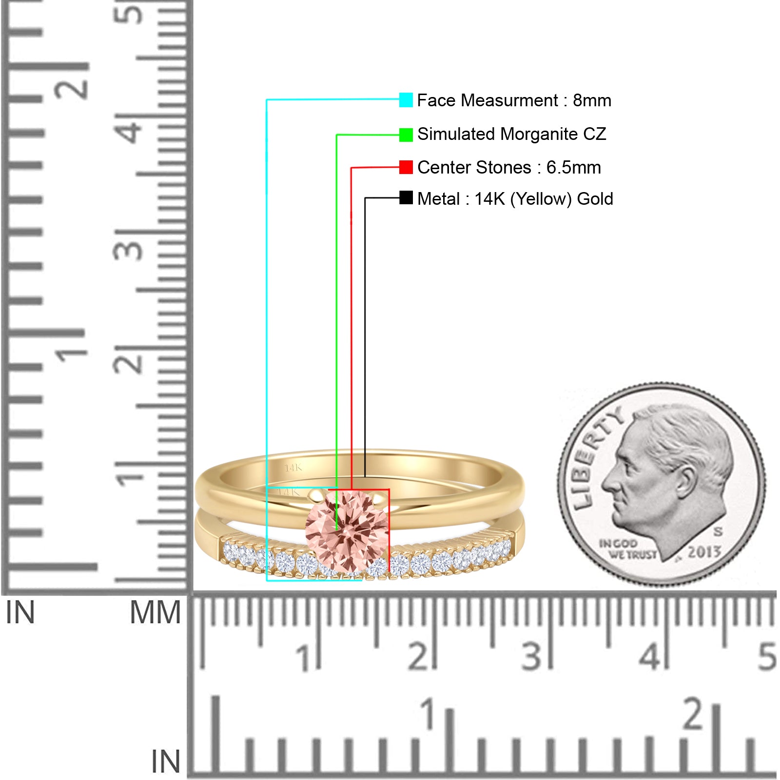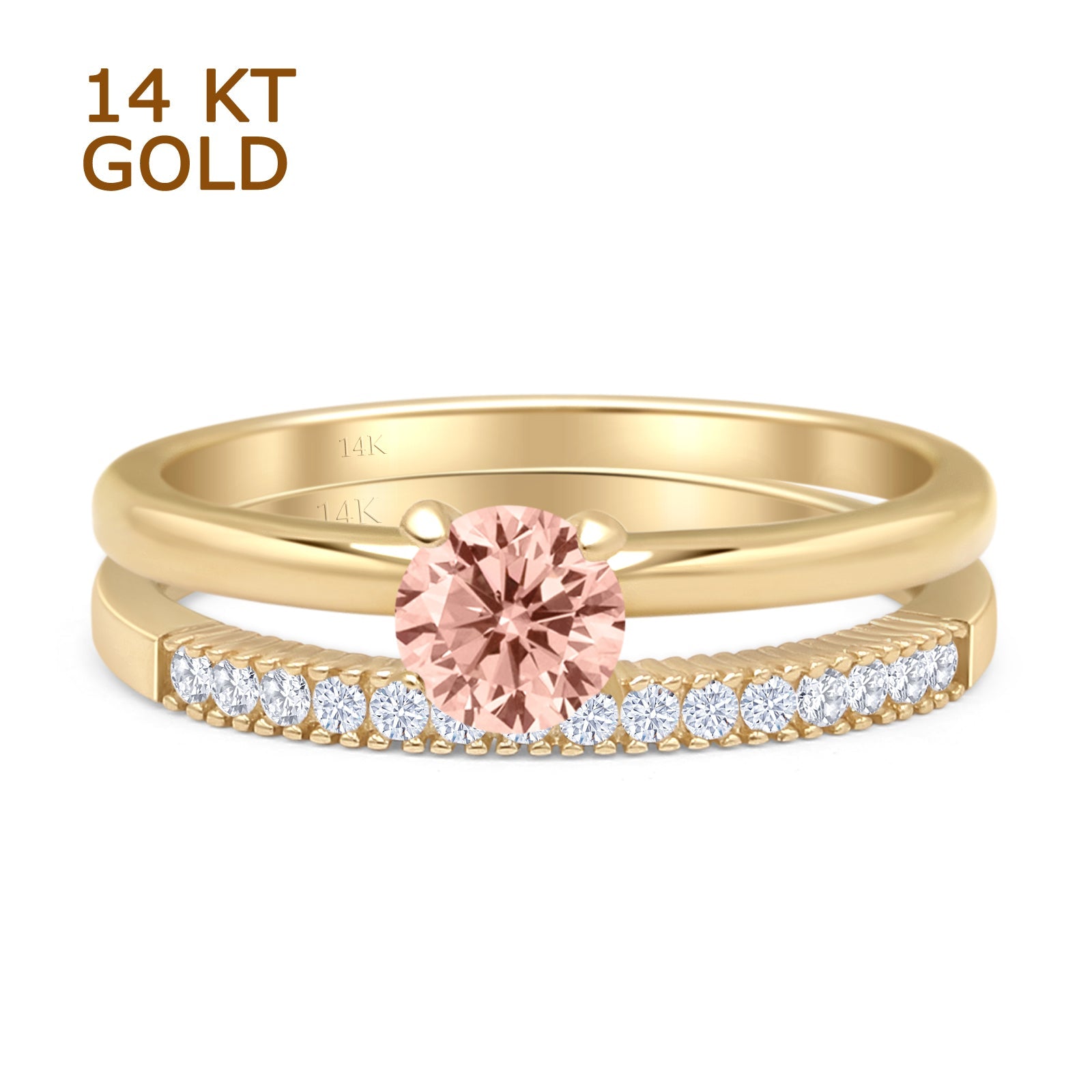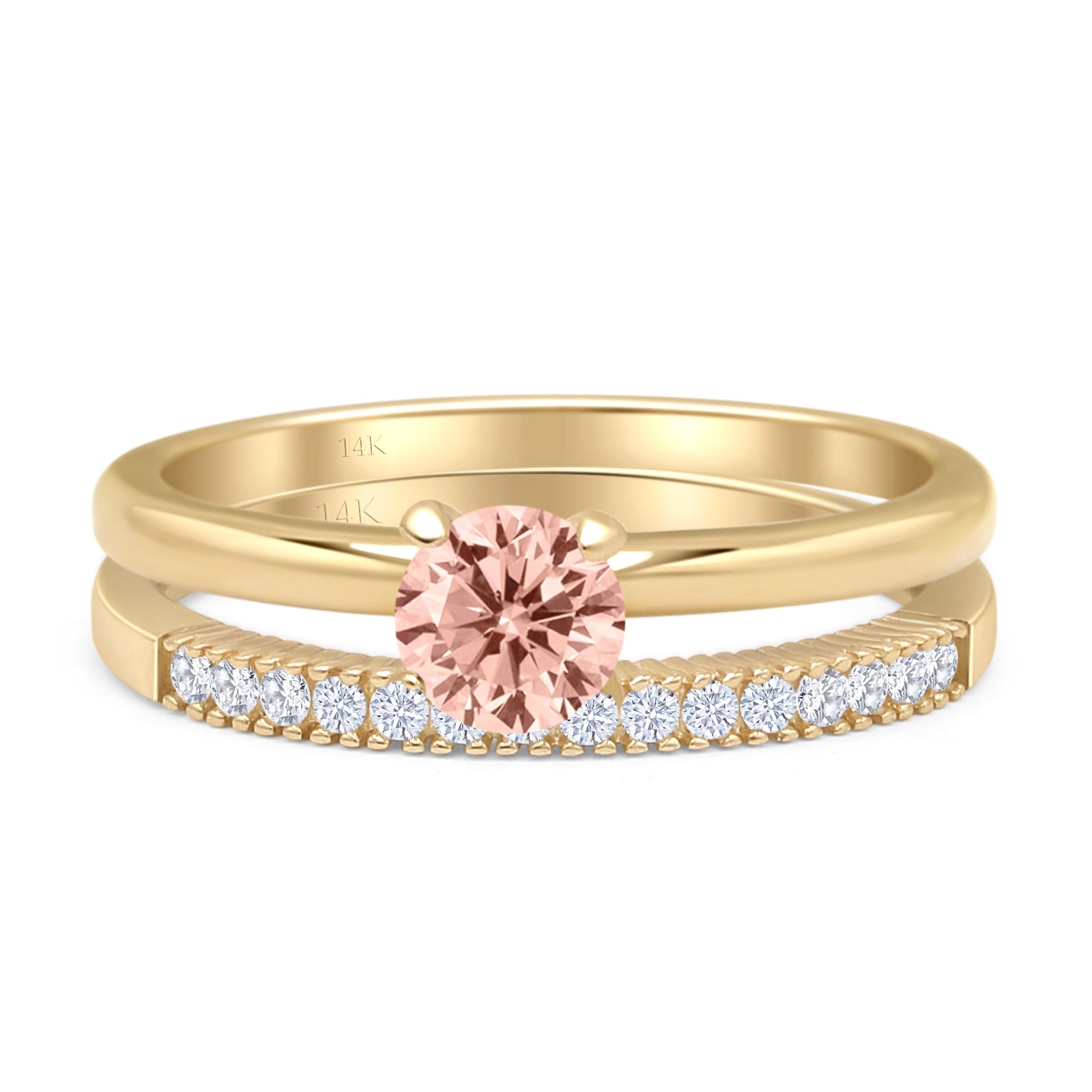 14K Yellow Gold Two Piece Round Solitaire Half Eternity Band Morganite CZ Bridal Ring