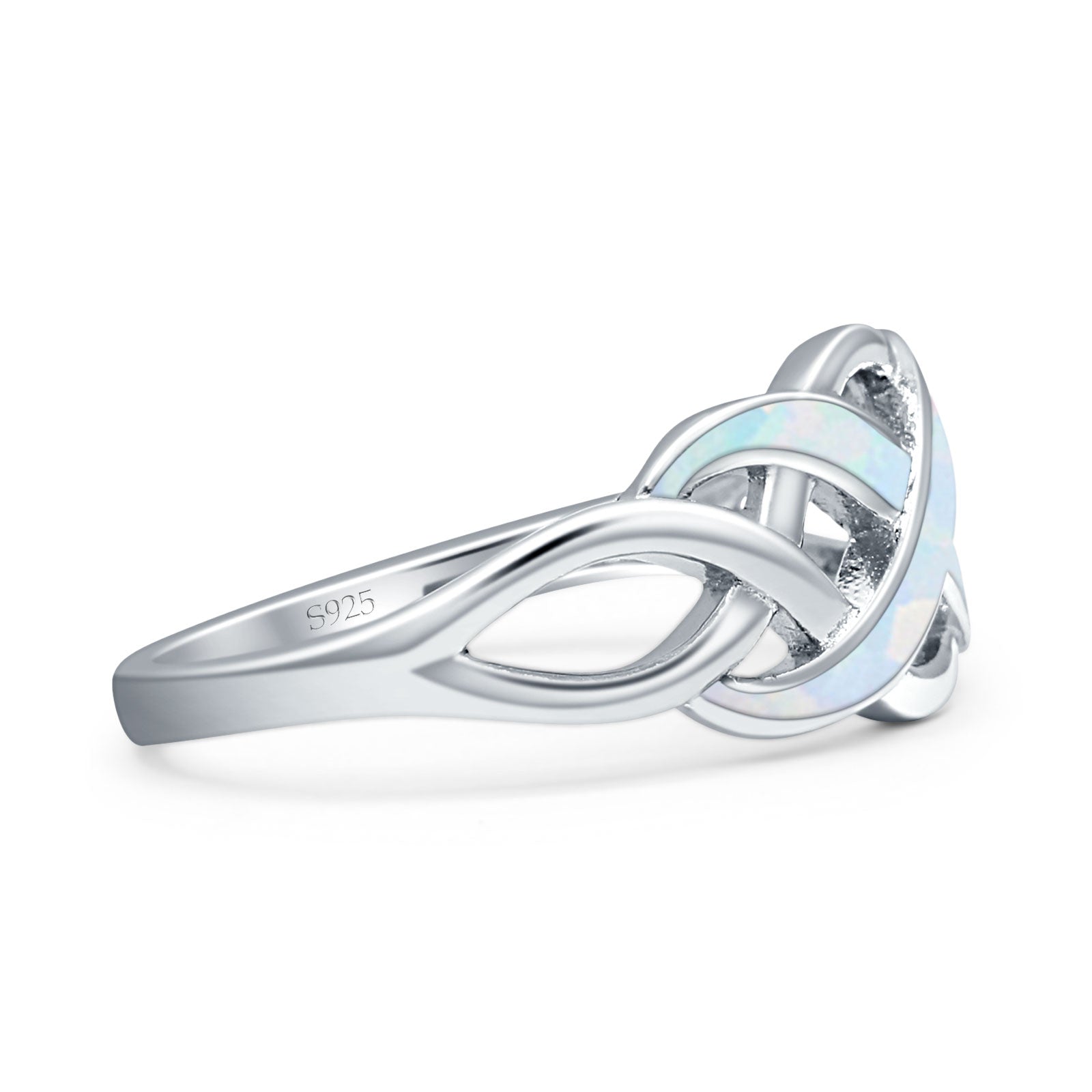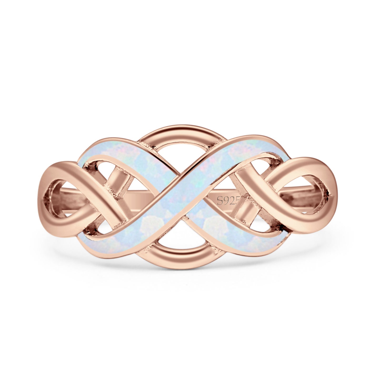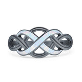 Minimalist 9.5mm Lab Created White Opal Twisted Infinity Ring 925 Sterling Silver