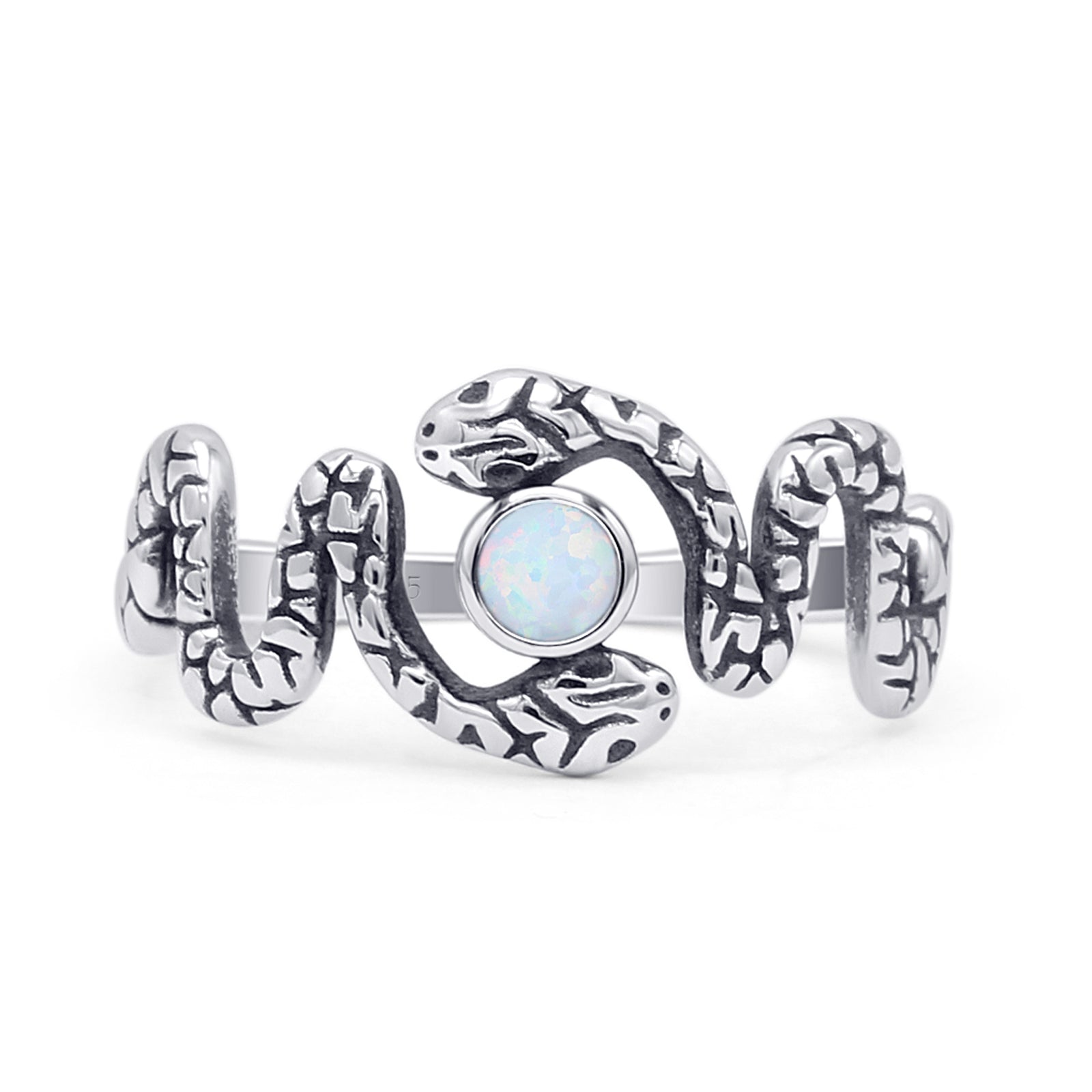 Design: Oxidized Lab Created White Opal Snake Ring.
