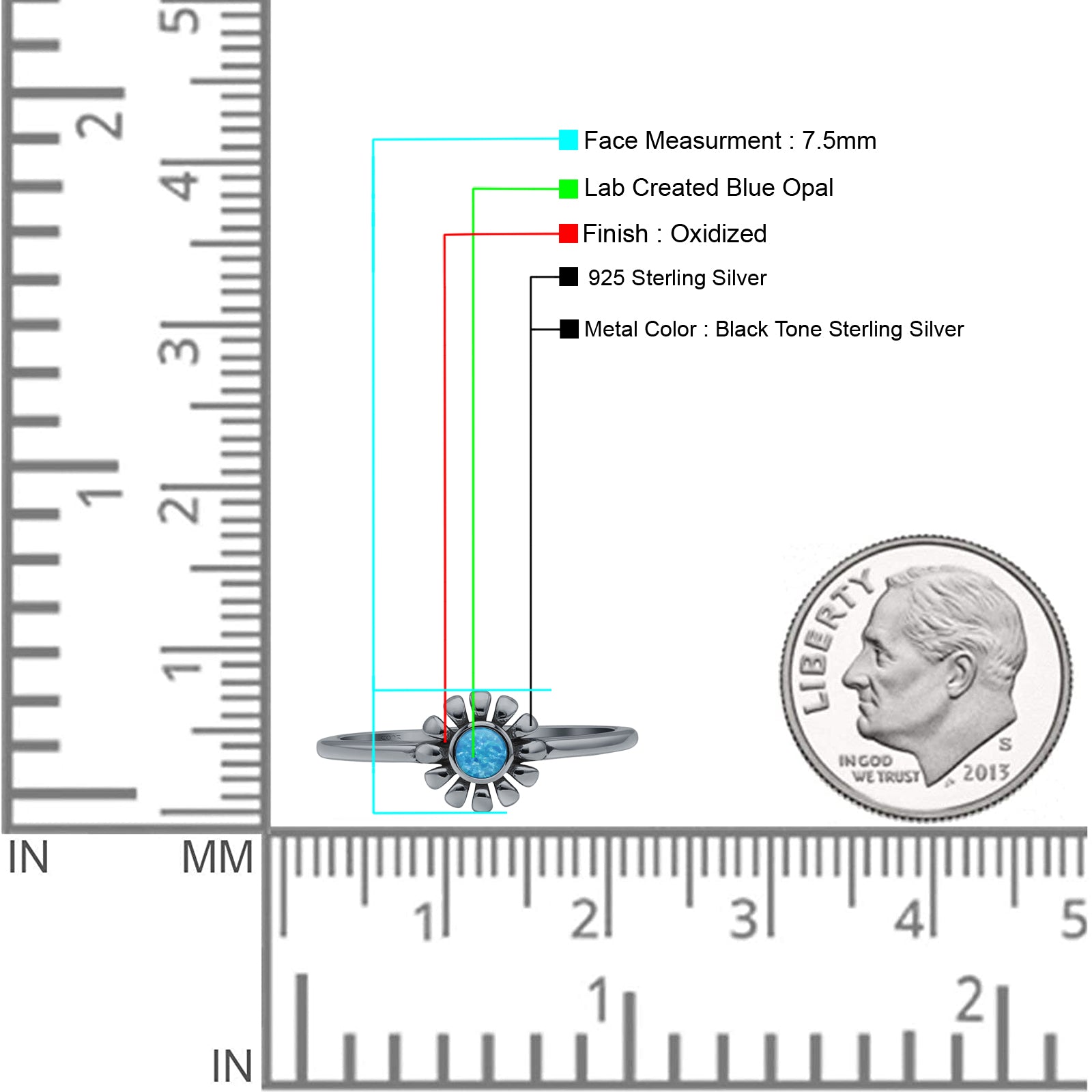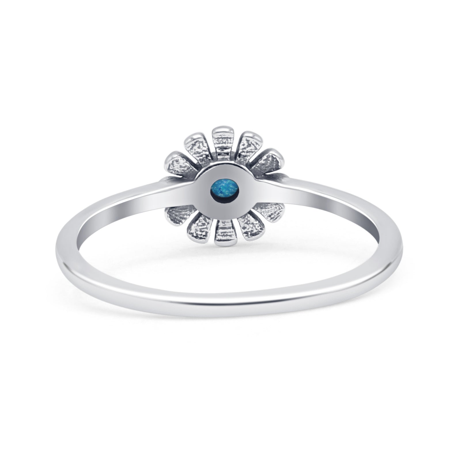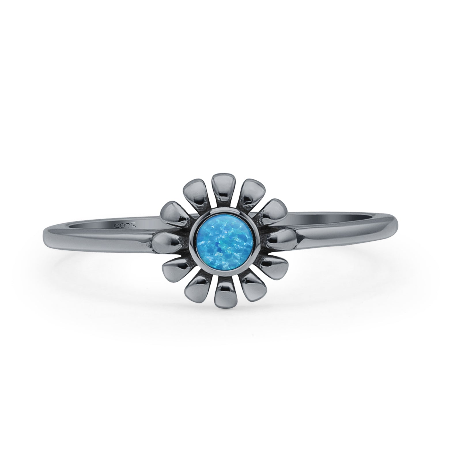 Design: Oxidized Lab Created Blue Opal Sunflower Ring.