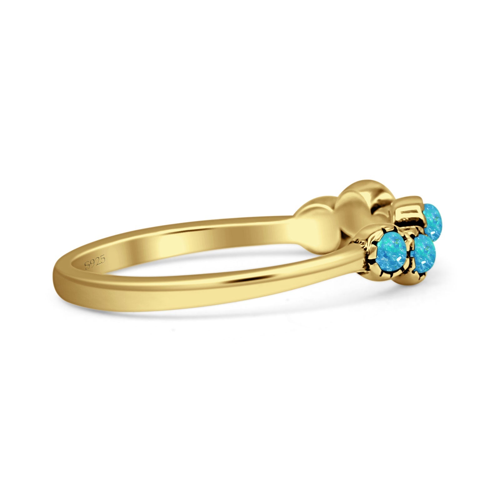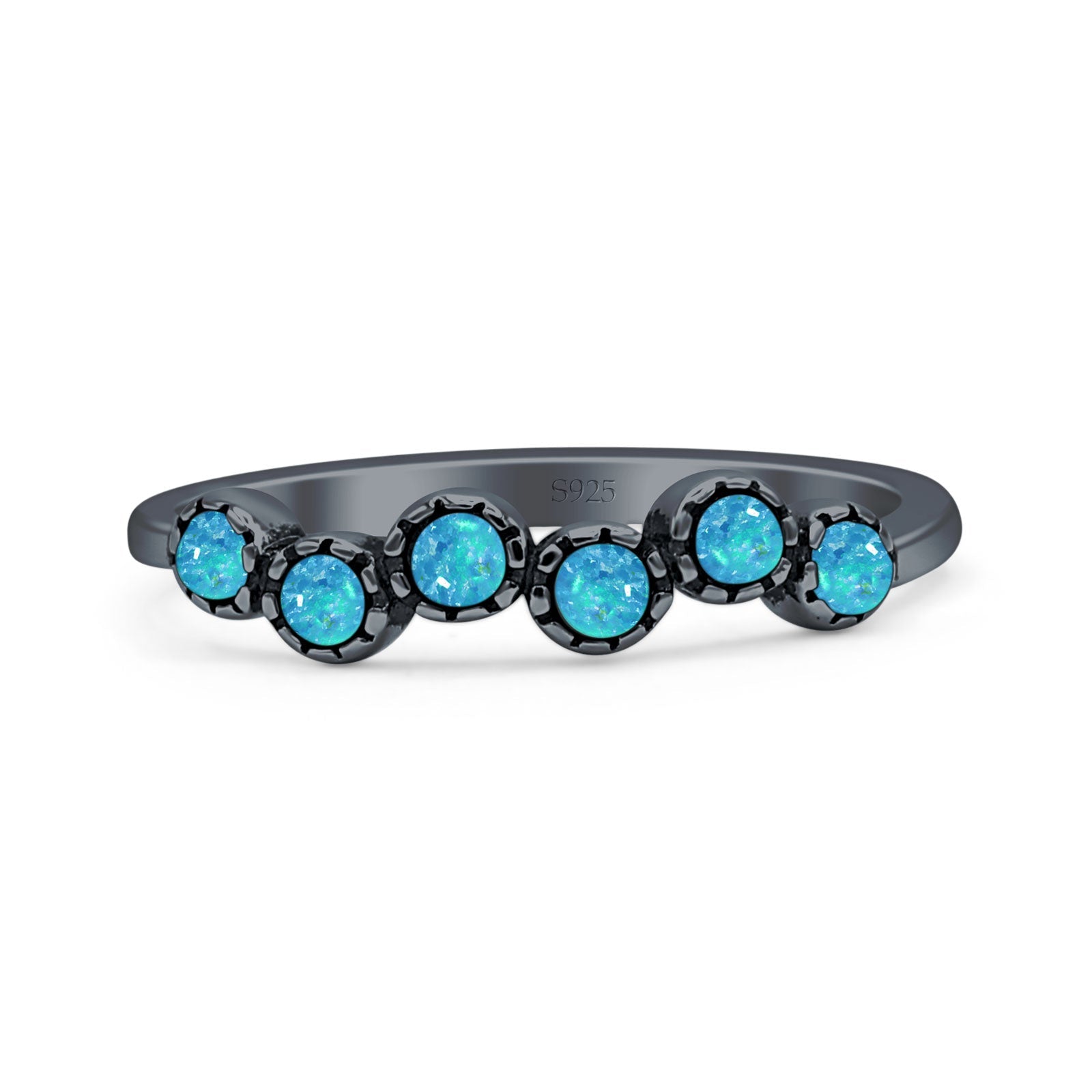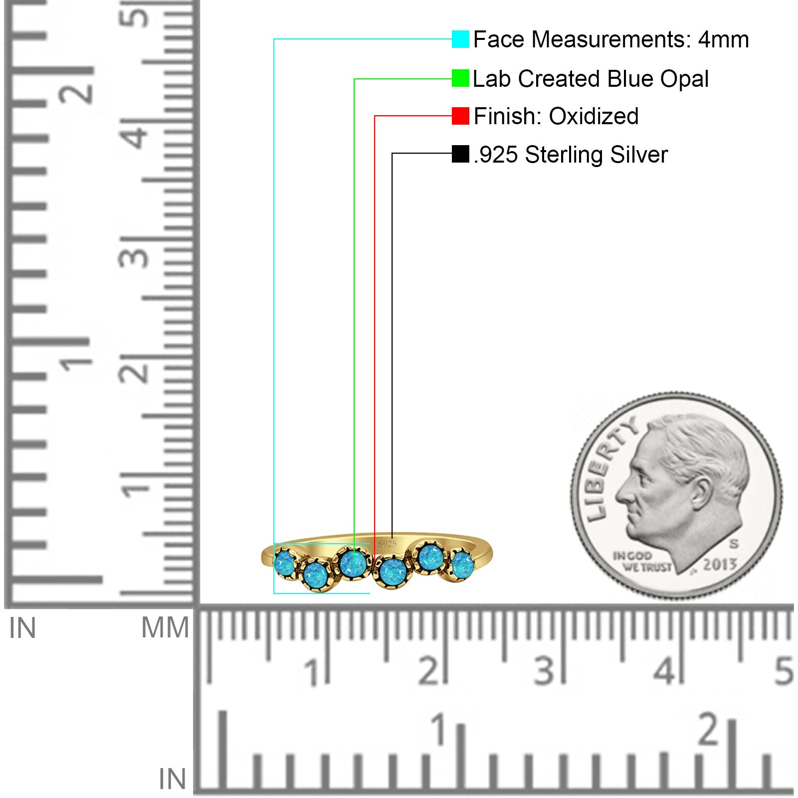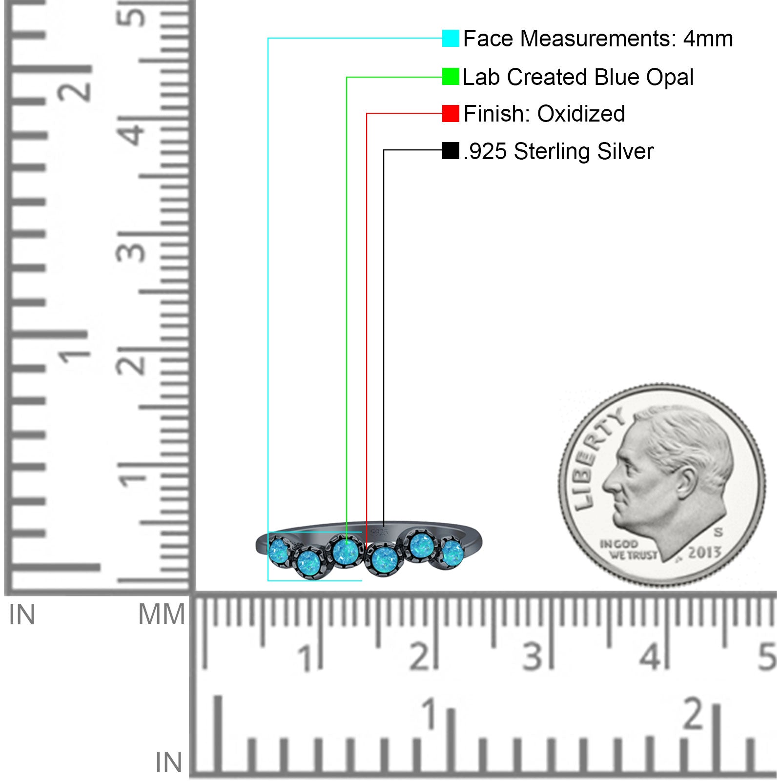 Two Stone 4mm Half Eternity Lab Created Blue Opal Band Oxidized Ring 925 Sterling Silver