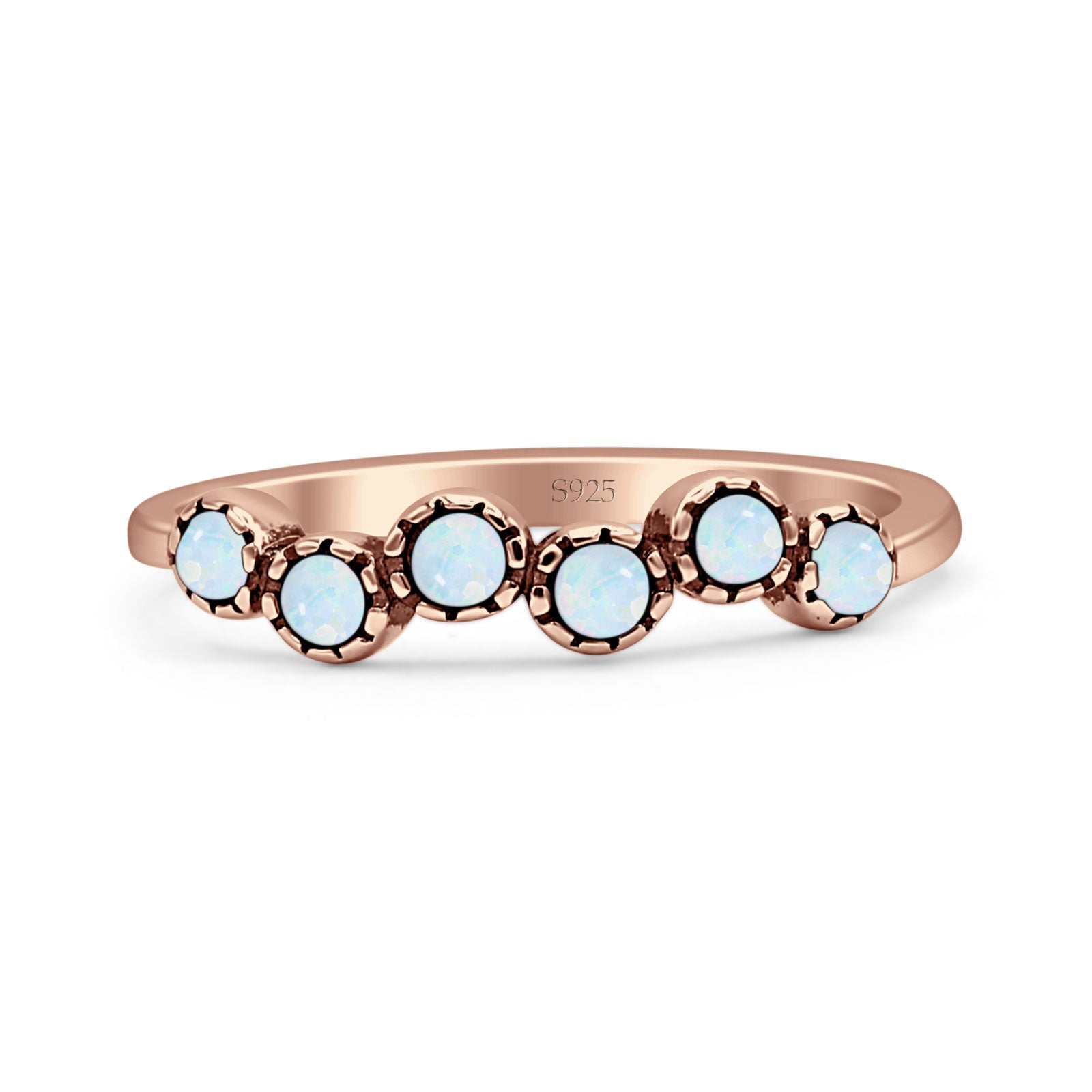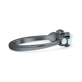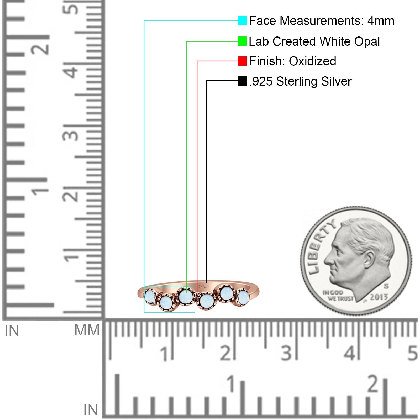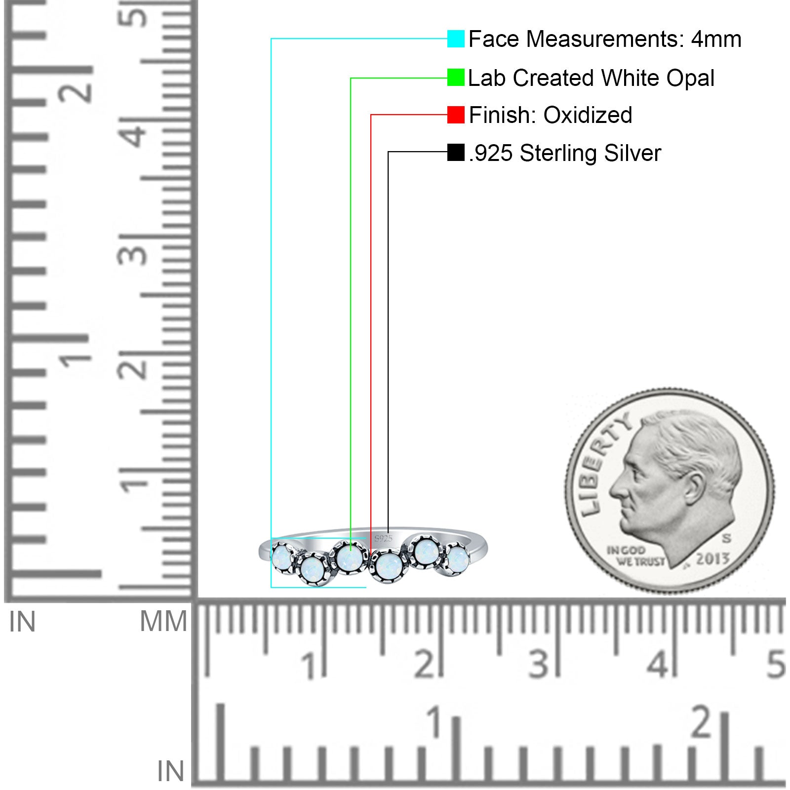 Two Stone 4mm Half Eternity Lab Created White Opal Band Oxidized Ring 925 Sterling Silver