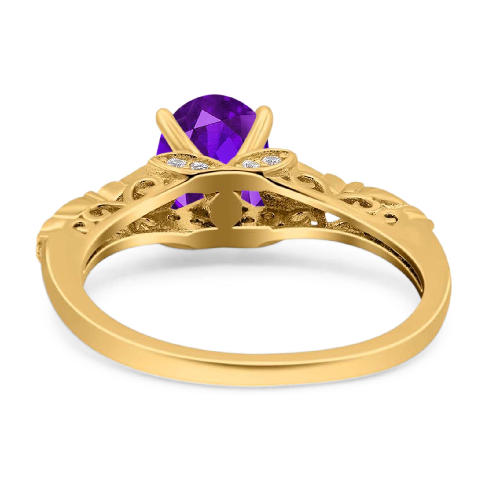 Oval Natural Amethyst Leaf Filigree Ring 925 Sterling Silver