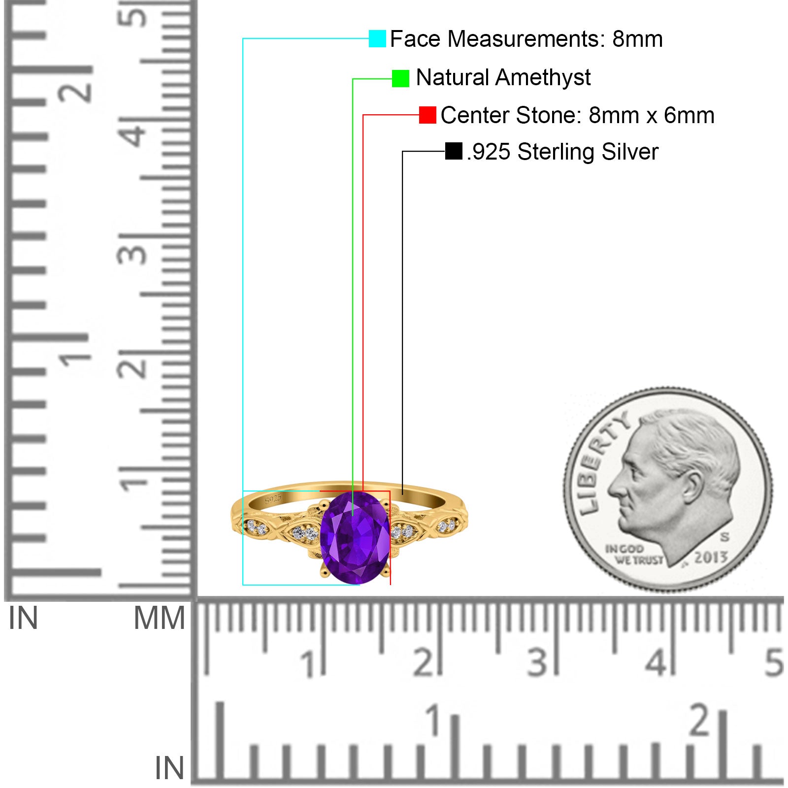 Center Stone Measurements:8mmX6mm.