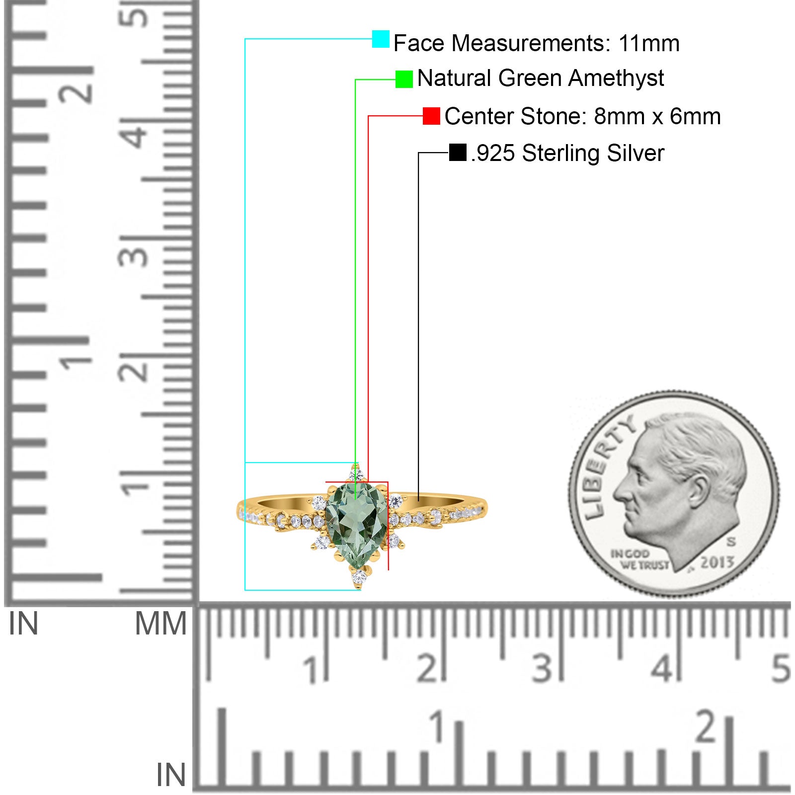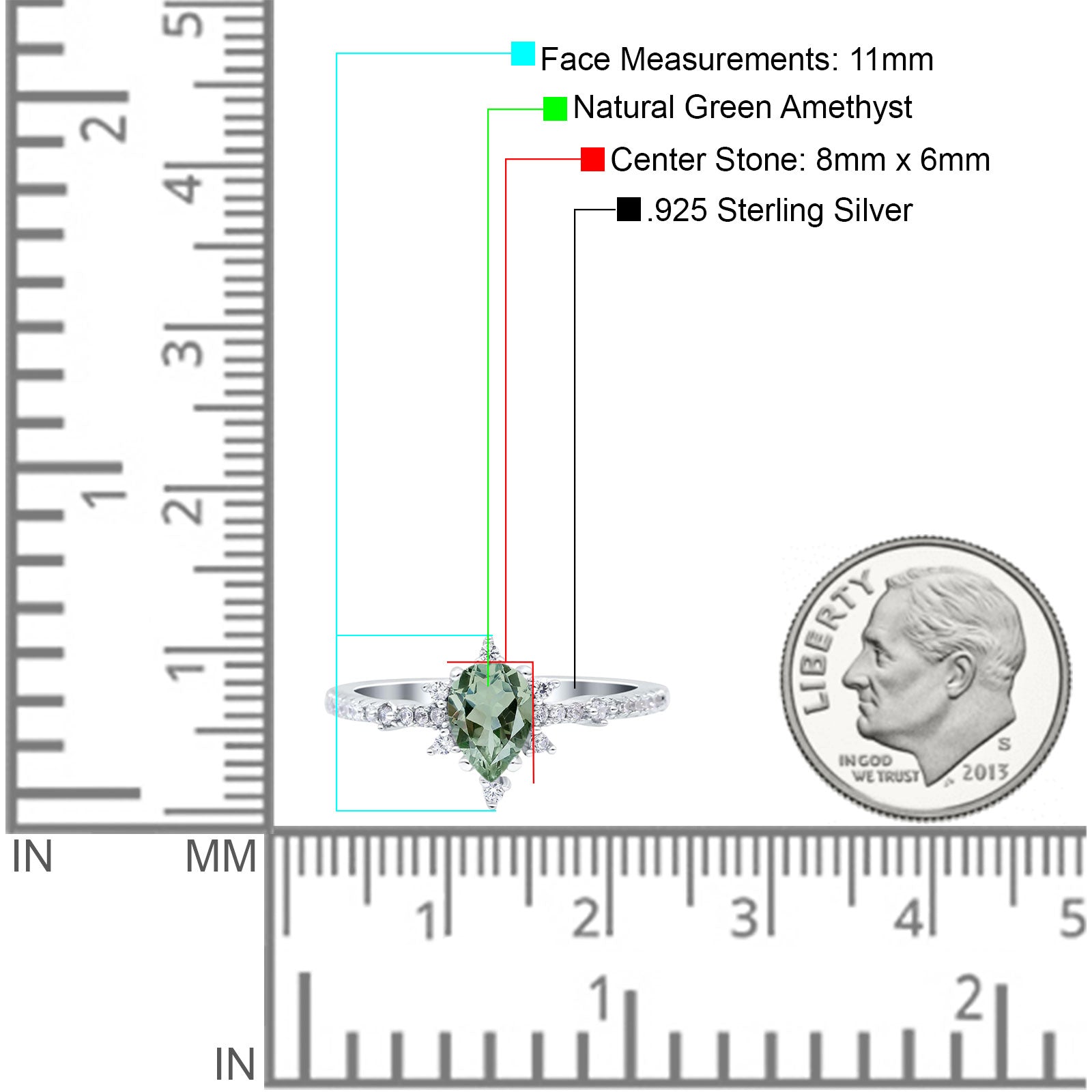 Center Stone Measurements:8mmX6mm.