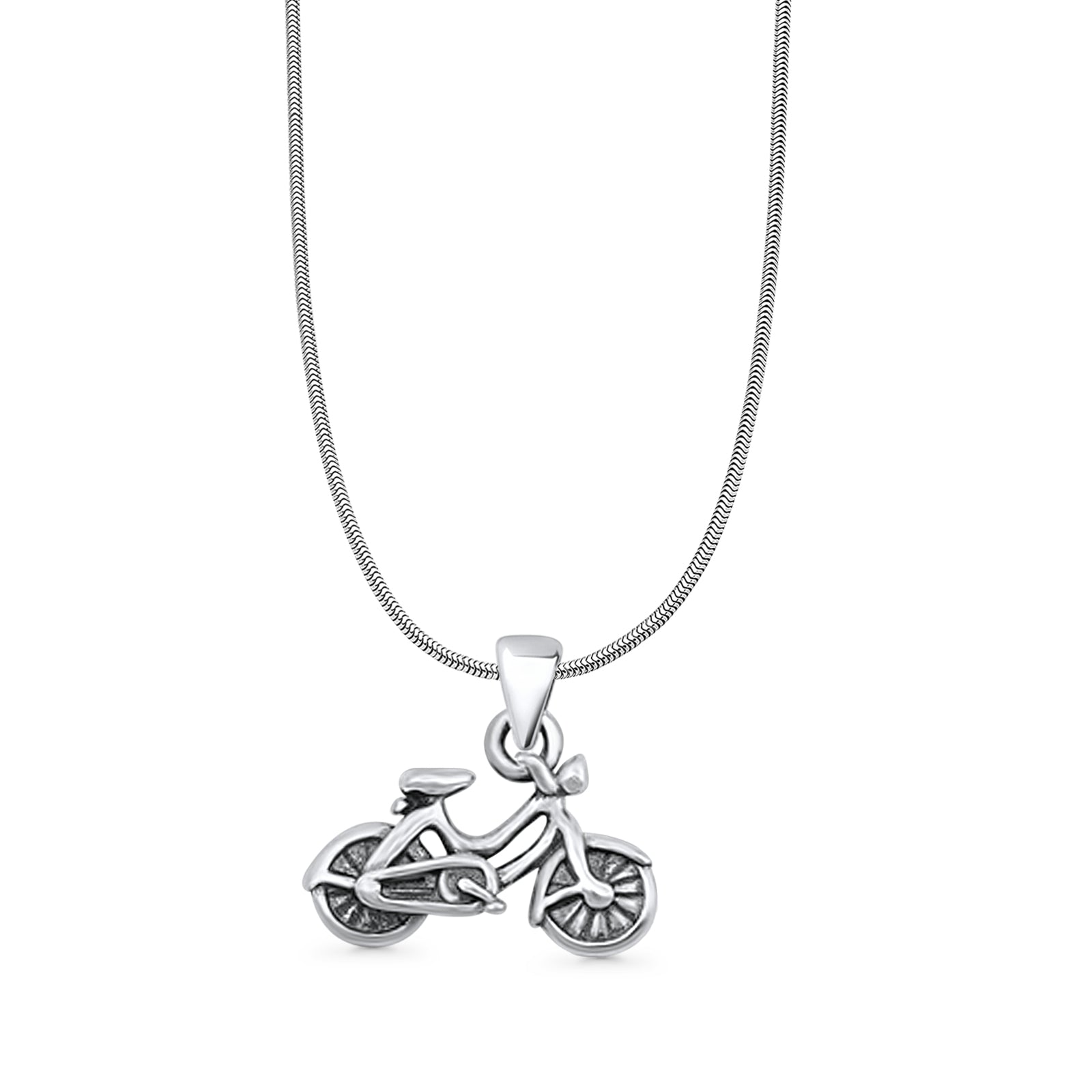 Bicycle Pendant Snake Chain Necklace Oxidized 925 Sterling Silver